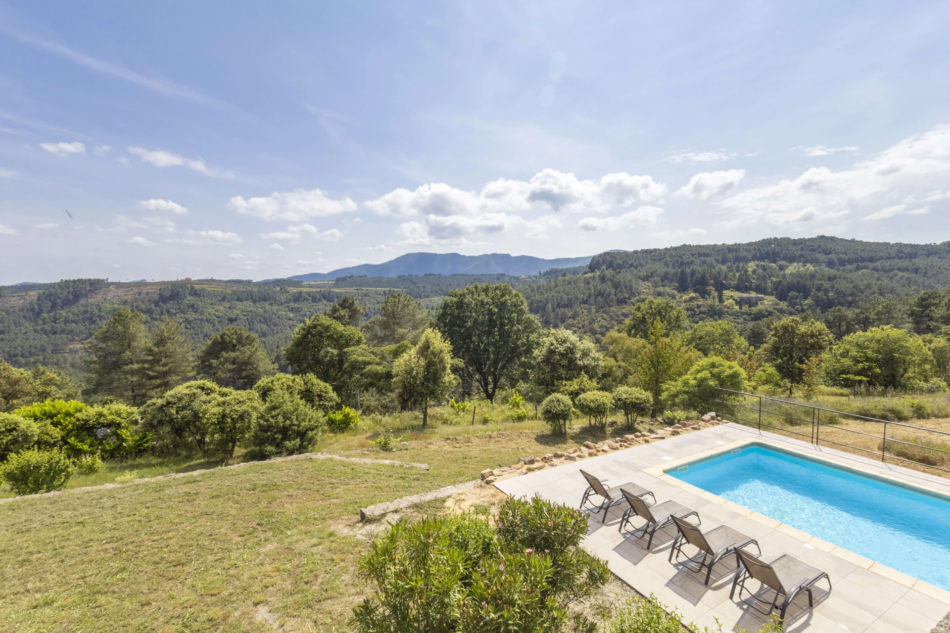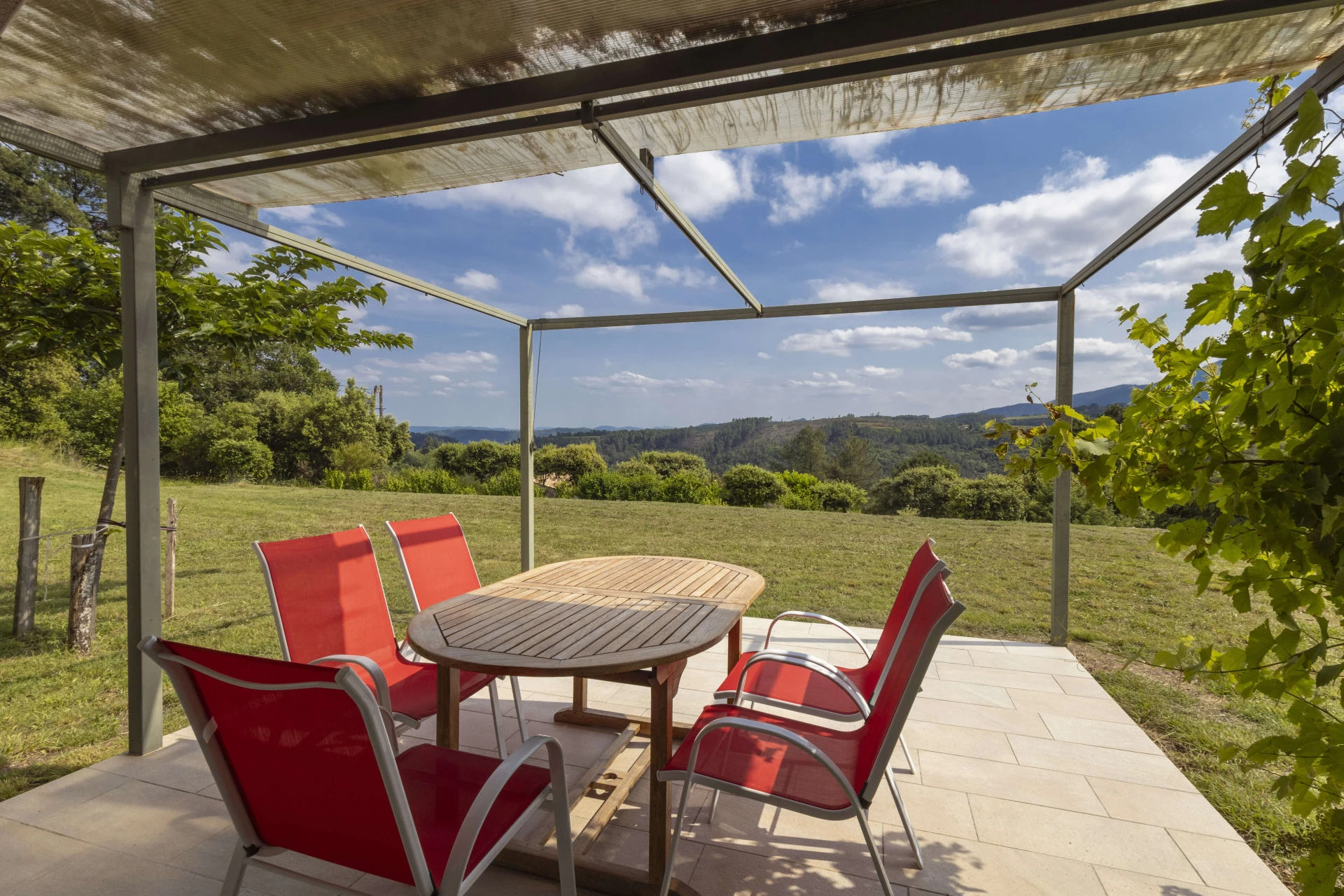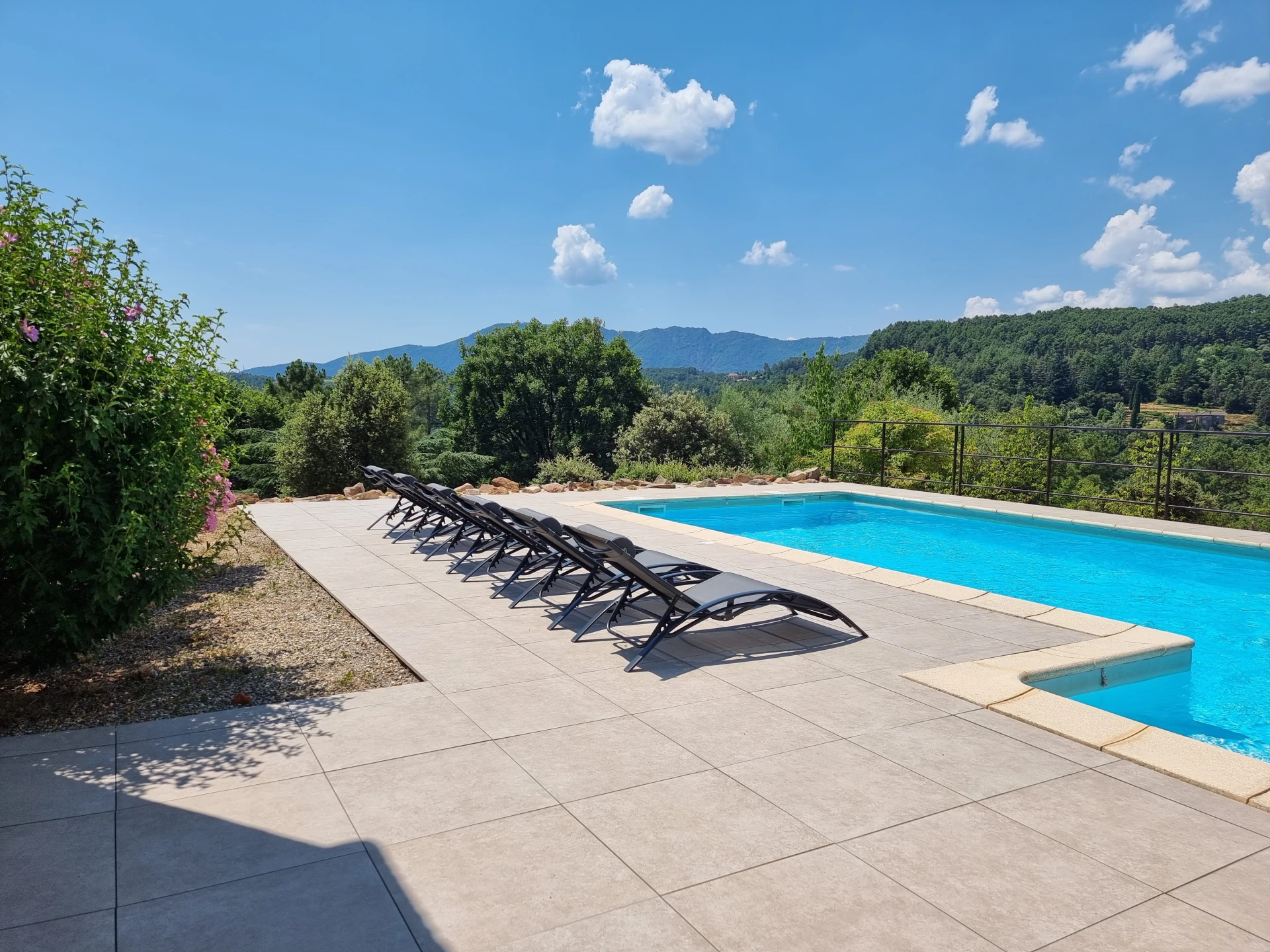 Entdecken Sie die Villa Terre Rouge, ein wunderschönes Ferienhaus mit privatem Pool für 10 Personen, gelegen in den spektakulären Landschaften der südlichen Ardèche, am Rande des Nationalparks der Cevennen. Diese Villa bietet einen Panoramablick über das Tal und die Berge des Serre de Barre.