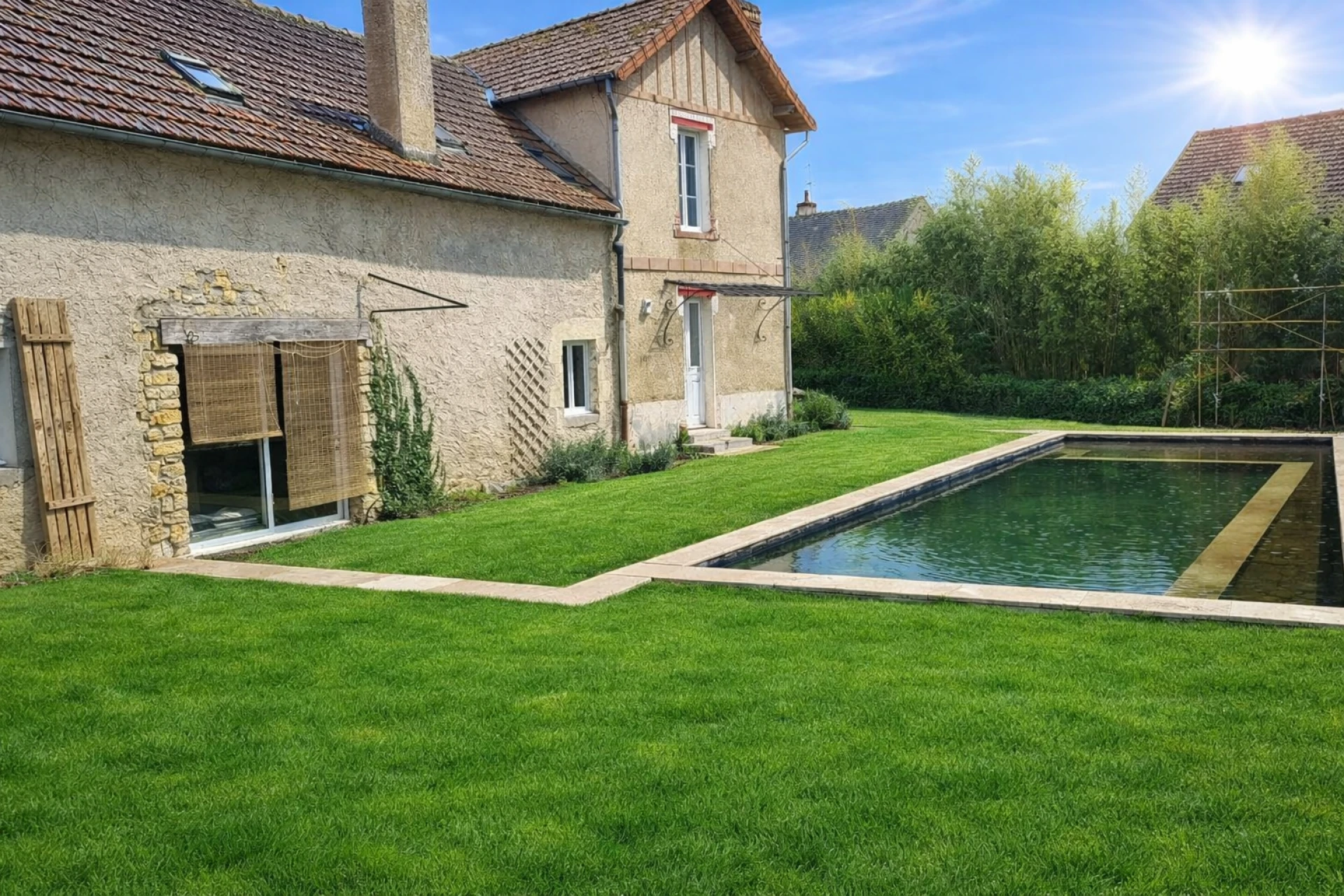 Der vollständig umzäunte Garten (1.980 m²) mit Rasenfläche bietet viel Privatsphäre und Platz, um Ruhe und Natur zu genießen. Ein absoluter Blickfang ist der 11 x 4,5 Meter große private Schwimmteich mit einem separaten Schwimmbereich von 8 x 3,5 Metern und einer Tiefe von 1,4 Metern. Darüber hinaus lädt der Loungebereich im Poolhaus mit Holzofen-Pizzaofen zu gemütlichen Abenden unter dem burgundischen Himmel ein.