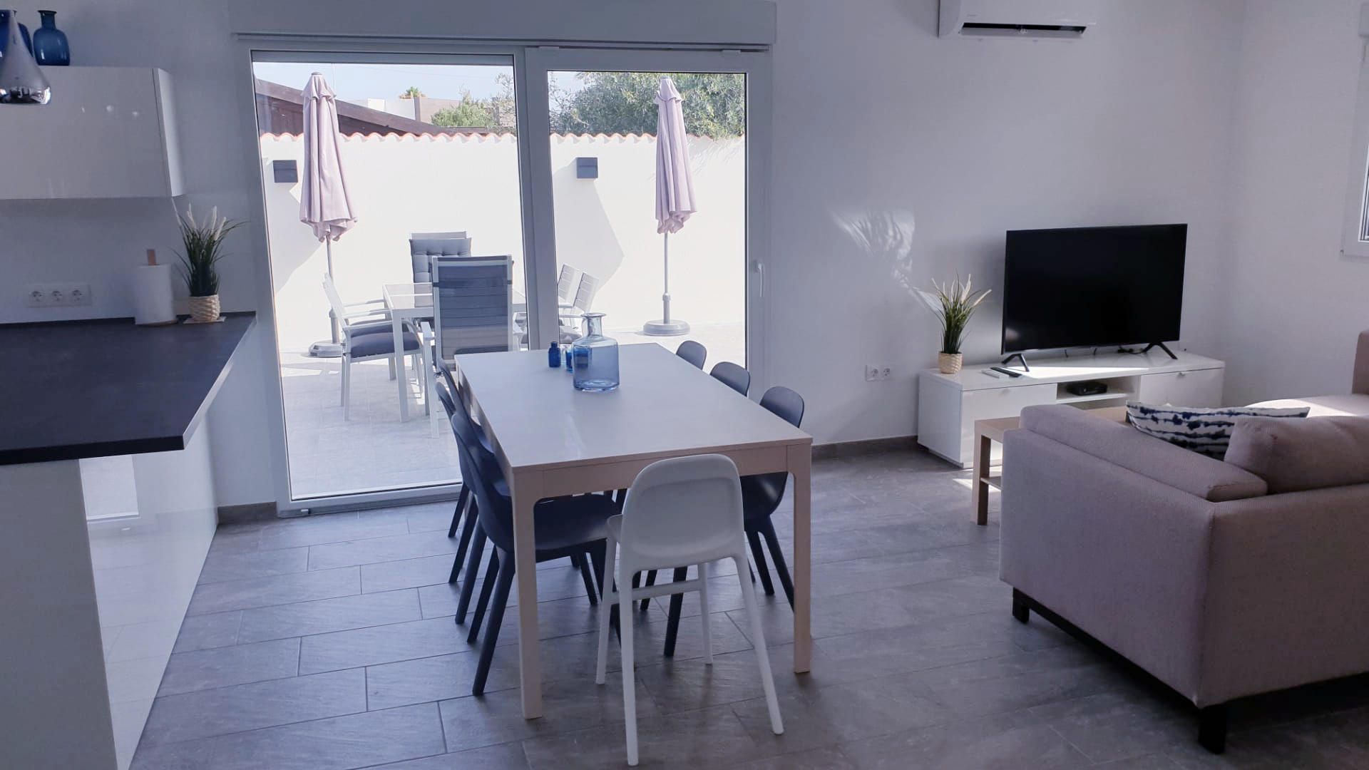 Sobald Sie die Schwelle von Casa überschreiten, werden Sie von einem modernen und gut ausgestatteten Raum mit über 150m2 Wohnfläche begrüßt. Eine voll ausgestattete offene Küche blickt auf einen gemütlichen und klimatisierten Wohn- und Essbereich. Das Haus bietet 4 komfortable, ebenfalls klimatisierte Schlafzimmer und 2 Badezimmer.