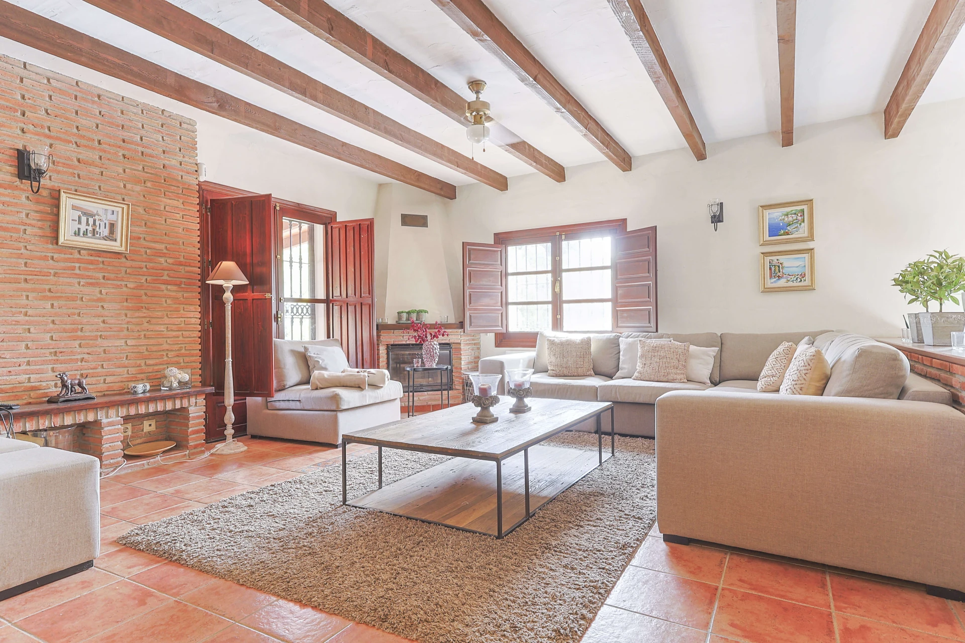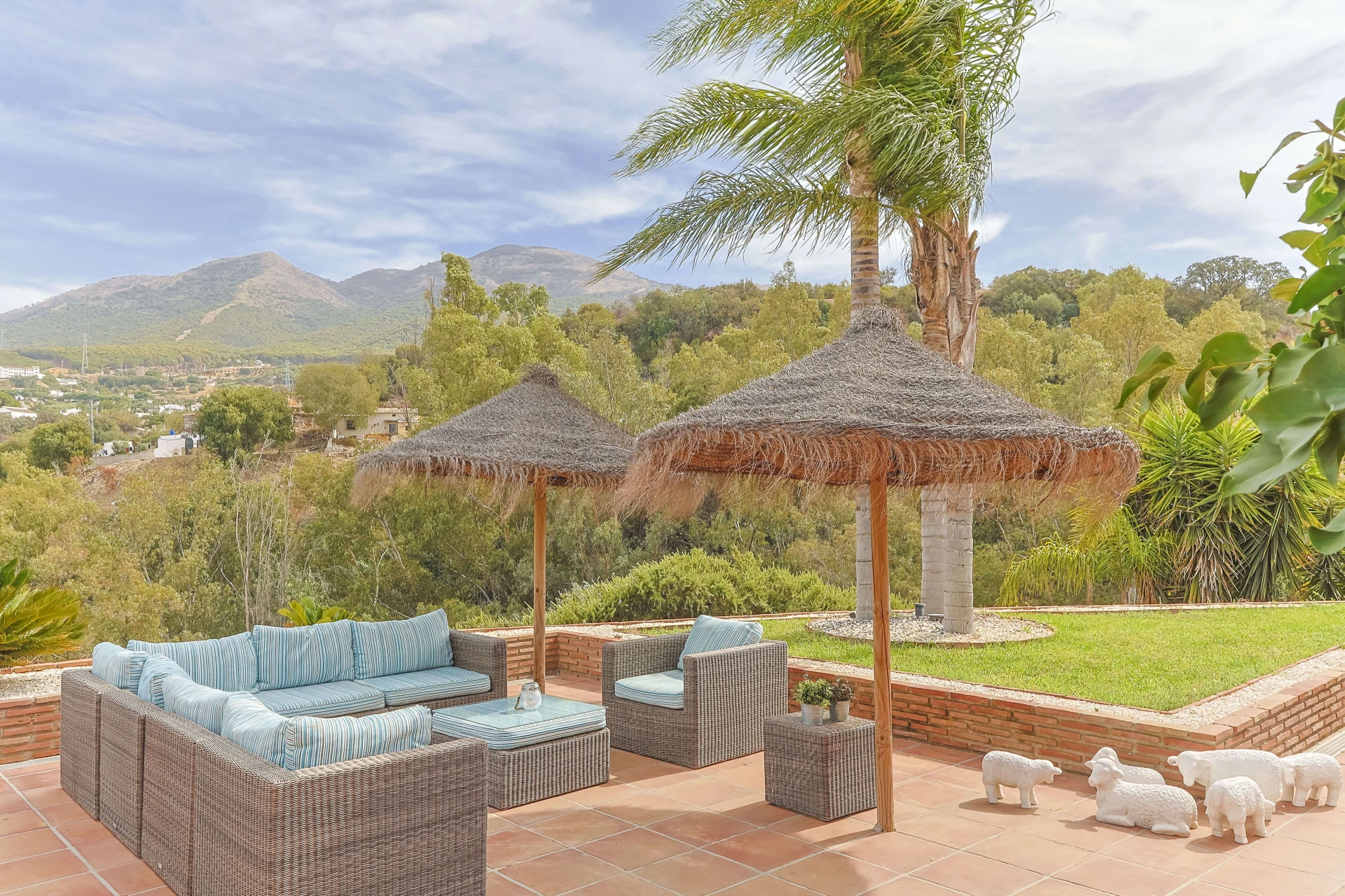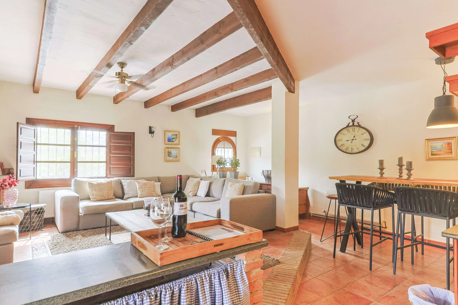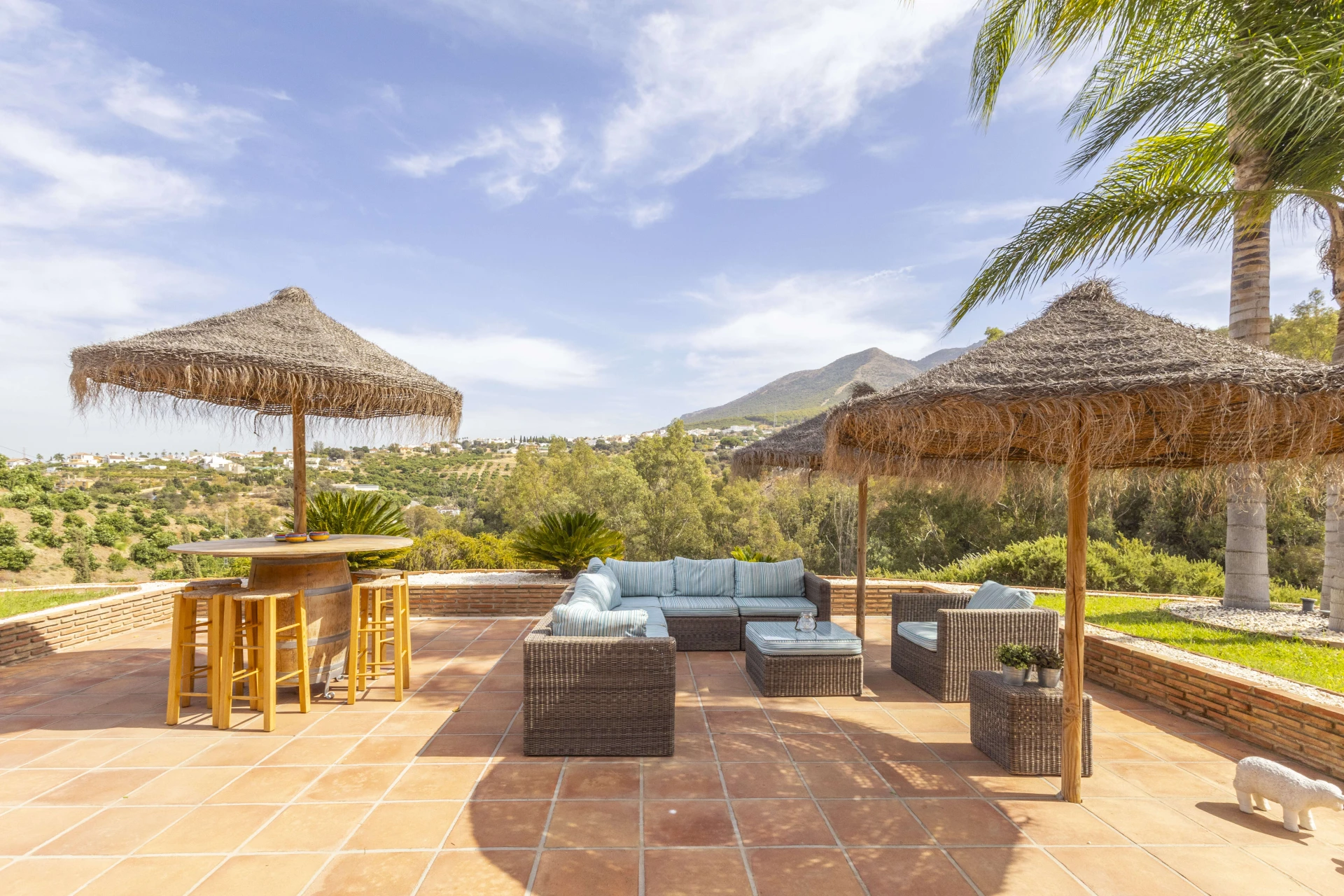 Wunderschöne Terrassen mit bequemen Gartenmöbeln und einem großen privaten Pool (4x13 m) erwarten Sie für einen unvergesslichen Aufenthalt. Der große Esstisch im Freien bietet Platz für die ganze Familie für ein köstliches Abendessen oder ein Barbecue auf dem Gasgrill. Dieses Ferienhaus ist ein echtes spanisches Casa mit angenehmer und komfortabler Ausstattung. Die abendliche Beleuchtung macht das Ganze besonders feëerisch.