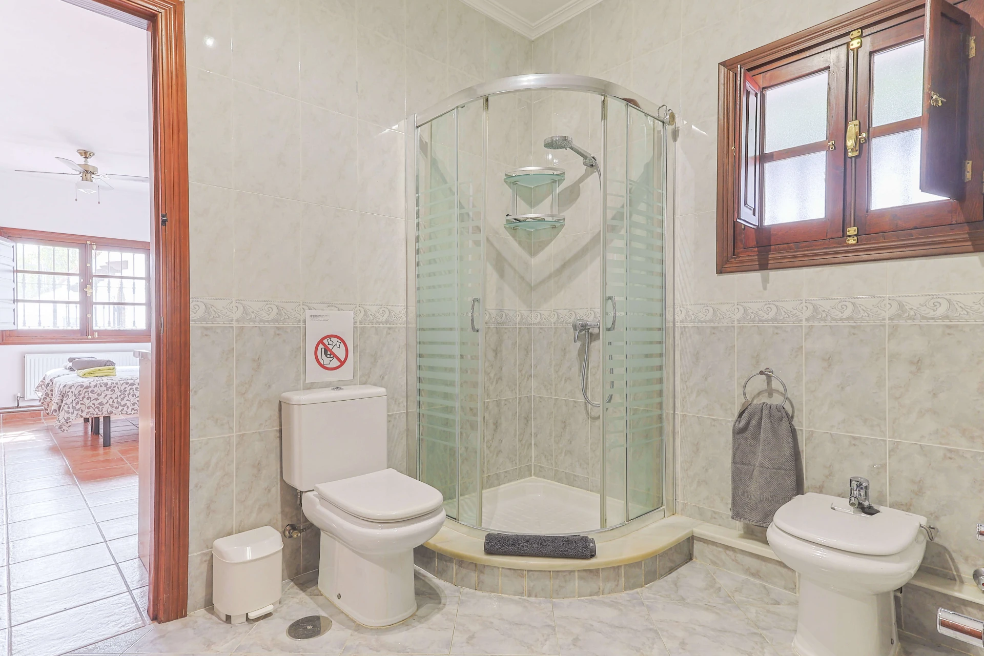 Das Ferienhaus ist ebenerdig und somit leicht zugänglich für Menschen mit eingeschränkter Mobilität. Drei Schlafzimmer befinden sich im Hauptgebäude, und ein viertes Schlafzimmer ist im Nebengebäude in der Nähe des Pools. Bitte beachten Sie, dass die maximale Belegung des Hauses 6 Erwachsene und 2 Kinder beträgt.