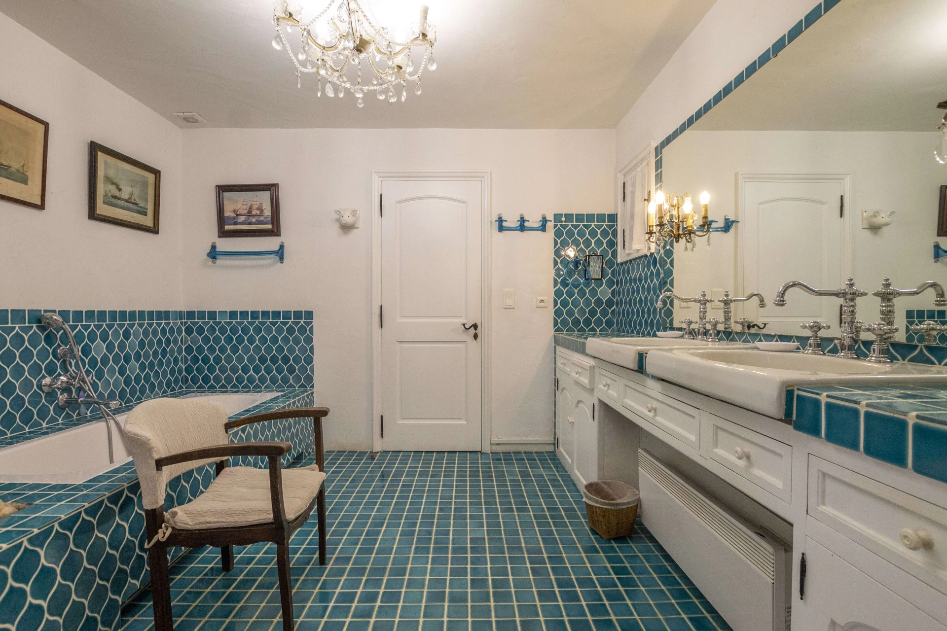 Das sehr geräumige Wohnzimmer verfügt über eine Sitzecke (TV) und eine Essecke. Eine große Fenstertür führt auf eine schöne überdachte Terrasse mit einem großen Grill. Fast jedes Zimmer hat große Fenster, die einen direkten Zugang zum Garten und zum Pool bieten. Auch die Schlafzimmer und Bäder strahlen einen warmen, luxuriösen und authentischen Charme aus.