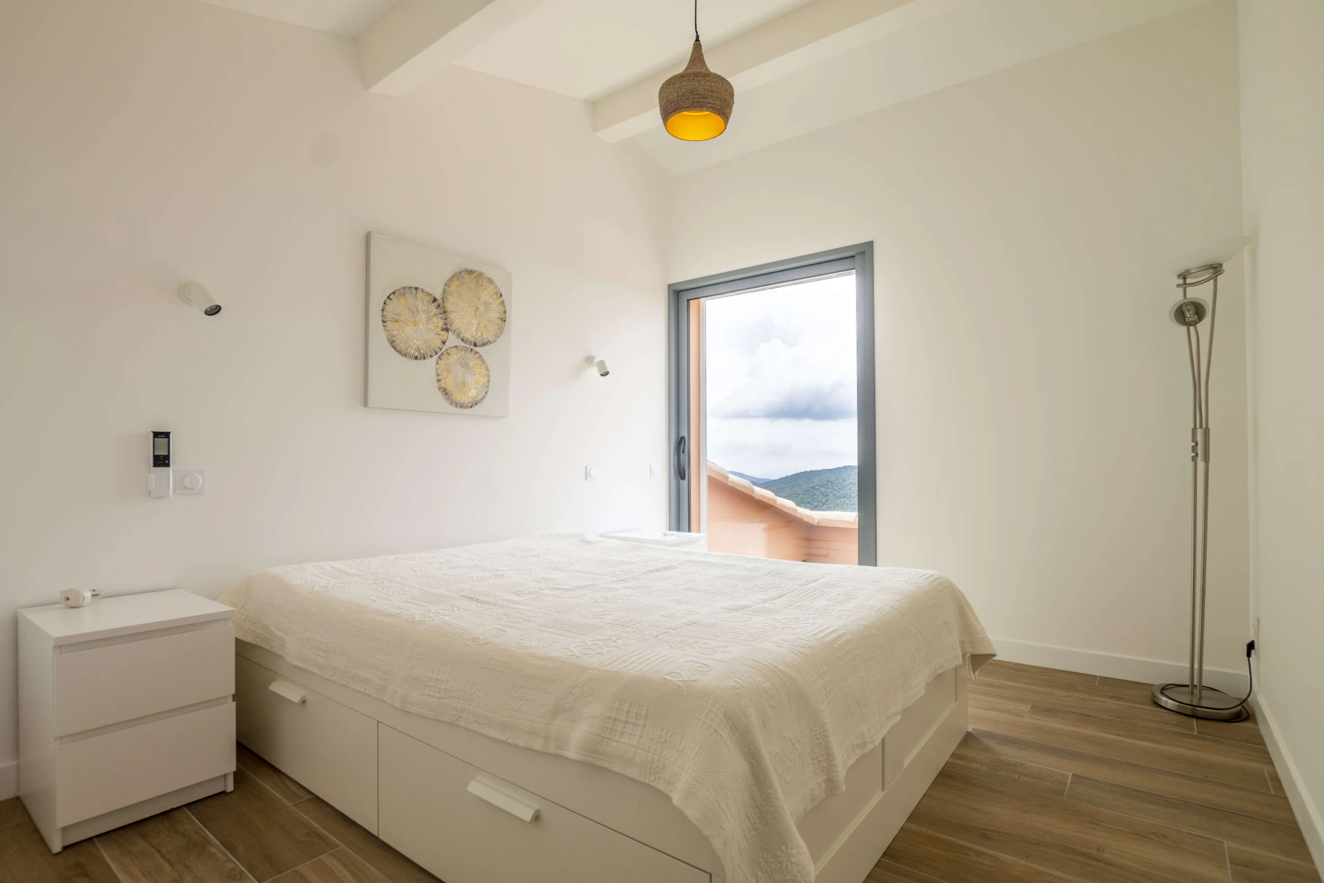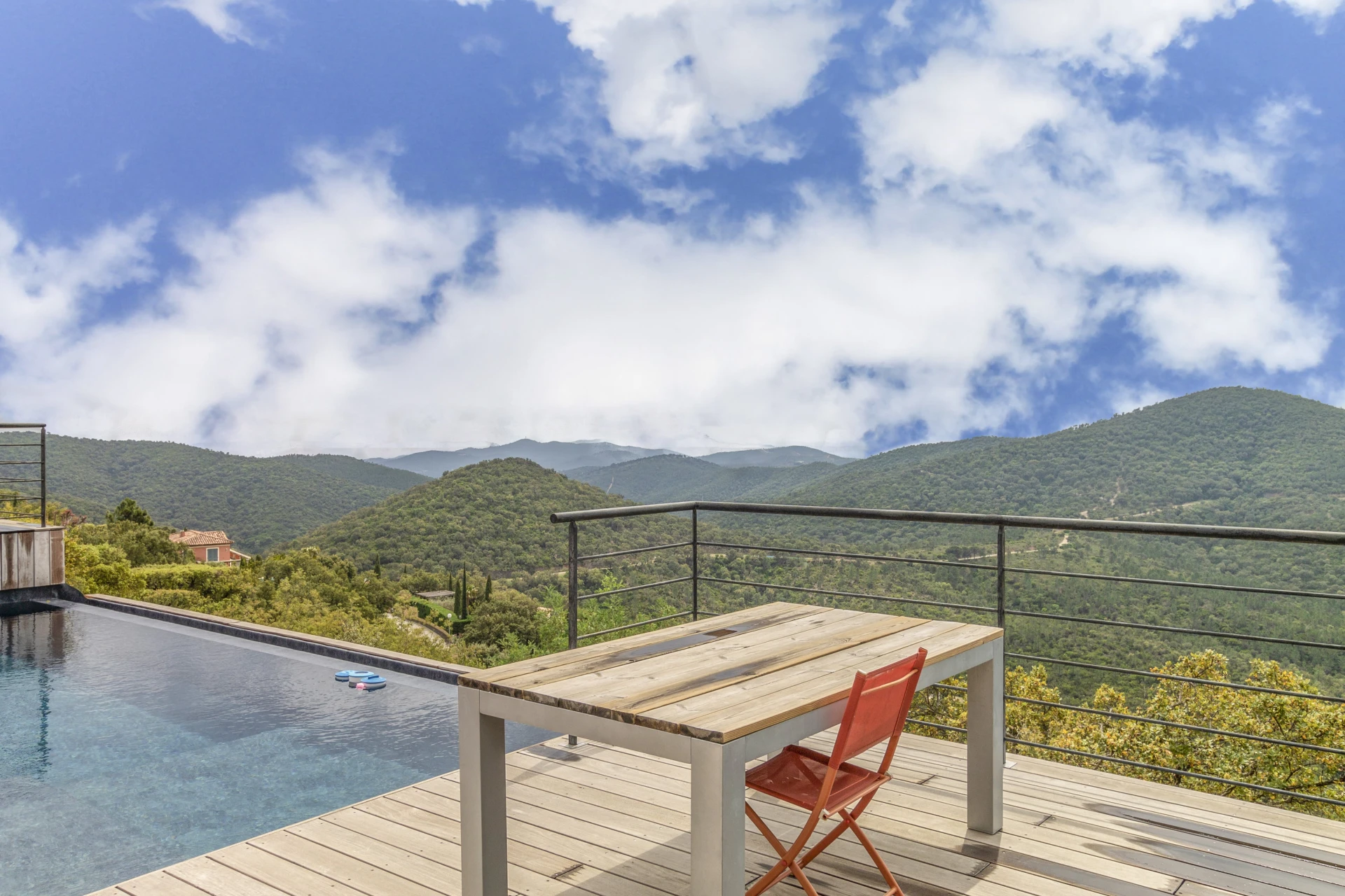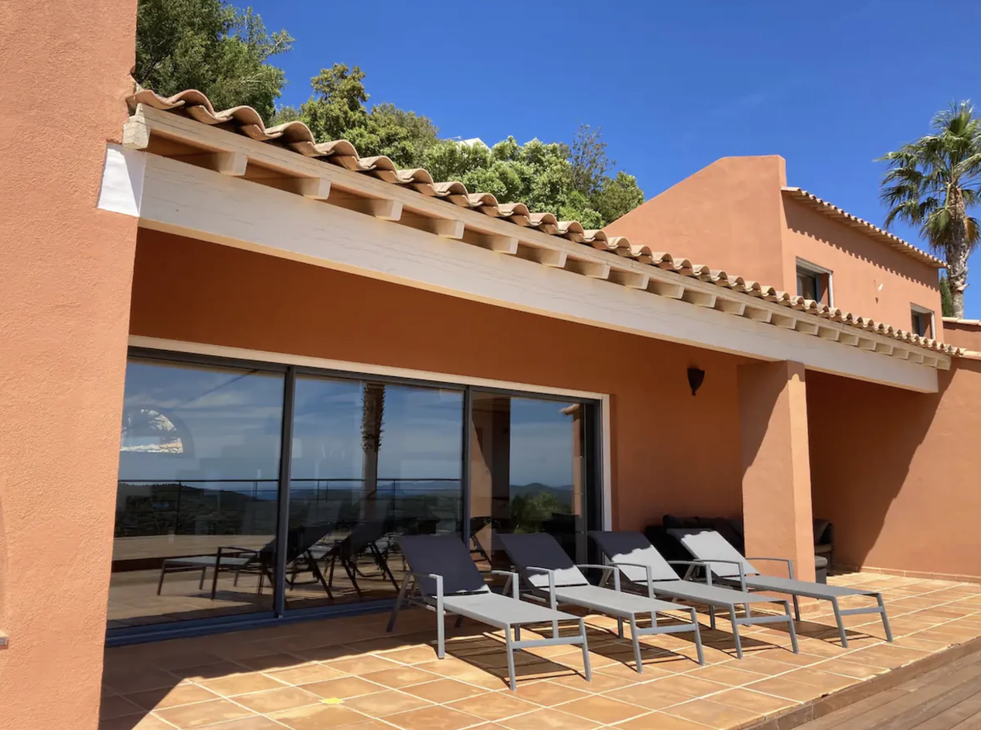 Dieses Ferienhaus mit Meerblick in Südfrankreich wurde mit viel Geschmack und Sorgfalt eingerichtet. Es verfügt über ein großes Wohnzimmer mit Esstisch, TV-Ecke und Mezzanin. Voll ausgestattete Küche mit direktem Zugang zu einem schattigen Essbereich im Freien. Alle Schlafzimmer haben einen direkten Blick auf das Meer und sind gut klimatisiert.