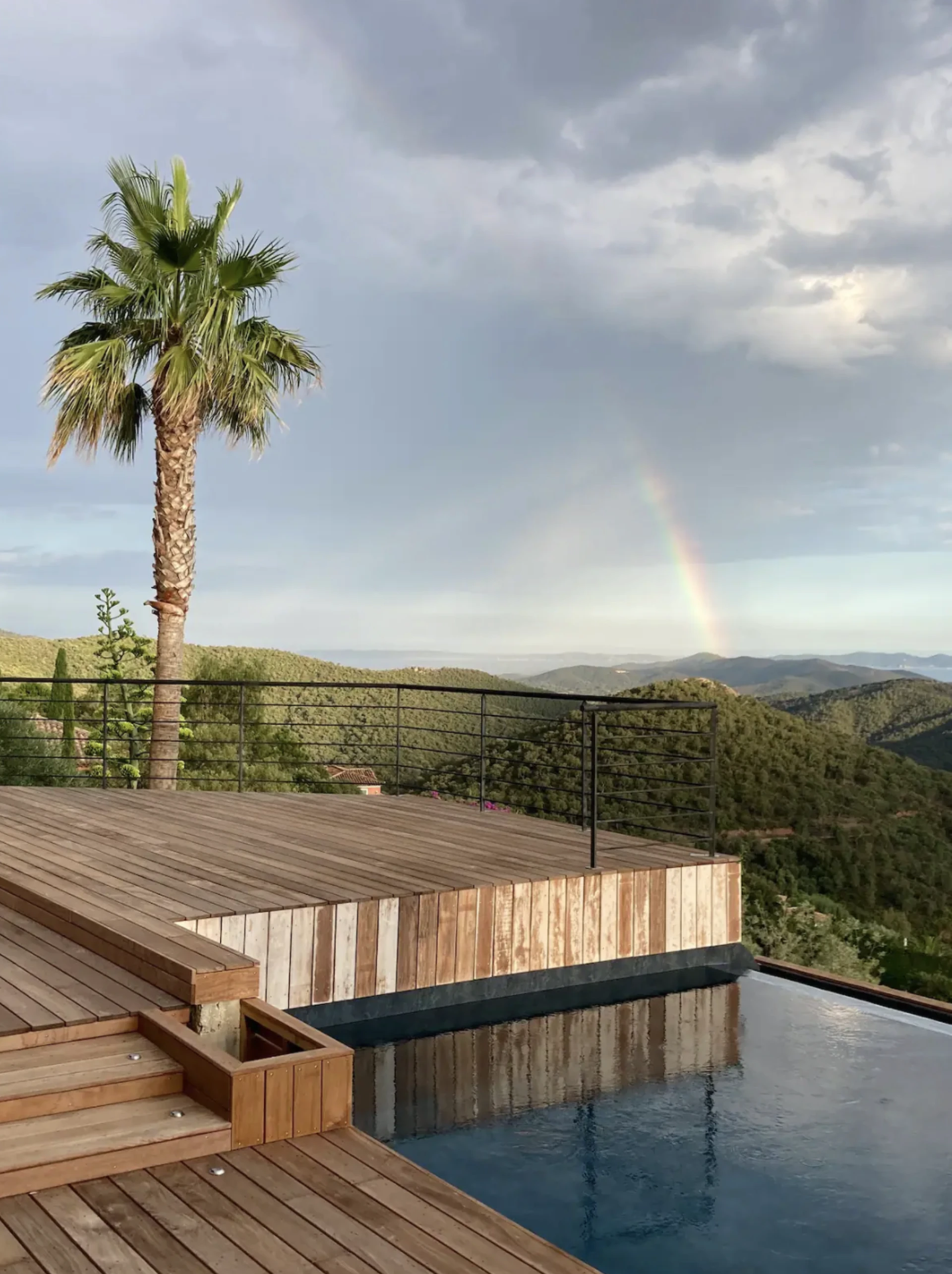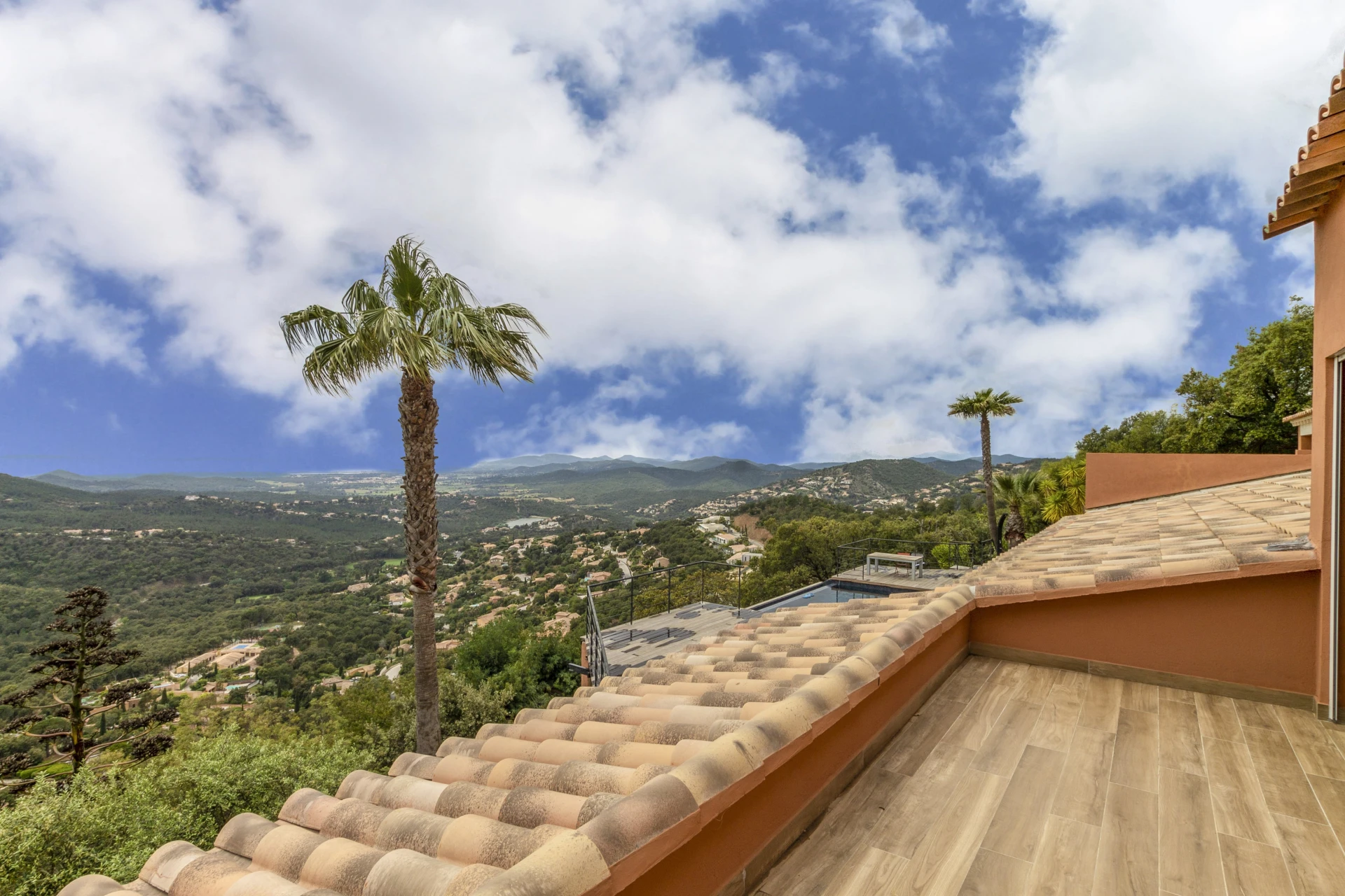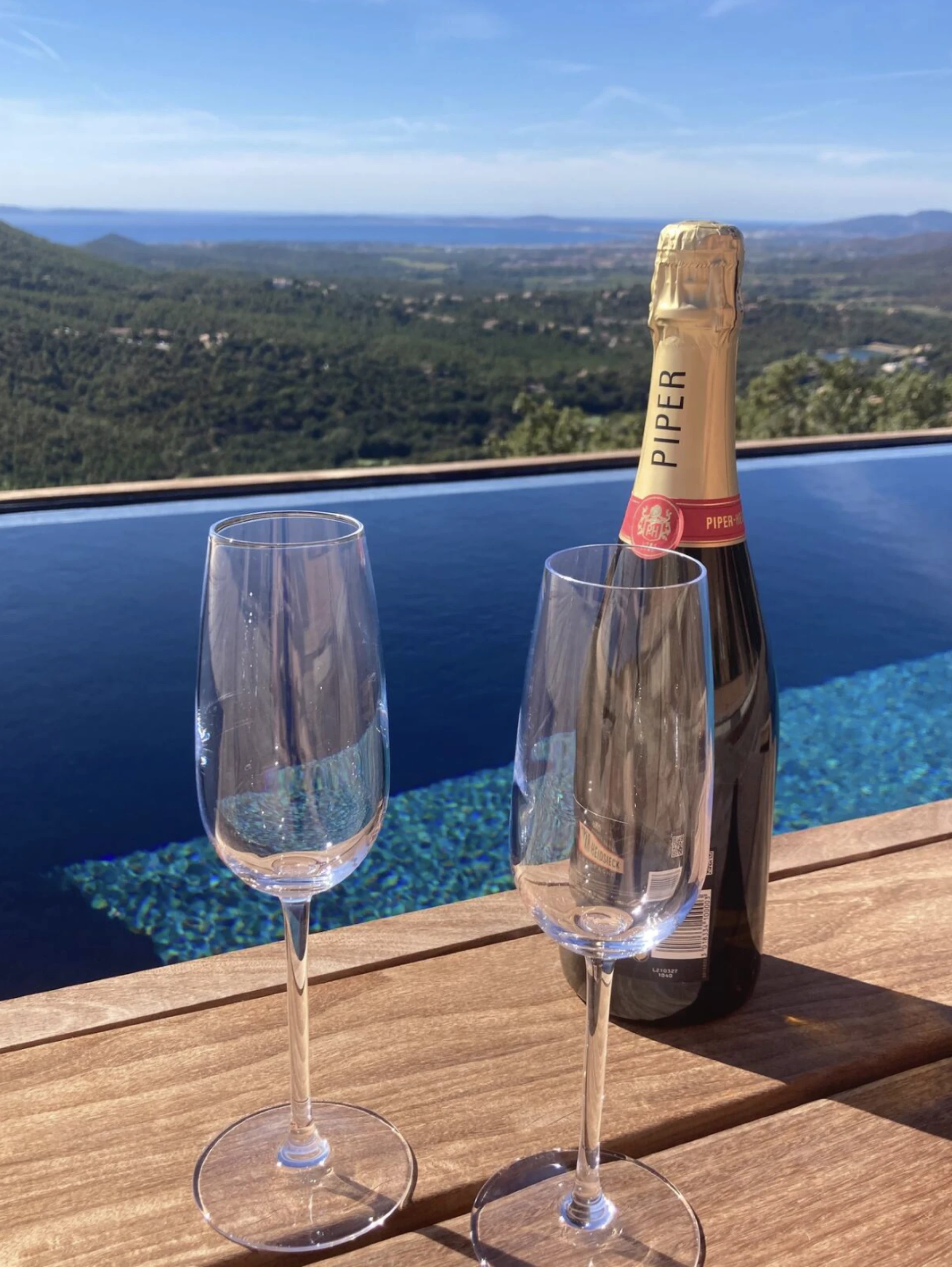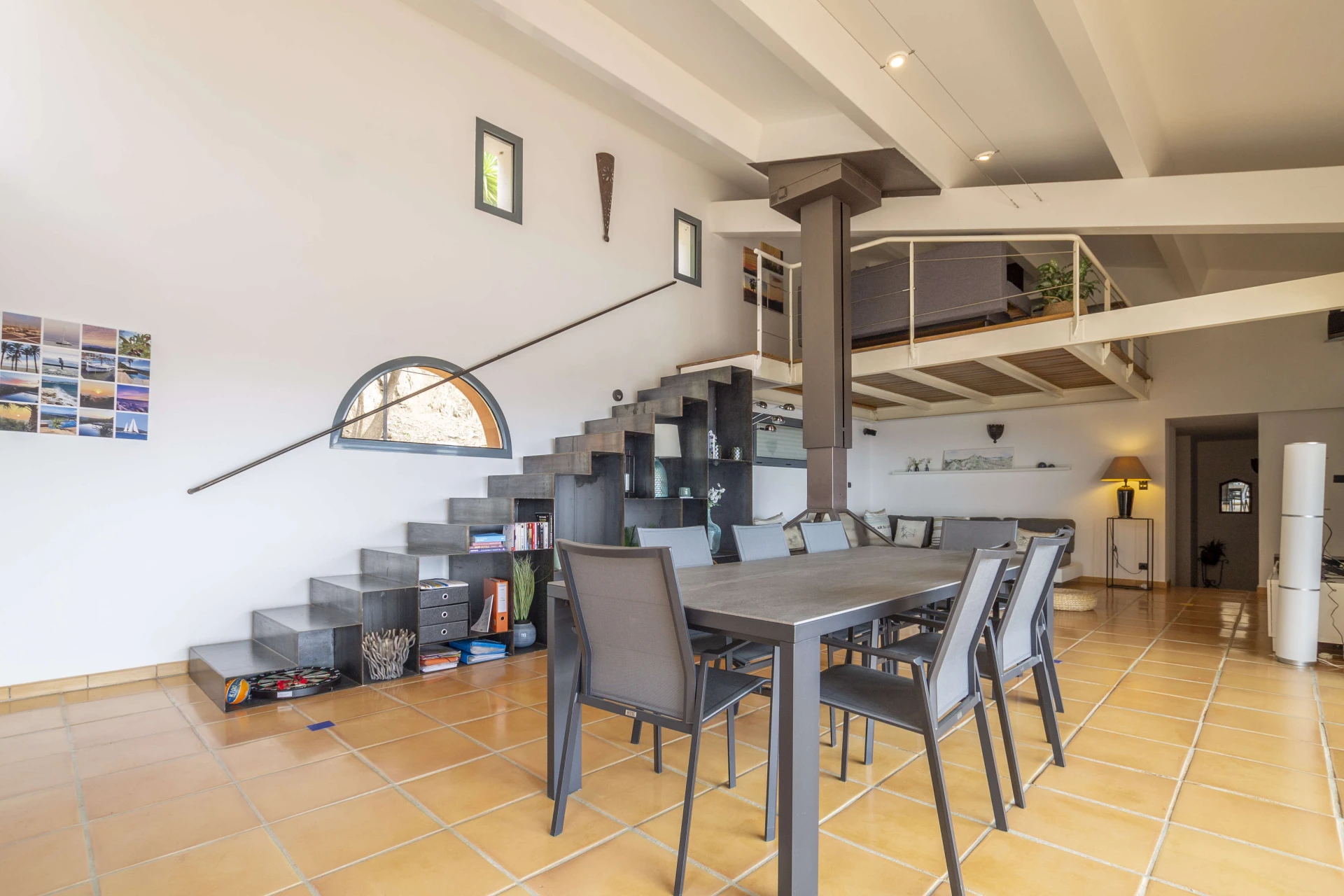 Dieses Ferienhaus mit Meerblick in Südfrankreich wurde mit viel Geschmack und Sorgfalt eingerichtet. Es verfügt über ein großes Wohnzimmer mit Esstisch, TV-Ecke und Mezzanin. Voll ausgestattete Küche mit direktem Zugang zu einem schattigen Essbereich im Freien. Alle Schlafzimmer haben einen direkten Blick auf das Meer und sind gut klimatisiert.