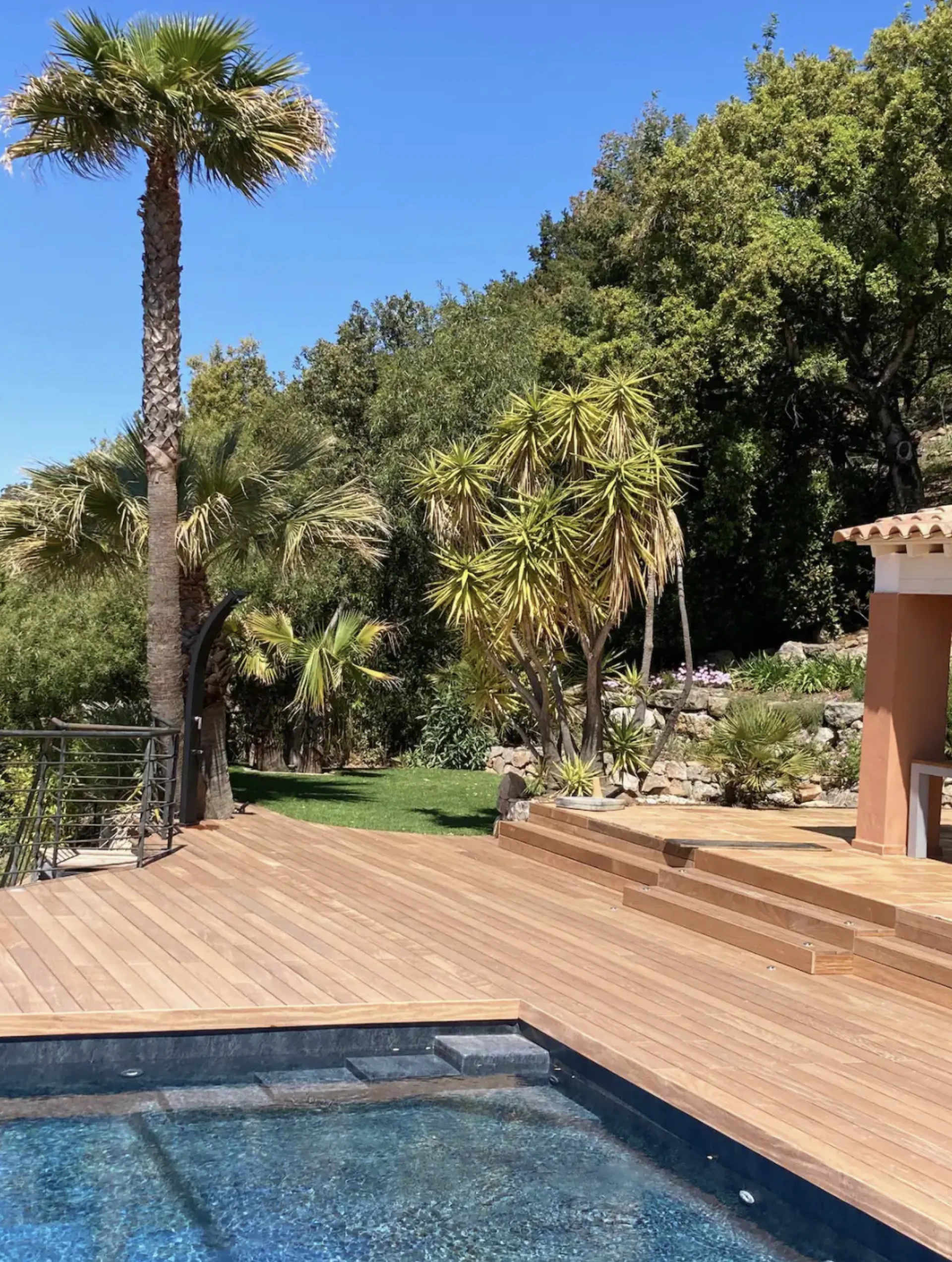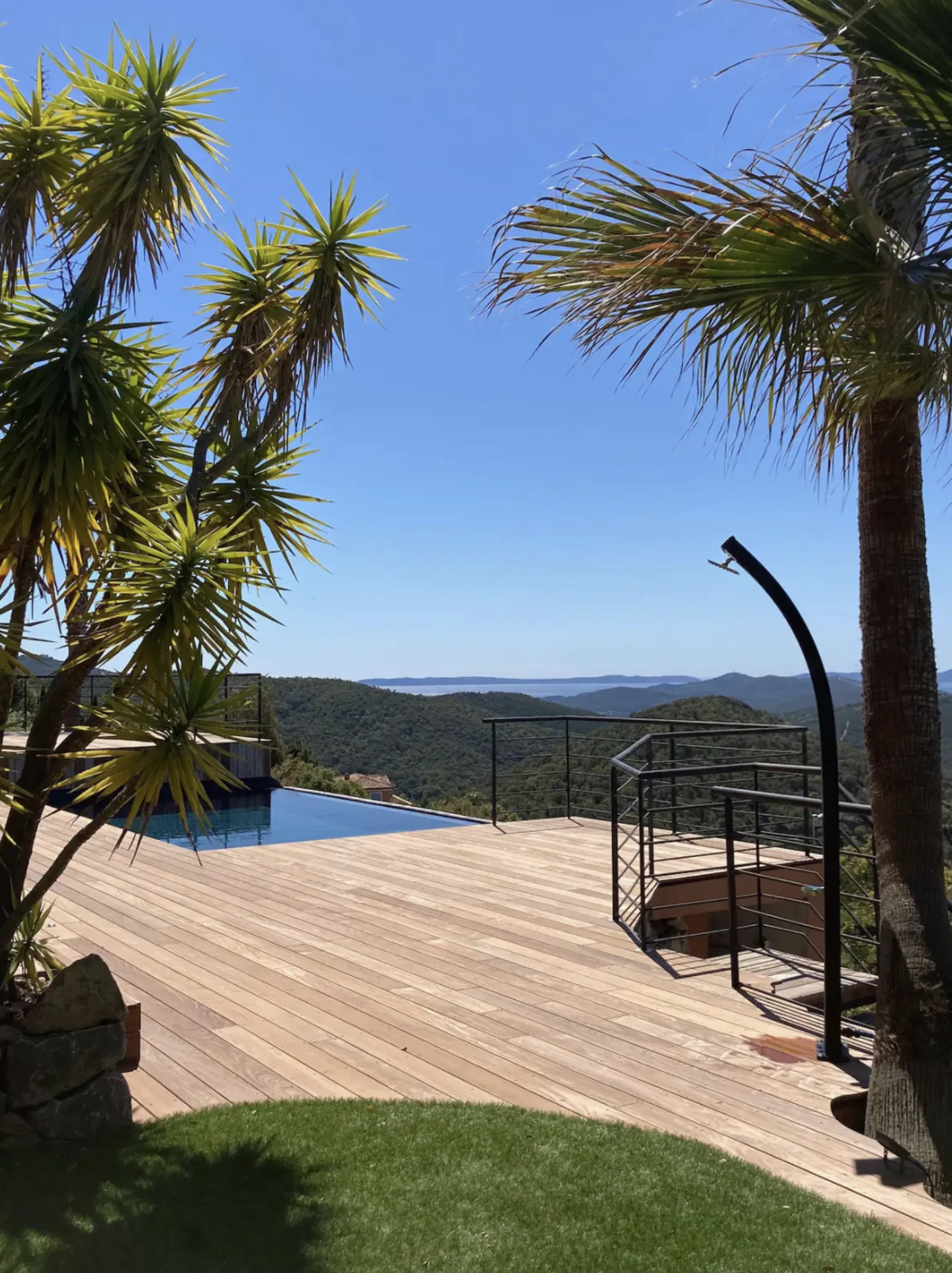 Die Villa ist nach Süden ausgerichtet und bietet einen atemberaubenden Blick auf das Meer. Die hochwertige Einrichtung und die vielen Terrassen garantieren Ruhe und Intimität, ideal, um während eines unvergesslichen Aufenthalts neue Energie zu tanken. In der Nähe der schönsten Strände, 5 Minuten vom Golf von Valcros und 25 Minuten vom Flughafen Toulon entfernt.