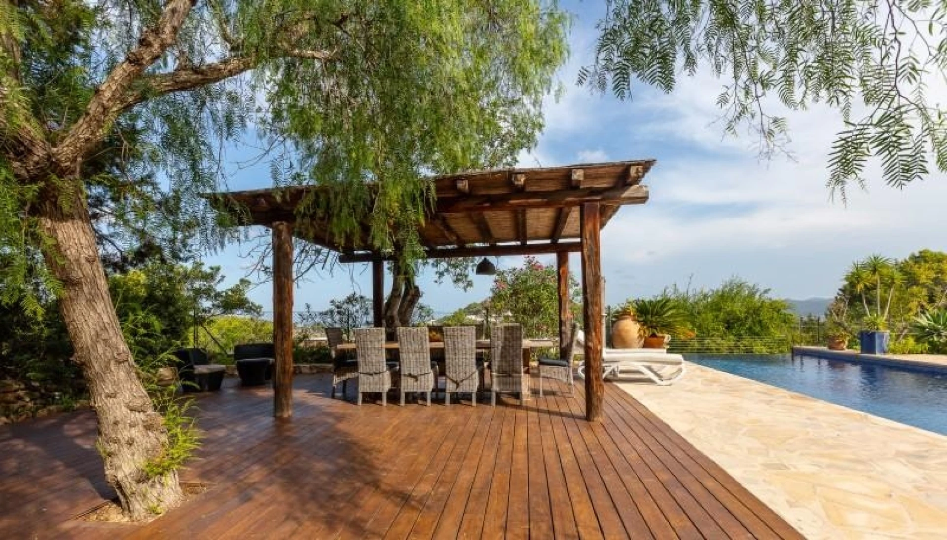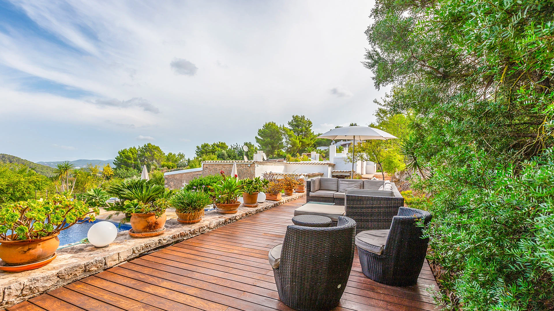 Finca Savina is an extraordinary, renovated, typical finca with a exceptional interior. Thanks to the typical Savina wood, this house still has the charm of a typical Ibiza house. The endless pool (10x5) with waterfalls offers a view on the environment and the big terrace is a perfect place to relax.