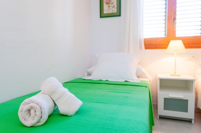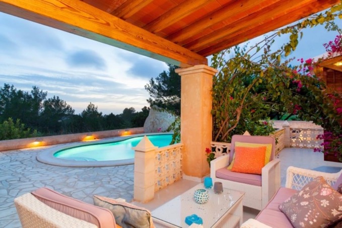 Finca vista Formentera is a lovely family villa, with a private pool (10x5) and a very cosy outside area. The holidayhouse has amazing views over the entire southern coast and the island Formentera. It is close to the beaches on the South West coast as Cala Carbo, Cala d'Hort, Ses Boques, Es Torrent, Xarcu, Porroig, Cala Yundal. The covered terraces are amazing to enjoy a nice barbecue and find some shade. This holiday home is only 500m away from the village Es Cubells and also Ibiza Town is only 15km away. When you enter in this holiday home, you enter a little cosy paradise. Perfect house to spend with you family or friends. This holidayhouse offers you : * Living room * Open kitchen * Bedroom 150cm + airco * Bedroom 2x1p + airco * Bedroom 2x1p + airco * Bathroom * Showerroom Facilities: Frenced, outside shower, barbecue, WIFI, satellite TV, DVD, base Ipod, Airco in bedrooms, safe box, dishwasher, oven, washingmachine, panoramic view, parking Feel free to request us for extra services: cleaning, laundry, chef, boat, driver, baby sitter, ....