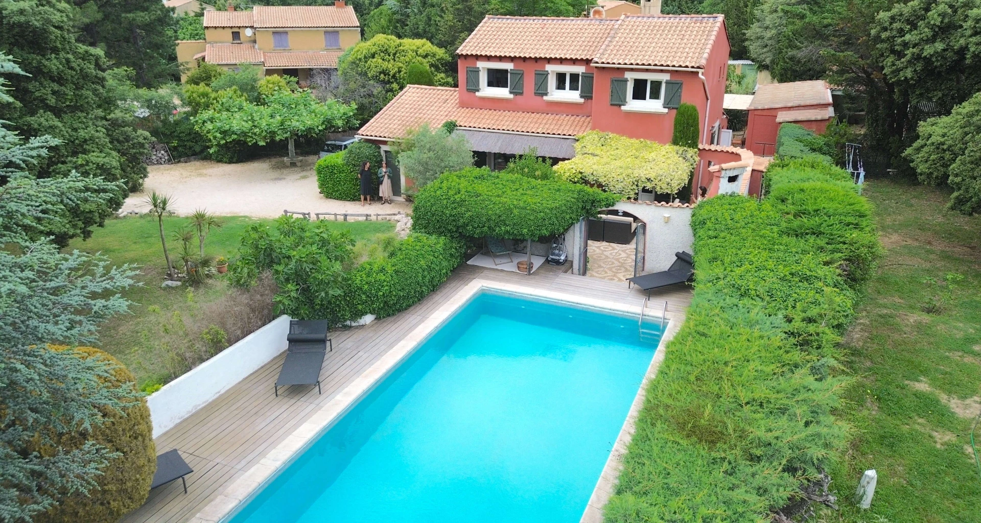 This holiday home with a fenced private swimming pool gives a secure feeling, one feels at home here. Separate room at the terrace with gas fire, fridge and dryer. This beautiful house with private pool in the south of France has a very nice fenced garden with nice spots to relax. Under the oak tree you can relax in a hamac. A lovely holiday home with private pool to relax with the family. The hospitable owner lives in a small separate house at the back of the same property. Discretion and privacy are assured.