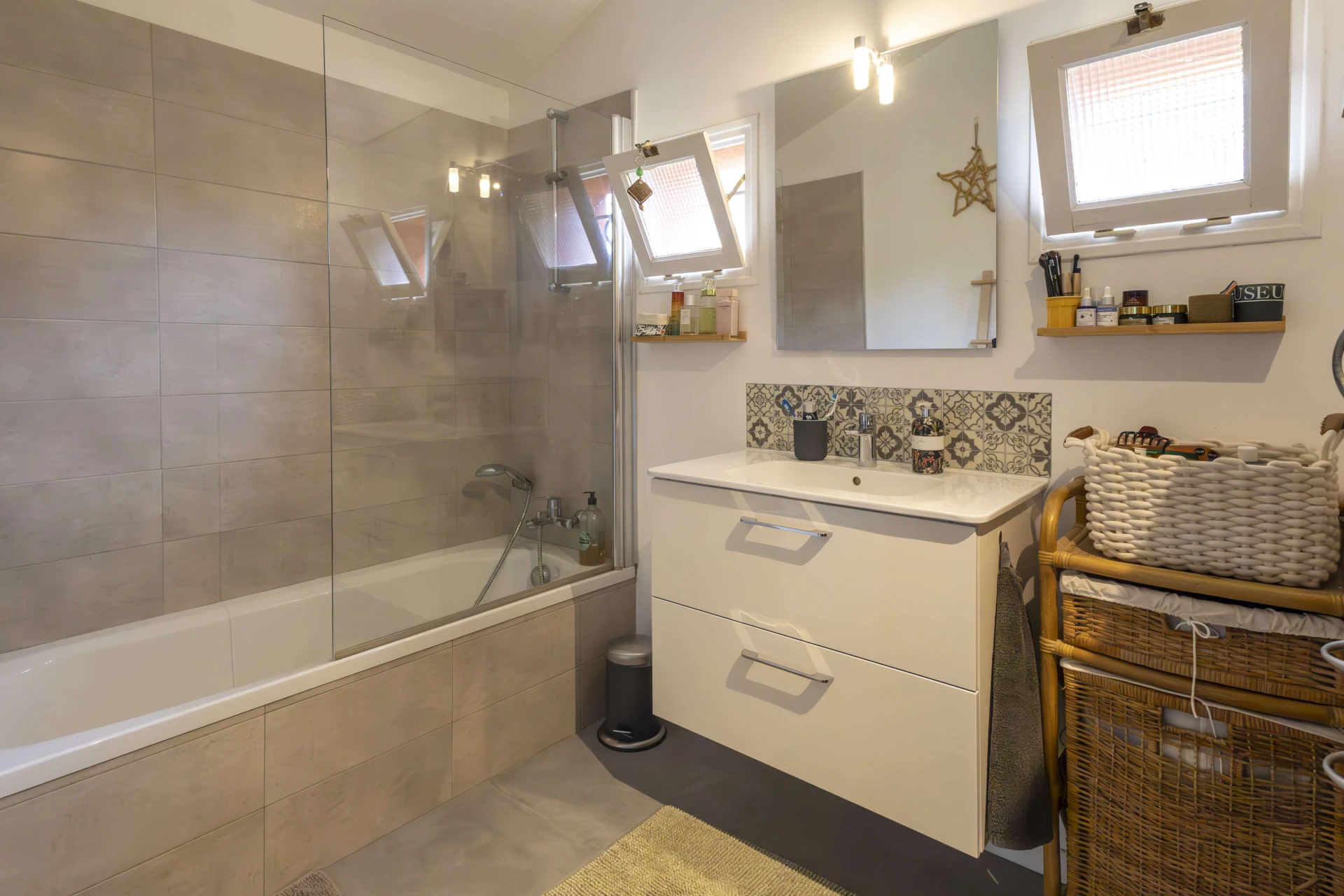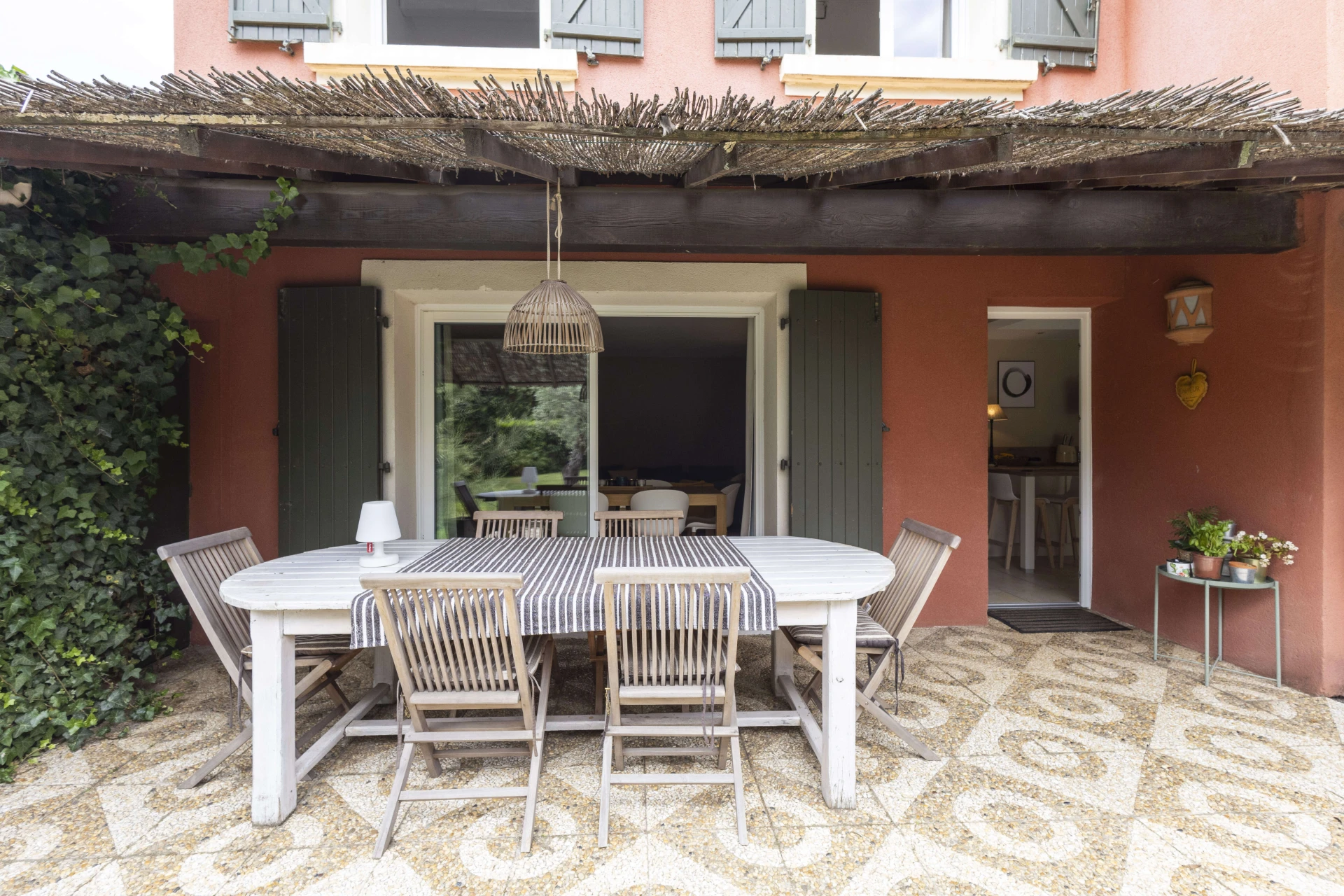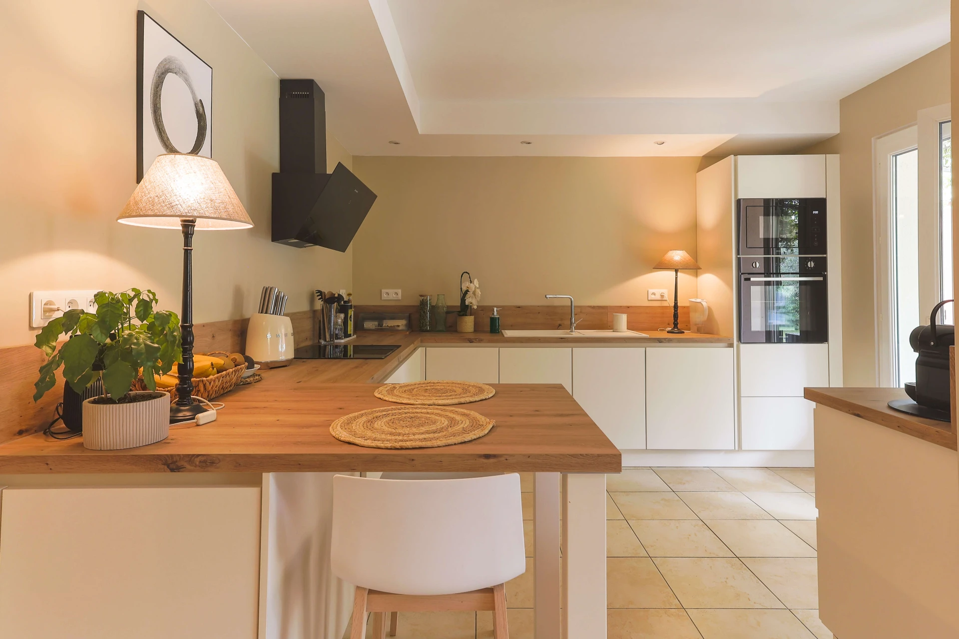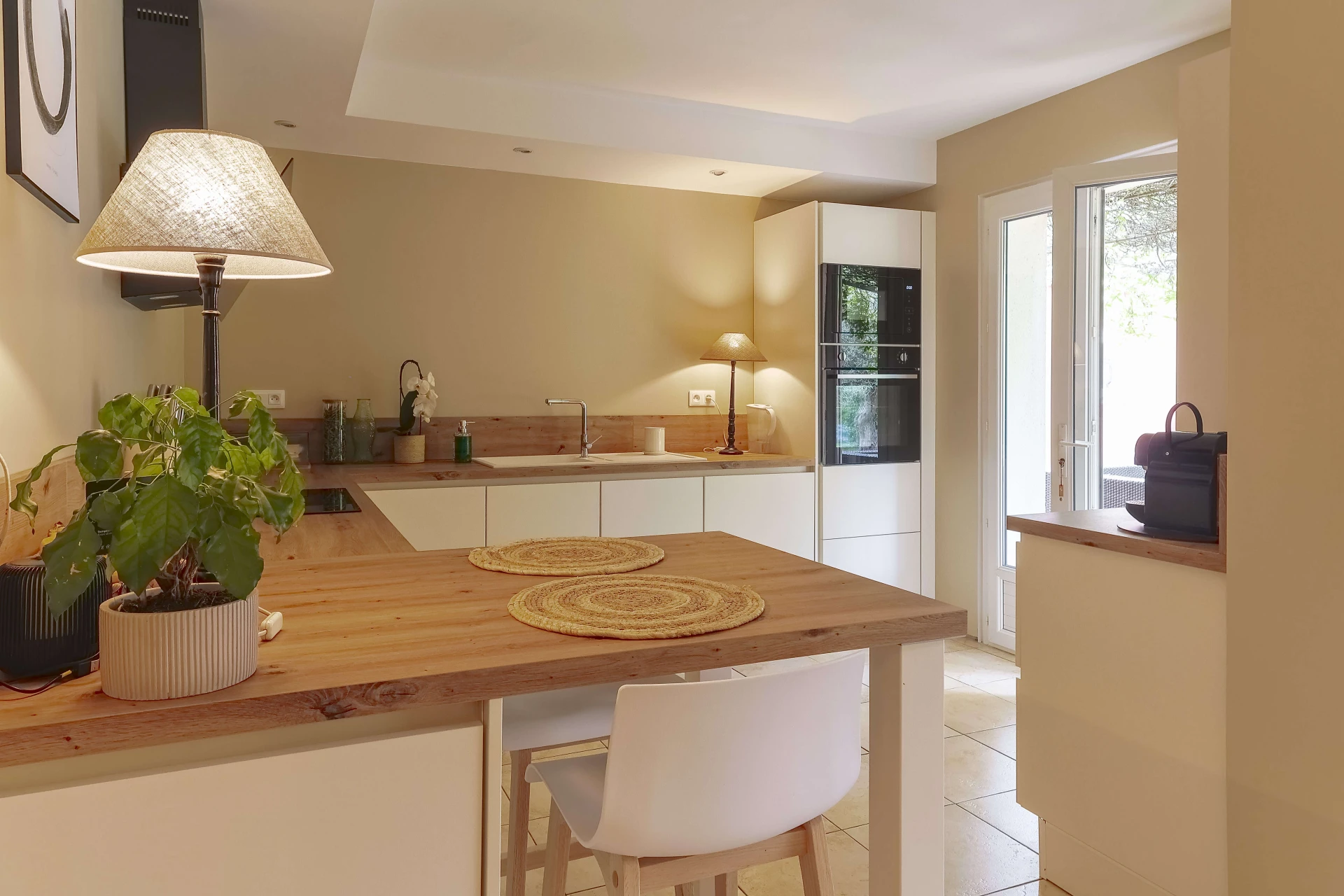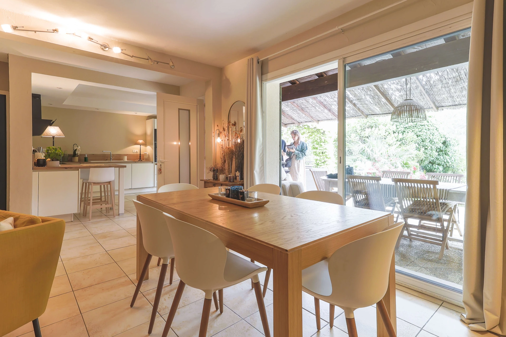 Both the kitchen and the living room have sliding doors that give access to the super cosy terraces. Very well cared for and beautiful interior.