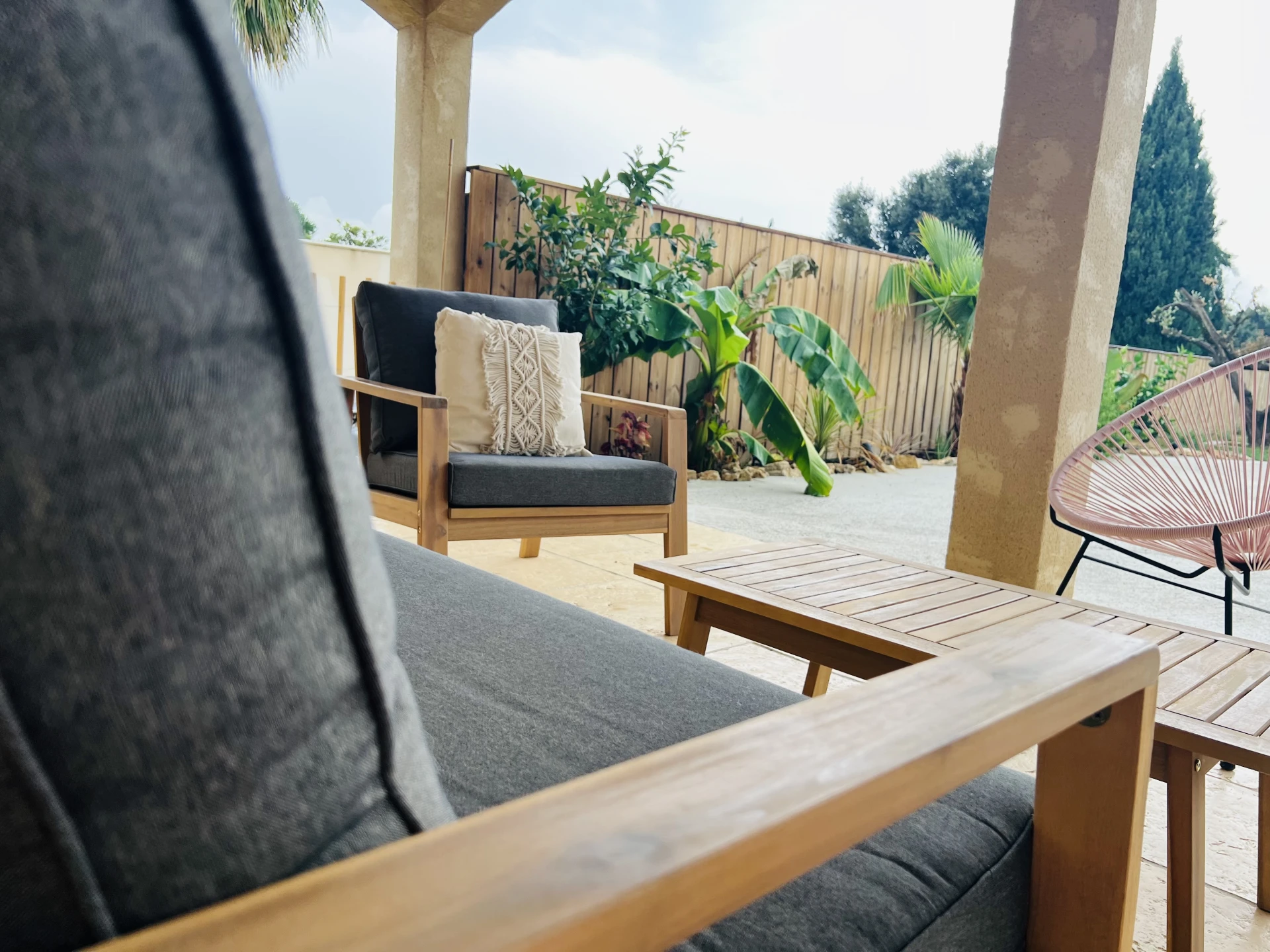 Poolhouse mit viel Gartenmobiliar zum Entspannen