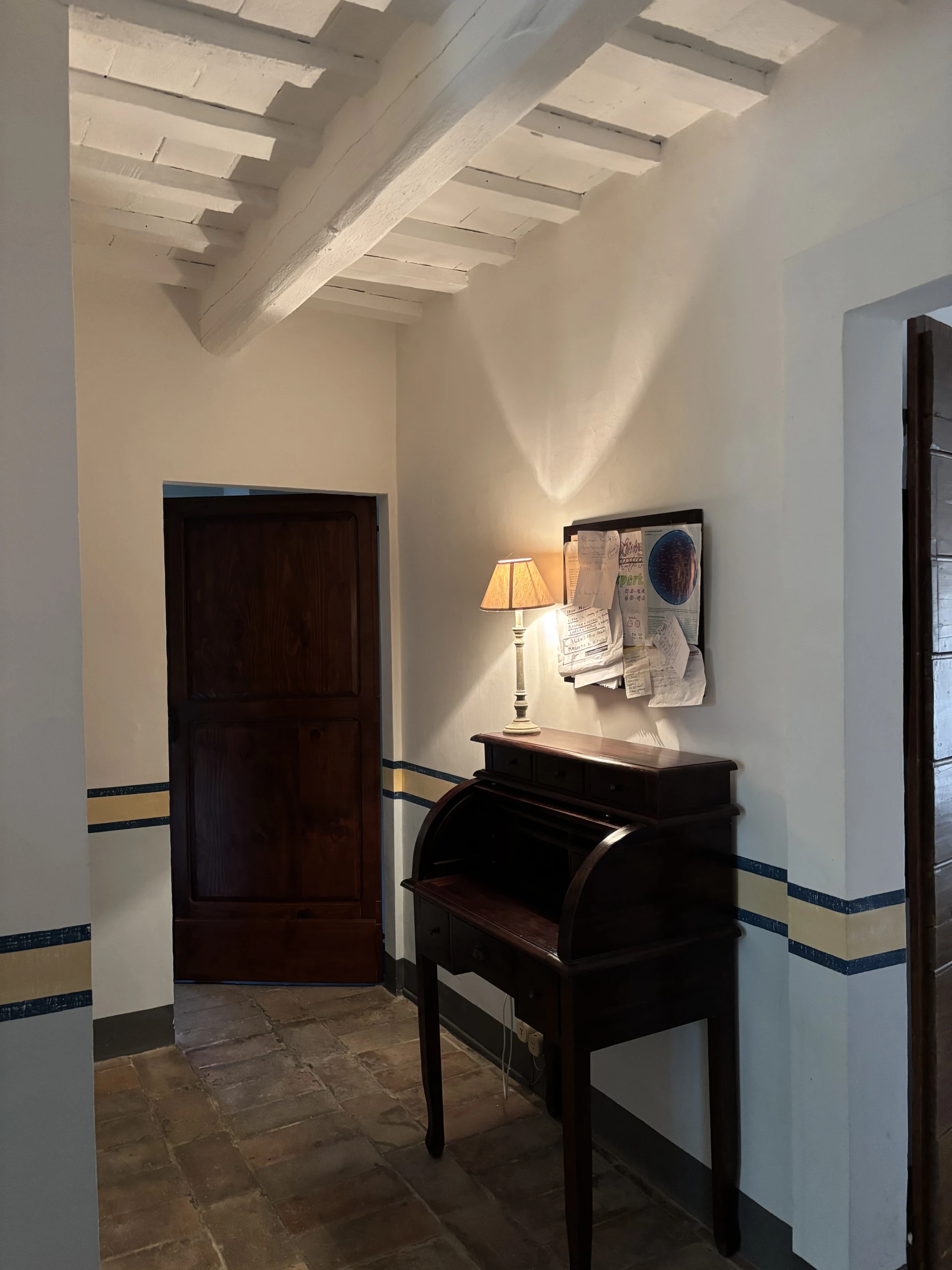 Het pand is een authentiek palazzo padronale, meer dan twee eeuwen oud, gelegen in een borgo met slechts twee andere woningen. Oorspronkelijk eigendom van de familie Mazzi, die de omliggende gronden bezat, werd het gebouw eind jaren ’90 van de vorige eeuw met veel zorg gerestaureerd. Lokale ambachtslieden gebruikten authentieke materialen, terwijl een meester-schilderes de binnendecoratie verzorgde. In de daaropvolgende jaren werd het buitengebouw omgetoverd tot een buitenkeuken met zonneterras en werd het zwembad harmonisch geïntegreerd in de glooiende omgeving.