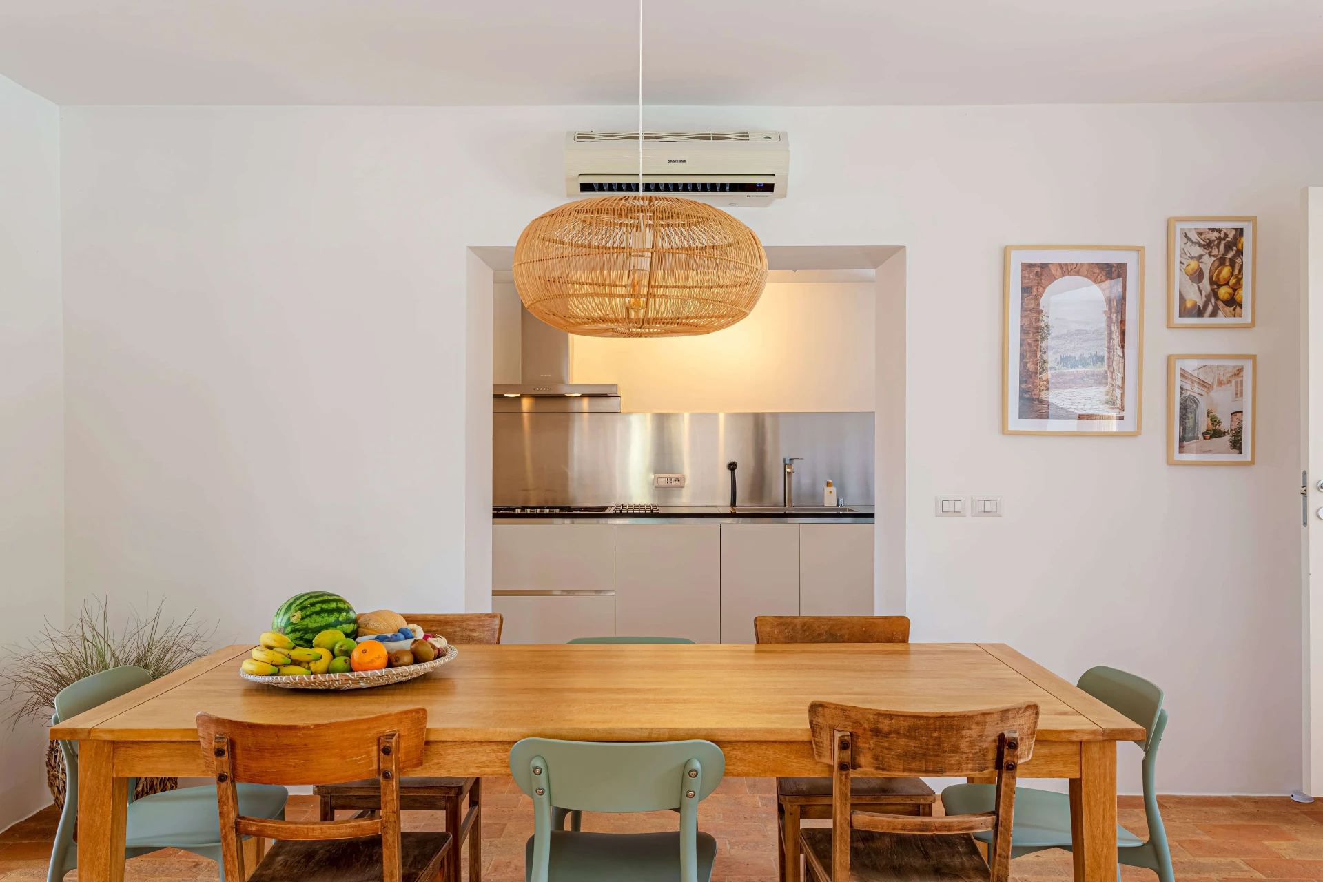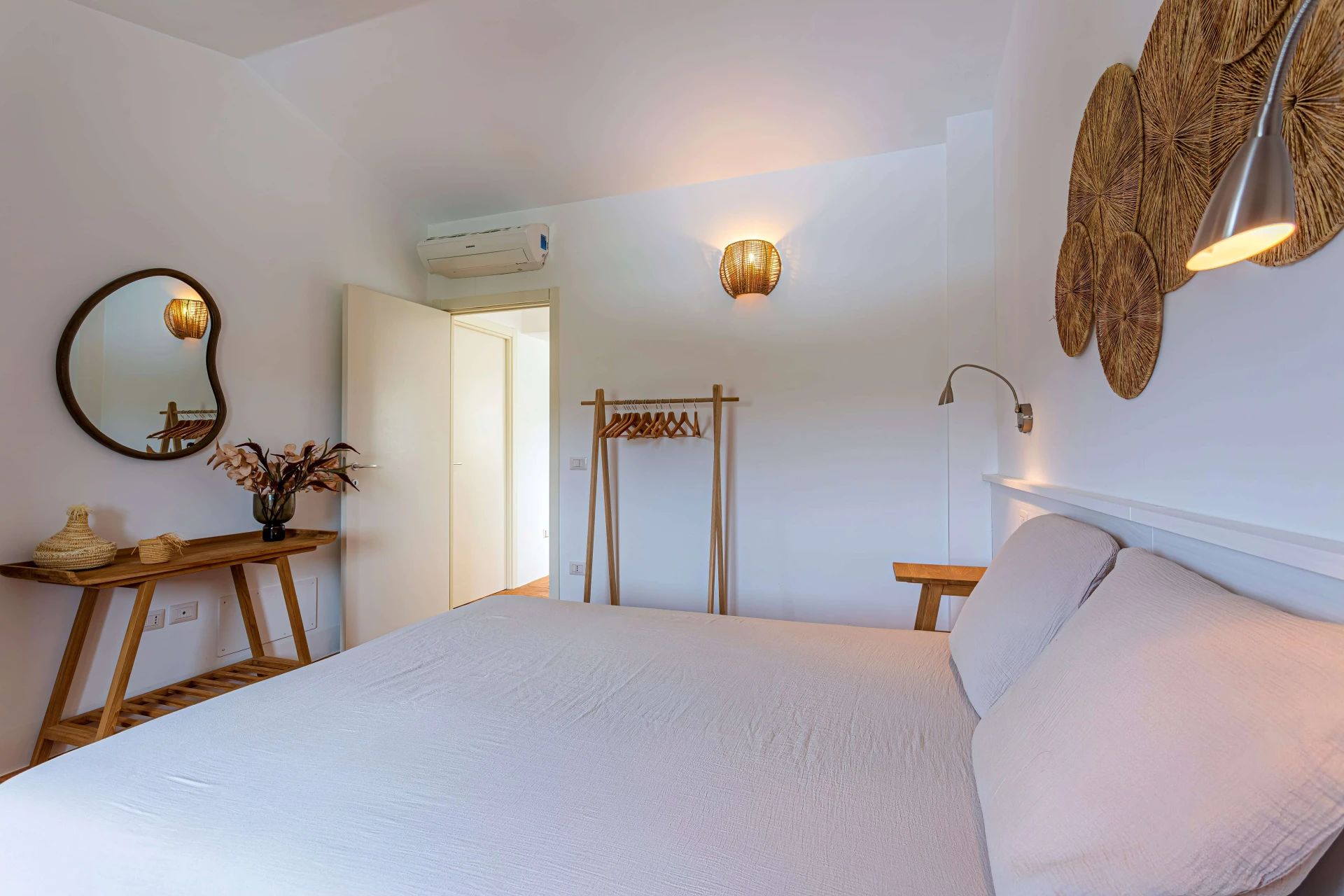 Die Villa ist komplett ausgestattet, einschließlich Klimaanlage, und geschmackvoll in einem raffinierten Ibiza-Stil eingerichtet, der sofort Urlaubsstimmung aufkommen lässt. Im Erdgeschoss finden Sie ein helles Wohnzimmer, Esszimmer, eine offene Küche, ein Badezimmer und ein Schlafzimmer, das auf die Terrasse führt. Im ersten Stock gibt es zwei weitere Schlafzimmer, eines mit eigenem Bad, und ein separates Badezimmer. Das vierte Schlafzimmer befindet sich im zweiten Stock. Alle Schlafzimmer sind klimatisiert, und die Badezimmer sind mit Regenduschen und Handtuchwärmern ausgestattet.