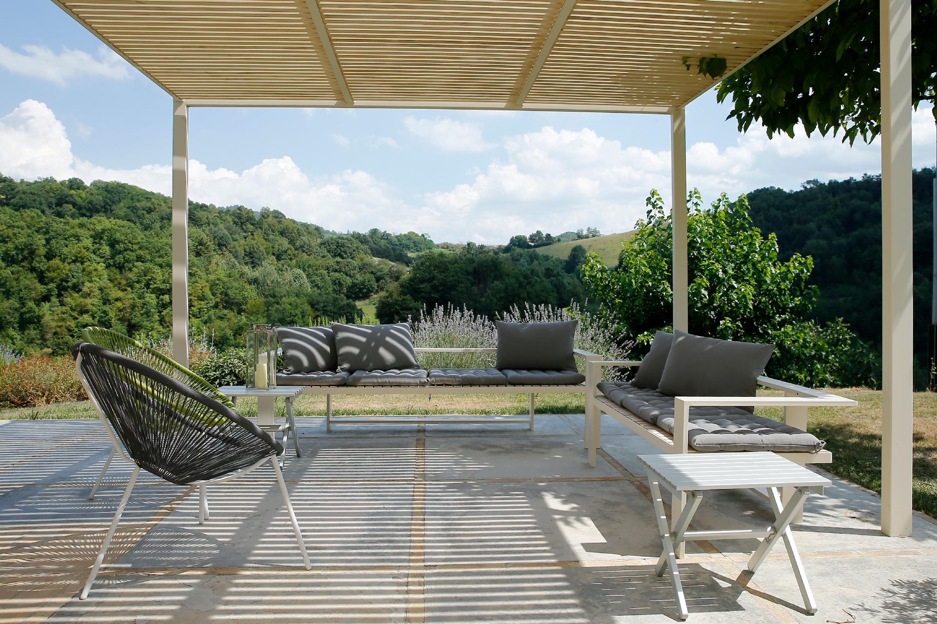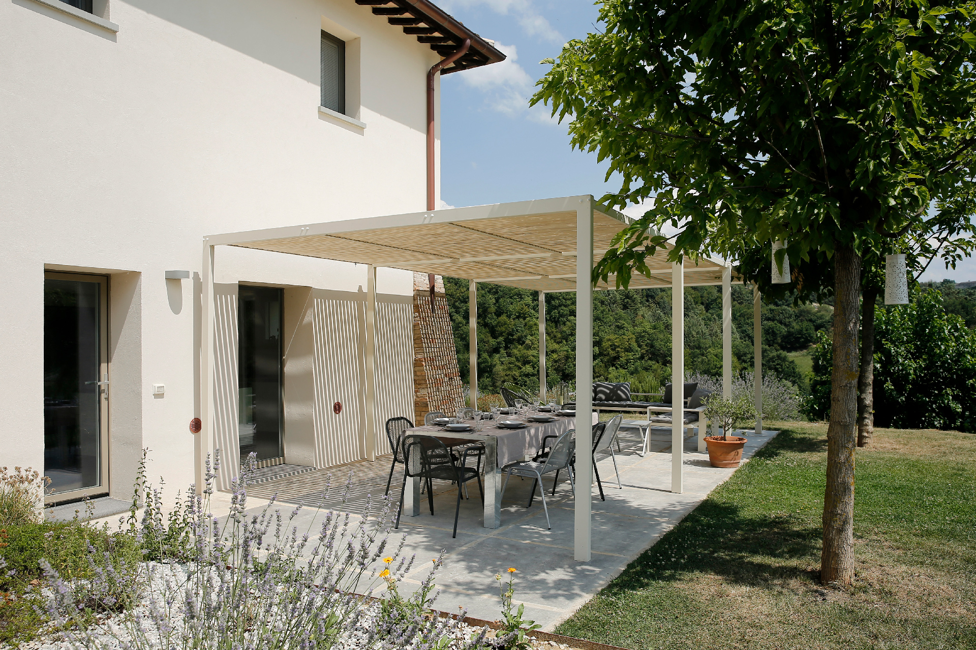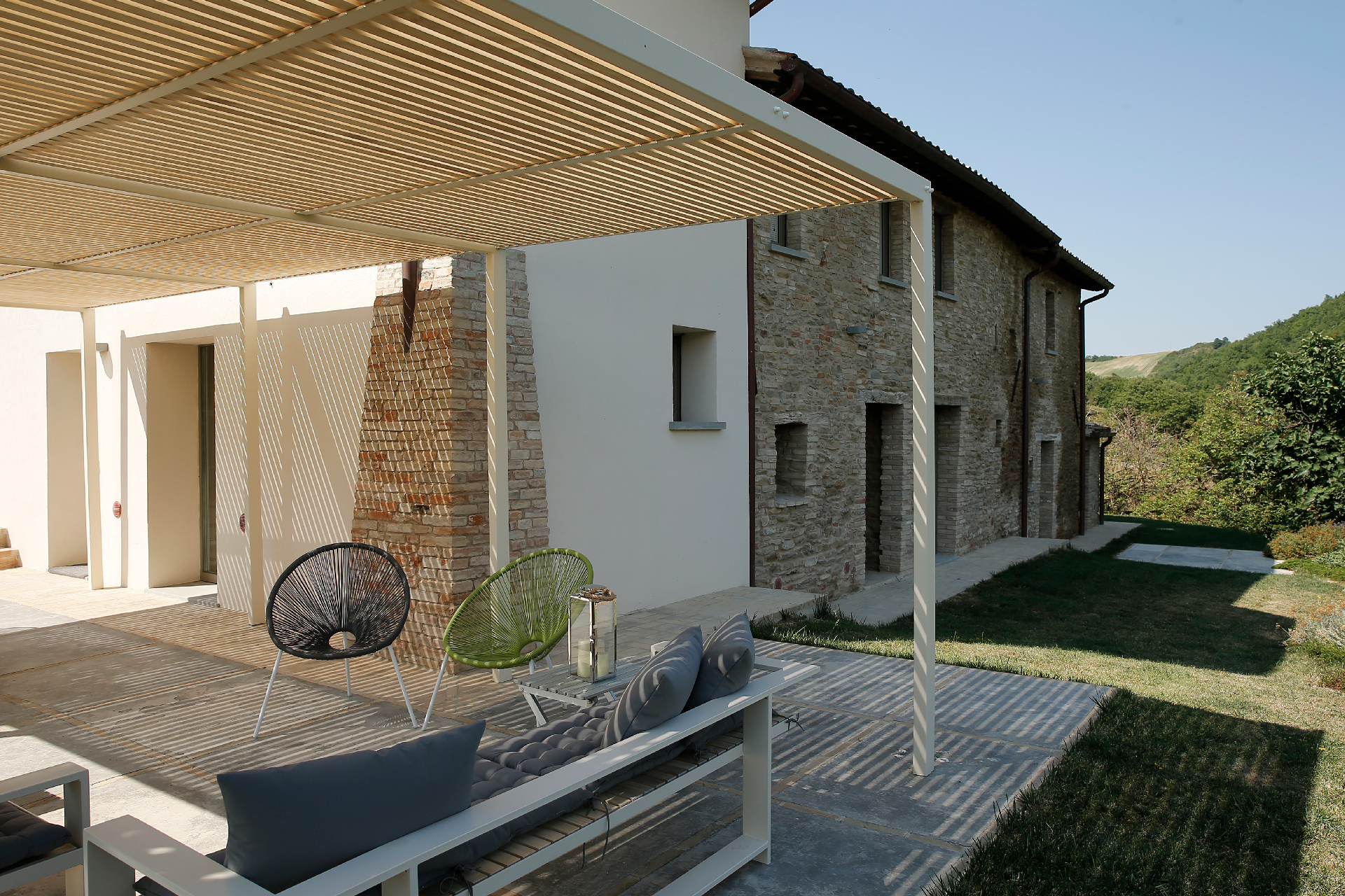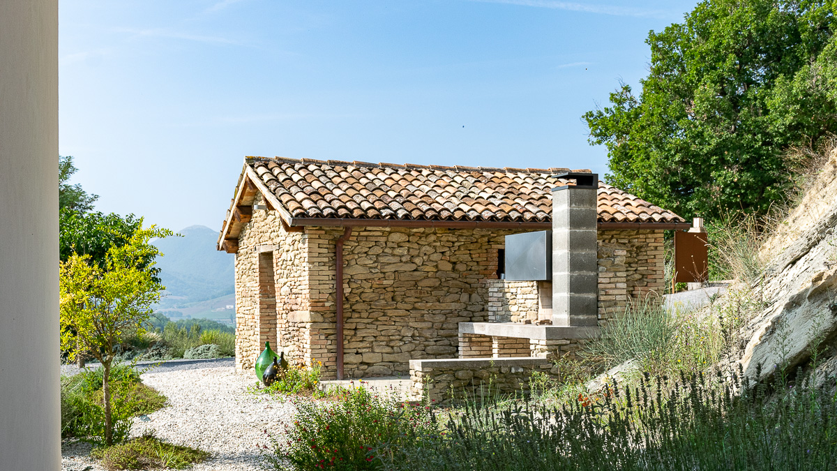 Villa Urban is a modern private holiday home with a design heated swimming pool. It is located at the end of a white cobblestone road which guarantees complete privacy. Yet you are within a few minutes drive and a fifteen minute walk in Urbania (Pesaro Urbino, Marche, Italy). In Urbania you will find all the facilities you need: supermarket, butcher, bakery, restaurants, first aid, and even a cinema. The world heritage site of Urbino, with the famous palazzo ducale, is only 15 km away. If you want to sunbathe on the Adriatic coast, it is an hour's drive.