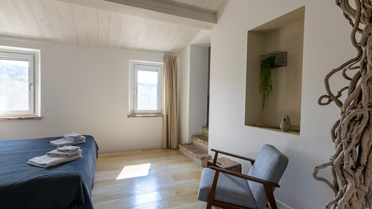 With four bedrooms and four bathrooms, this vacation home is perfect for spending quality time with family and friends. There is a large terrace with dining table, ideal for all eating outside together. There are also several sitting areas on the terrace, by the pool and close to the very nice BBQ area. Villa Urban is surrounded by a beautiful garden and organically cultivated fields. There is a spectacular view from the private pool of 10×4 meters.