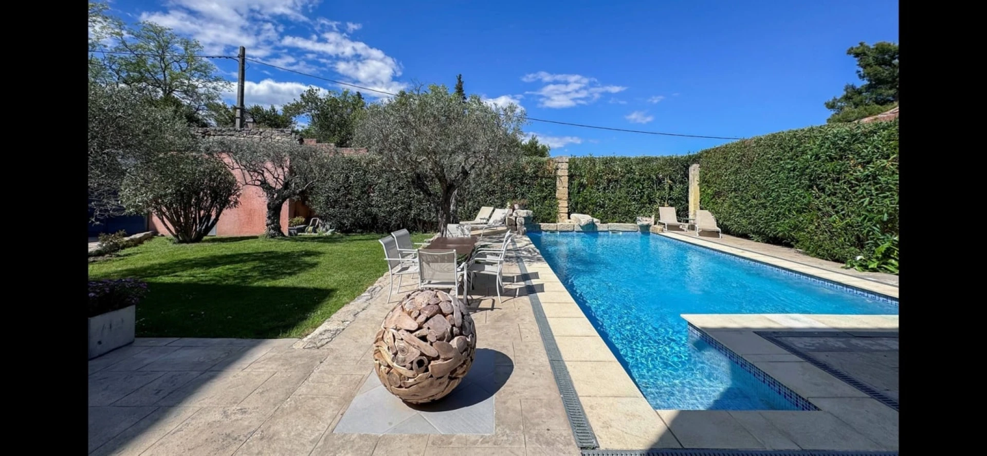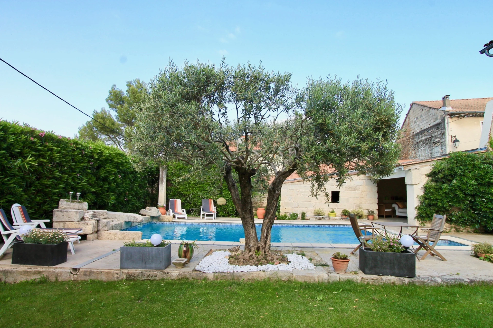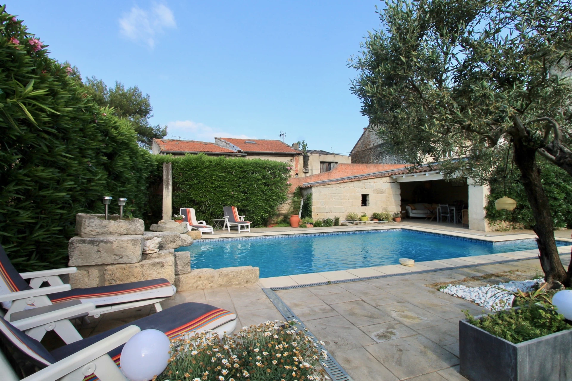 Das Ferienhaus bietet eine sehr schöne und sehr gepflegte Einrichtung. Die Schlafzimmer sind modern eingerichtet, ohne den alten Charme und Charakter des Hauses zu verlieren. Sowohl die Küche als auch das Wohnzimmer öffnen sich auf den schönen, vollständig umzäunten Garten und den privaten Swimmingpool (10x5m - mit Stufen hinunter auf 2m Tiefe). Es gibt mehrere Terrassen rund um das Haus, darunter eine gemütliche überdachte Terrasse, auf der Sie abends dank der schönen Gartenbeleuchtung eine märchenhafte Atmosphäre genießen können.