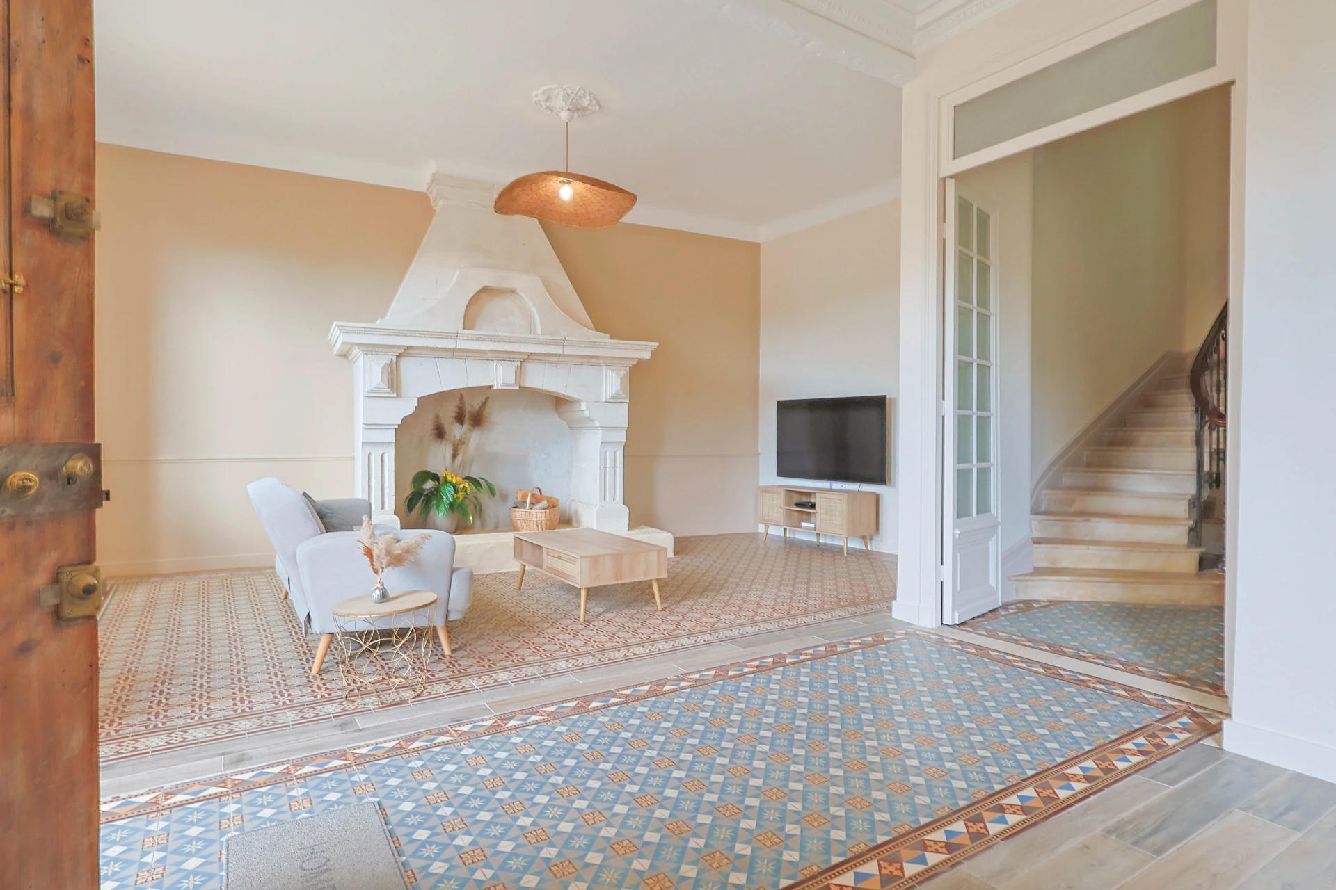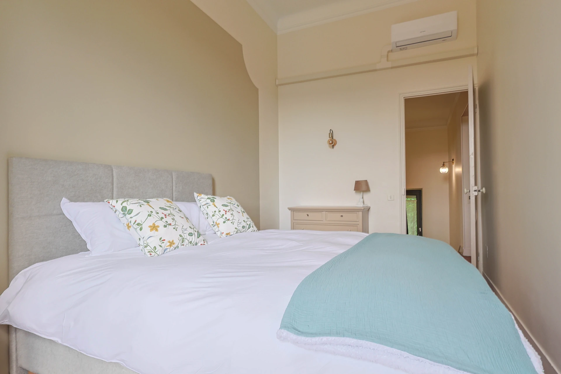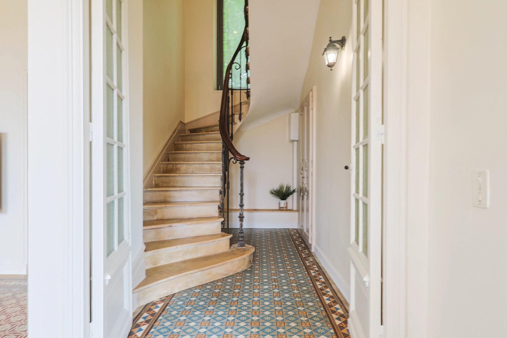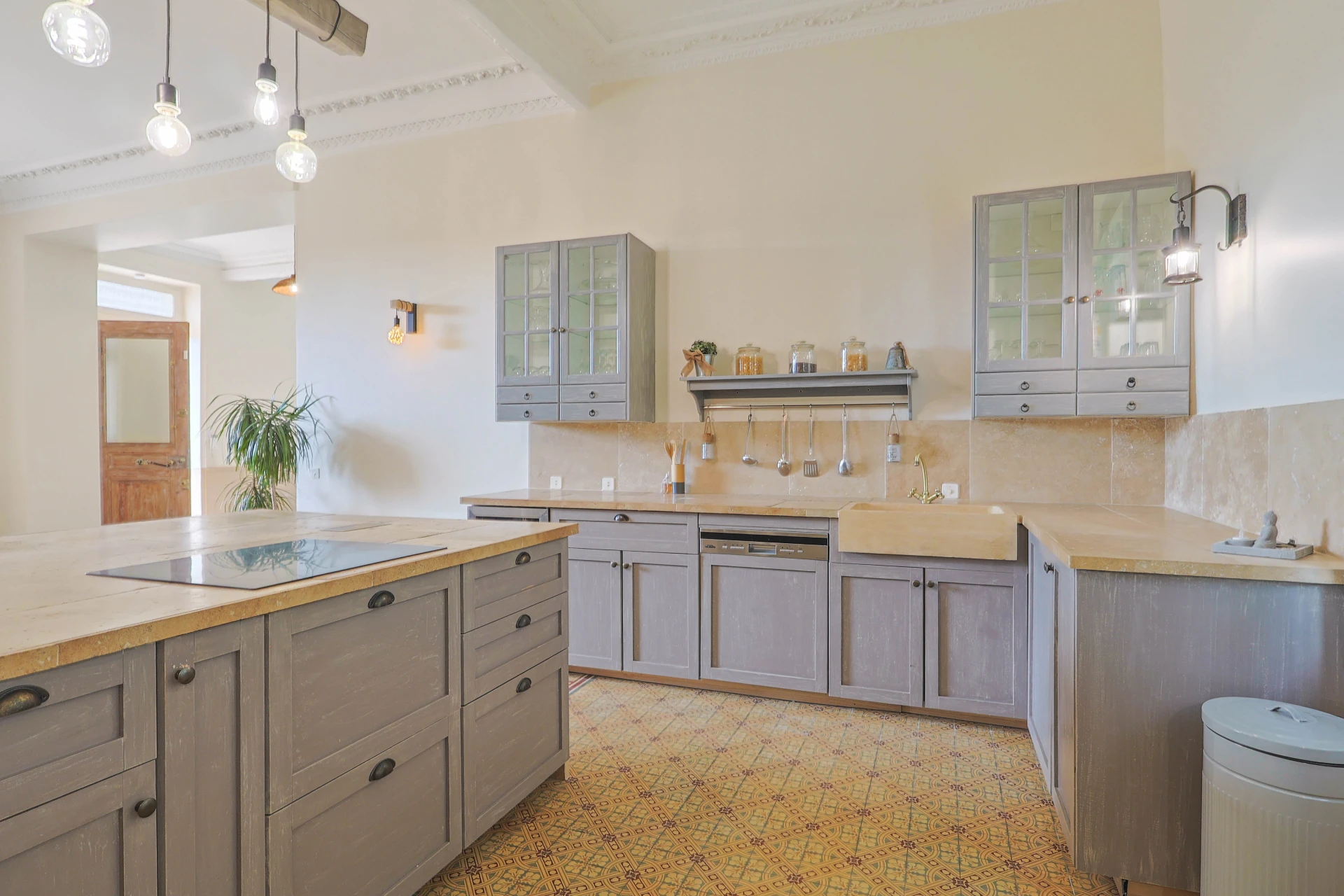 Die großzügigen Räume und die hohe Decke verleihen dem Haus ein wunderbares Gefühl von Weite und Helligkeit. Im Erdgeschoss befinden sich ein gemütliches Wohnzimmer mit einem wunderschönen, antiken Kamin sowie eine große, offene und voll ausgestattete Küche mit direktem Zugang zum Esstisch. Ebenfalls im Erdgeschoss befindet sich ein erstes Duschbad. Die Schlafzimmer liegen alle im Obergeschoss und sind mit Klimaanlage für optimalen Komfort ausgestattet. Dort befindet sich auch ein zweites Duschbad.