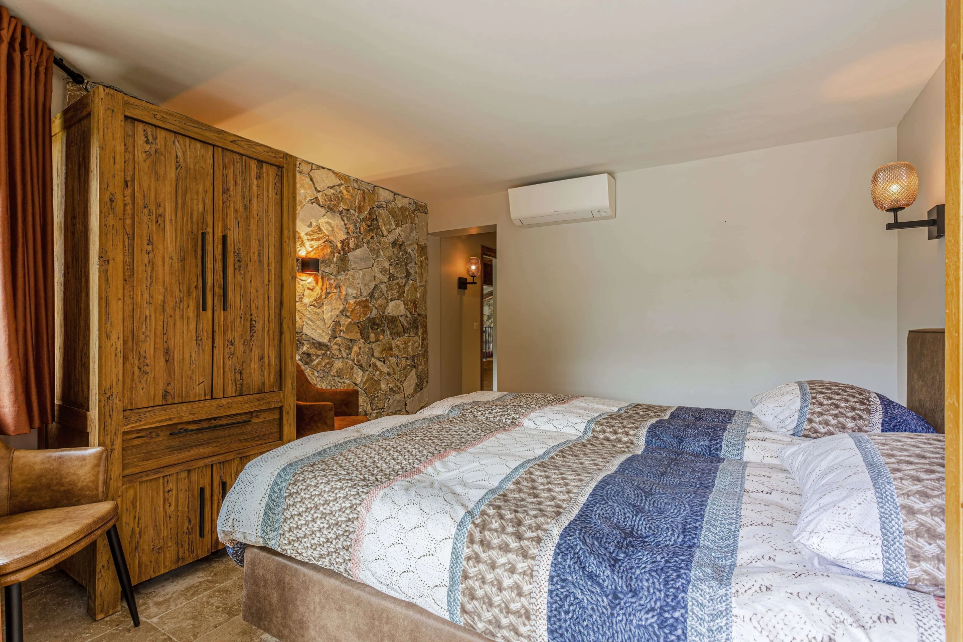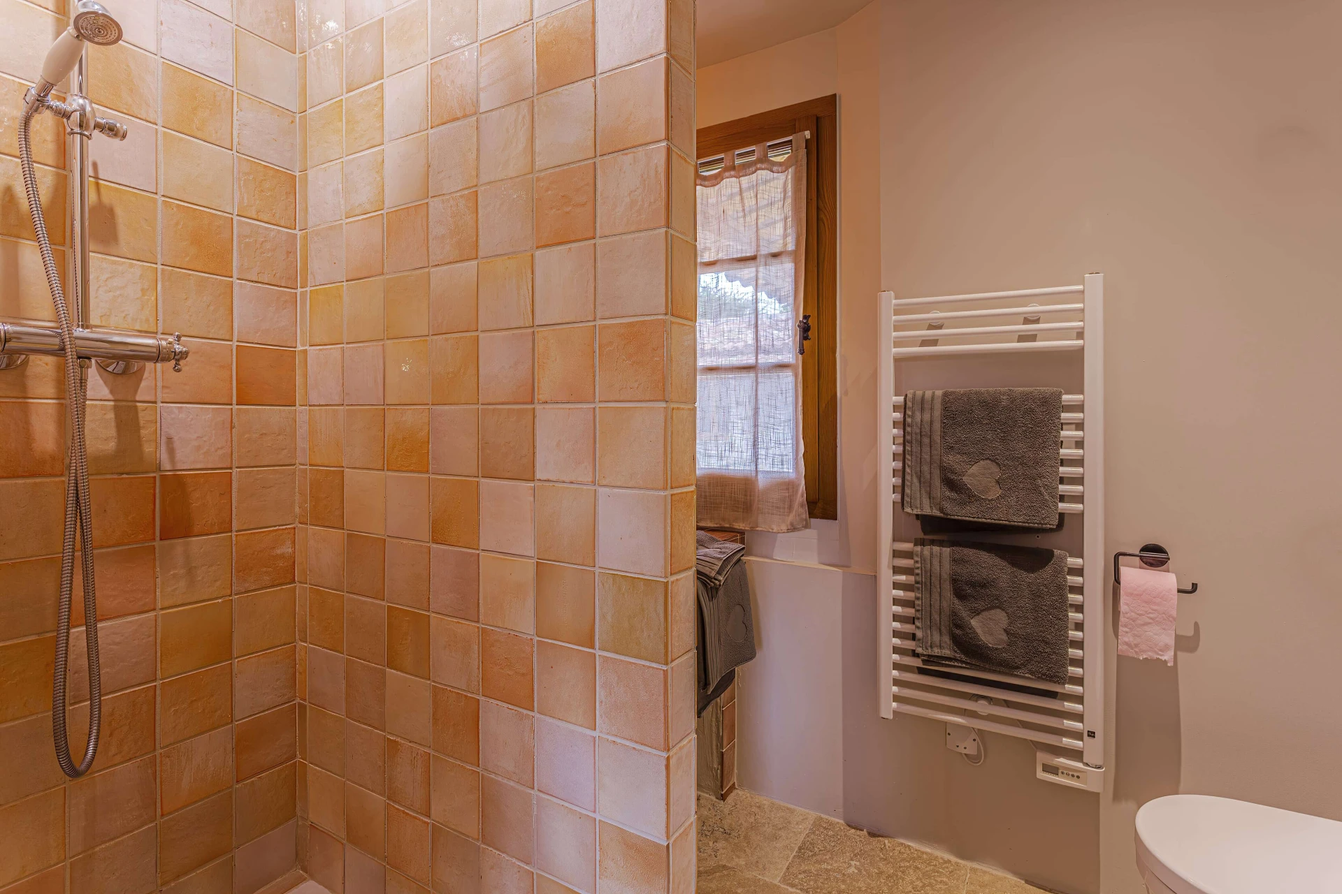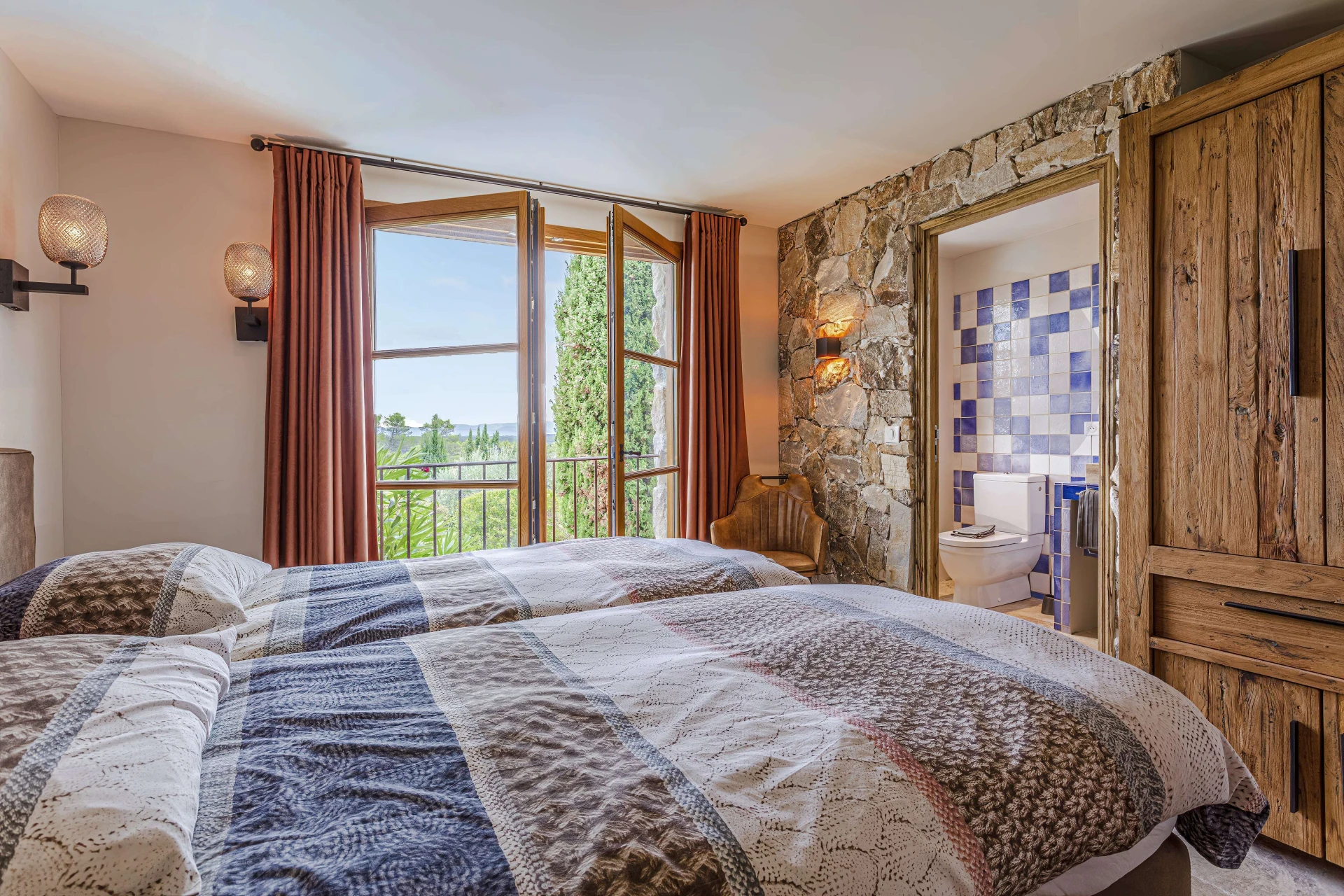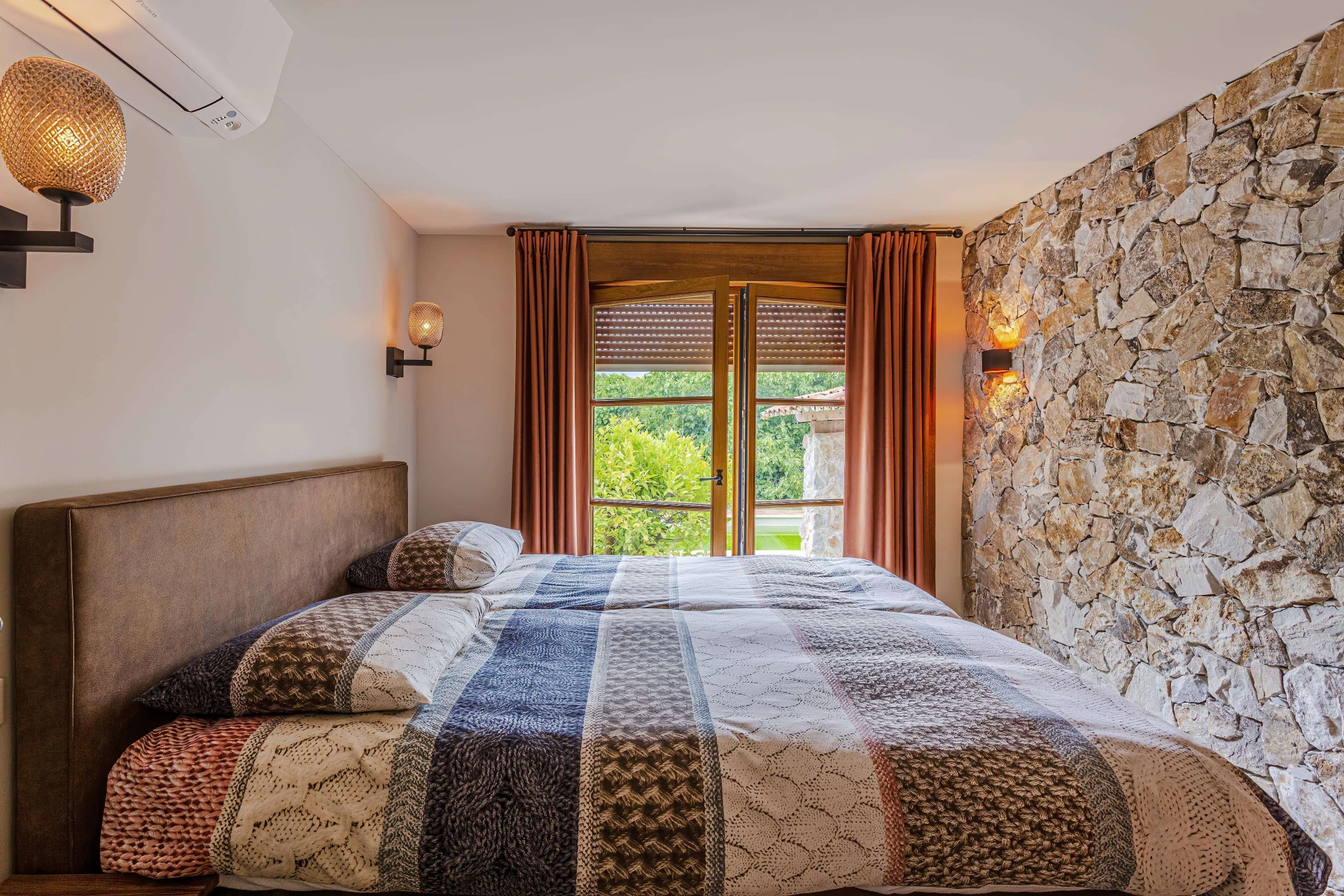 The interior has been modernly furnished while retaining authentic elements such as natural stone and beautiful wooden ceiling beams. The living room has an LCD television with Apple TV that gives access to YouTube, Netflix and all networks of all countries. At the open living room you will find the spacious dining room with kitchen. This is a beautiful space with large sliding doors to the covered terrace. There is a long wooden dining table and by extension you come to the modern equipped kitchen with gas stove with two dishwashers and two refrigerators.