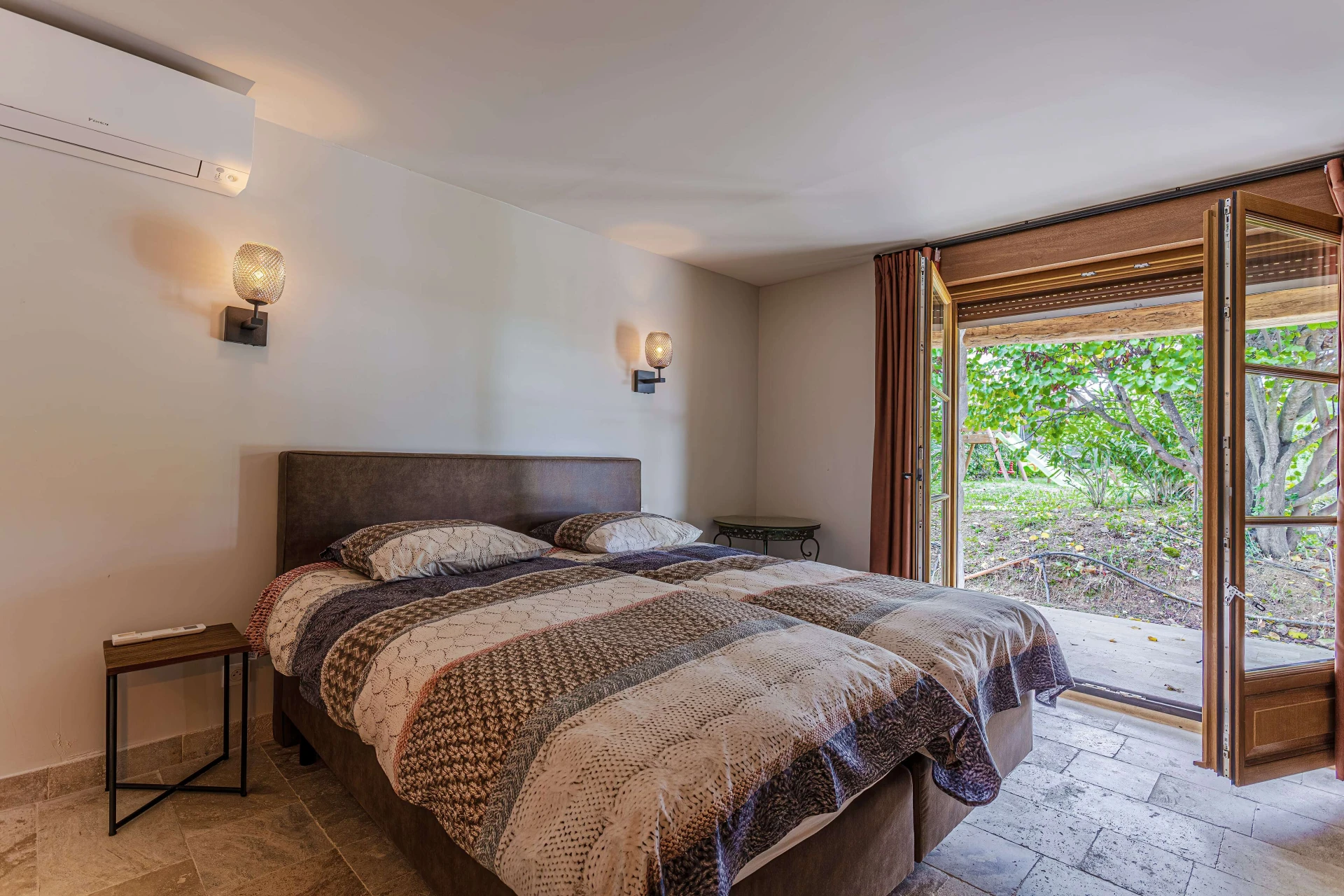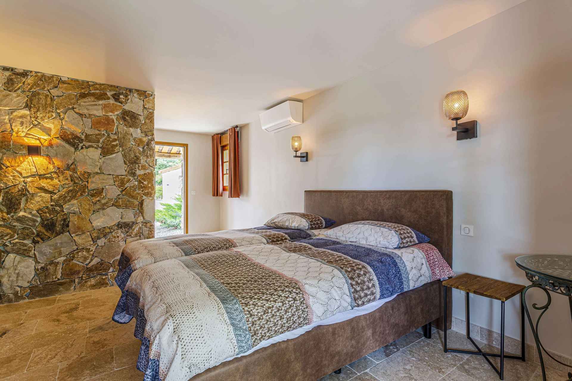 This holiday home in Lorgues has five pleasant and comfortable en-suite bedrooms. One of the bedrooms is located in the attached annex and has its own entrance and terrace that overlooks the pool and garden.