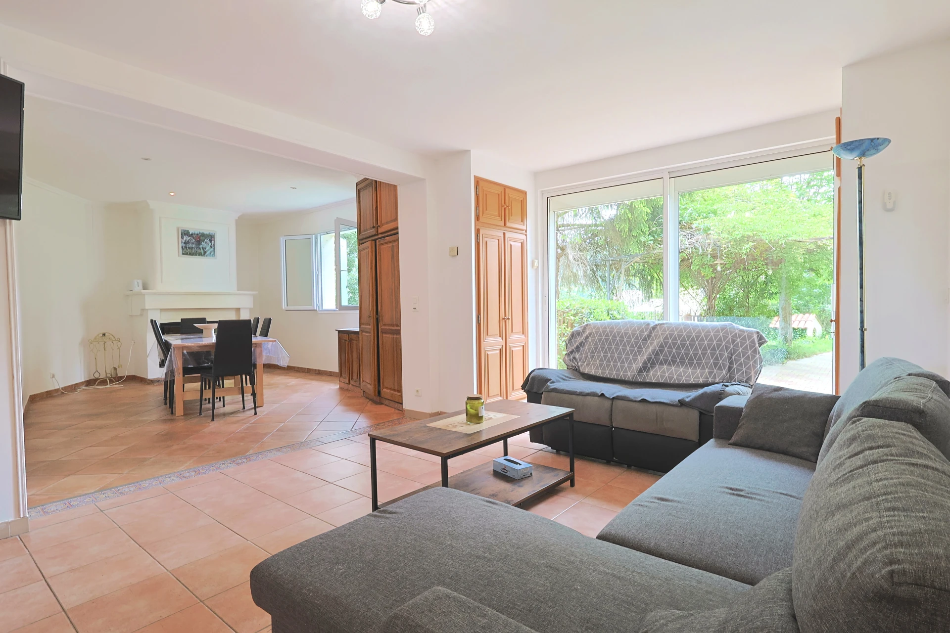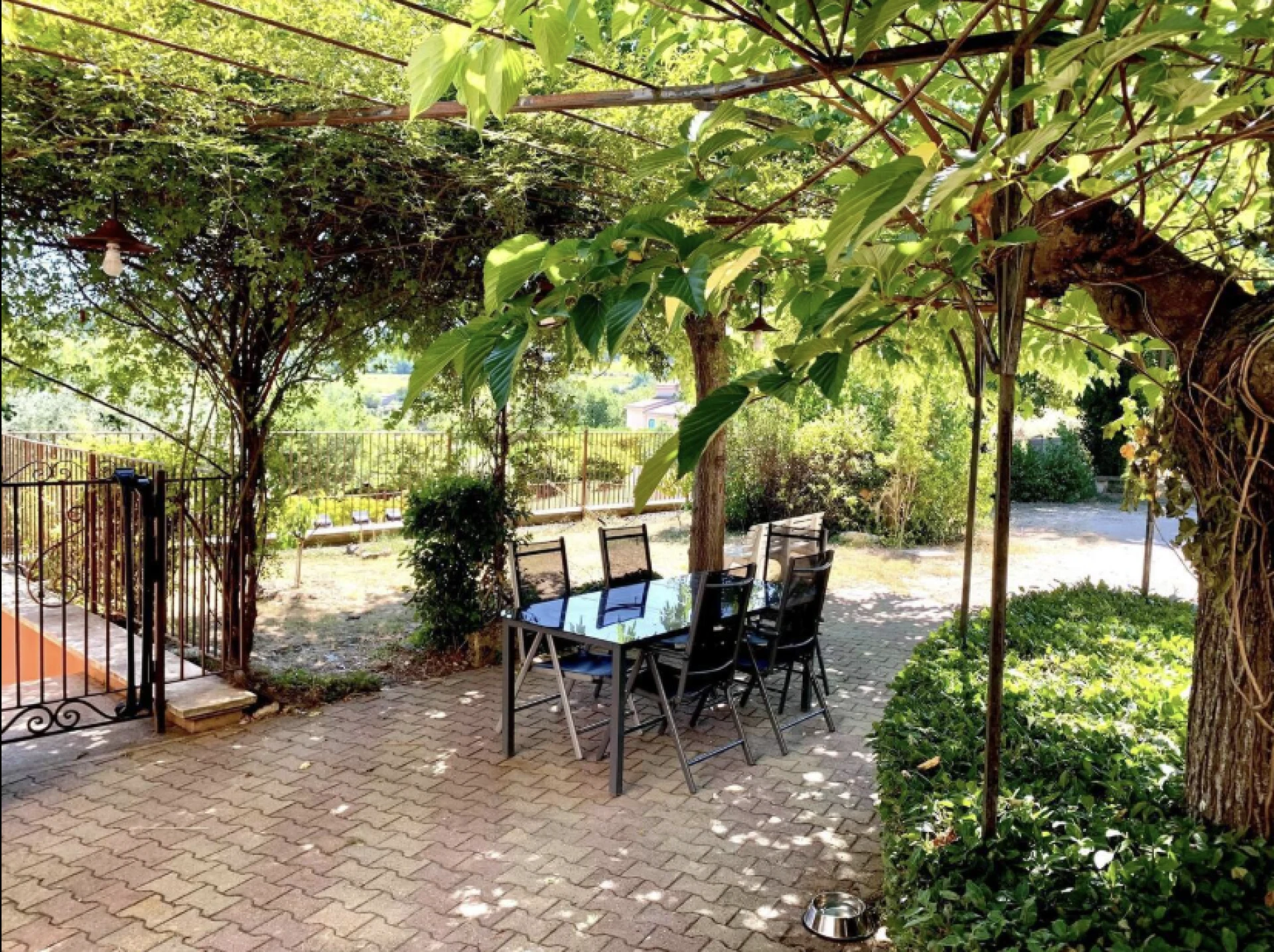 Das Außenleben ist das absolute Highlight dieses Hauses. Das große, eingezäunte Grundstück bietet viel Privatsphäre und Ruhe. Auf der geräumigen Terrasse (überdacht und offen) stehen bequeme Gartenmöbel, Liegestühle und Sonnenschirme bereit – ideal zum Sonnenbaden oder für gemütliche Abende unter den Sternen. Der private Pool (13 × 6 m, Tiefe 2,3 m) ist mit Beleuchtung und elektrischer Abdeckung ausgestattet. Für Liebhaber gibt es außerdem eine Plancha und einen Grill.