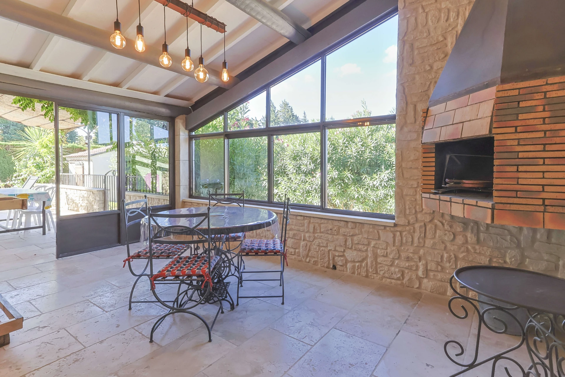 Im Außenbereich können Sie einen schönen privaten Pool in „L“-Form genießen, der mit einem 30 cm tiefen Planschbecken für Kinder. Angrenzend an das Haus befindet sich eine schöne überdachte Terrasse mit stilvollen Gartenmöbeln und einem gemauerten Grill. Perfekt für gesellige Momente sowohl tagsüber als auch abends! Für Groß und Klein gibt es auch einen Tischtennistisch, eine Boulebahn und ein Fußballfeld auf der Rückseite des Hauses. Die schönen Palmen und die abendliche Beleuchtung schaffen eine einzigartige Atmosphäre.