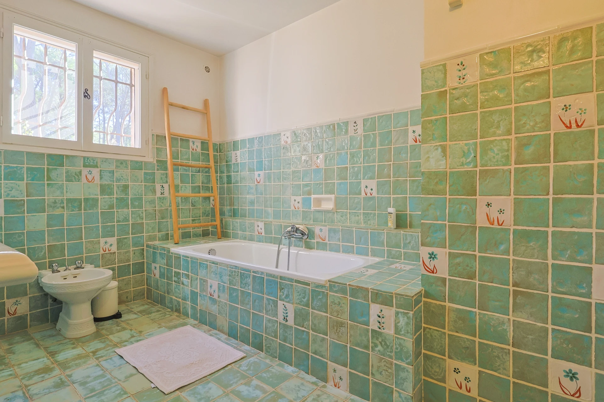 Der Garten ist ein wahres Paradies mit blühenden Sträuchern, Steinmauern und einem privaten, beleuchteten Salzwasser-Freiflächenpool mit eingebauter Sitzecke (10x3m mit römischer Treppe und Alarmanlage), der zu einem erfrischenden Bad einlädt. Genießen Sie lange Sommerabende auf der Terrasse, umhüllt vom Duft des Jasmins und dem natürlichen Schatten einer üppigen Glyzinie.