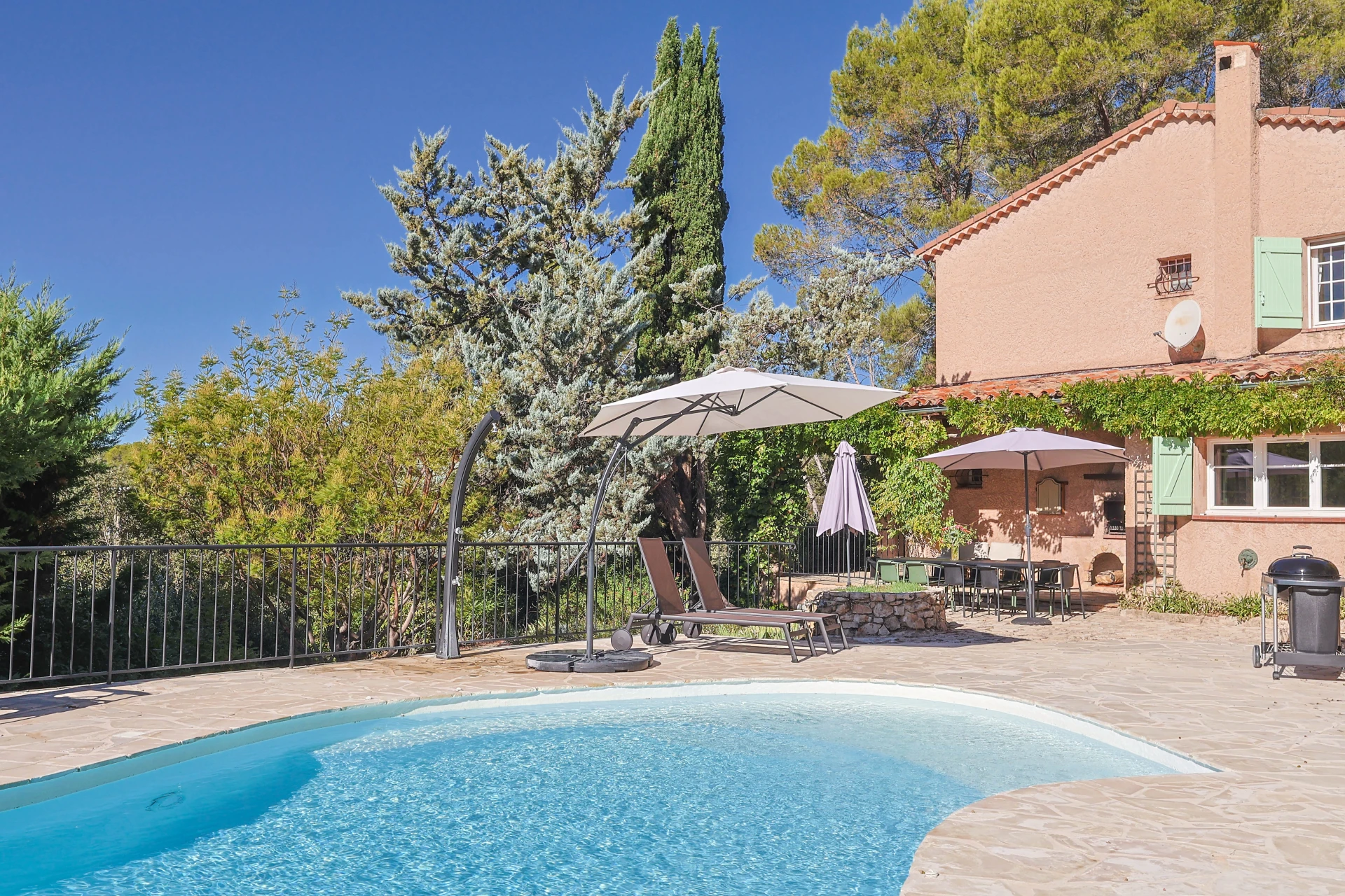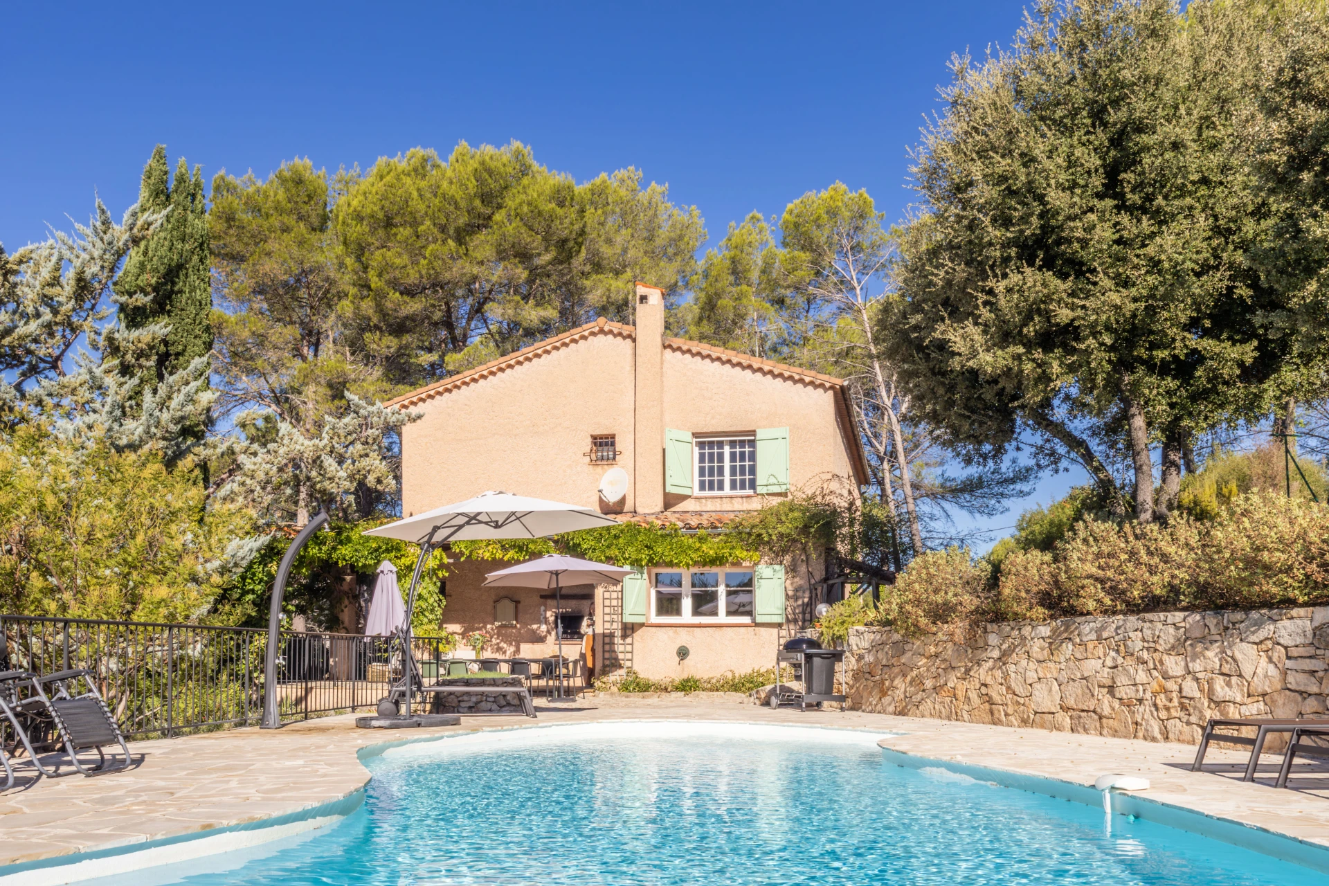 Willkommen in der Villa Anamour, einem authentischen Ferienhaus für 8 Personen mit privatem Pool in Draguignan (Provence, Südfrankreich). Dieses Ferienhaus liegt versteckt auf einem schönen bewaldeten Grundstück von 5400 m². Hier genießen Sie eine Oase der Ruhe und Natur, während das Zentrum von Draguignan, die Autobahnen und der Bahnhof nur wenige Autominuten entfernt sind.
