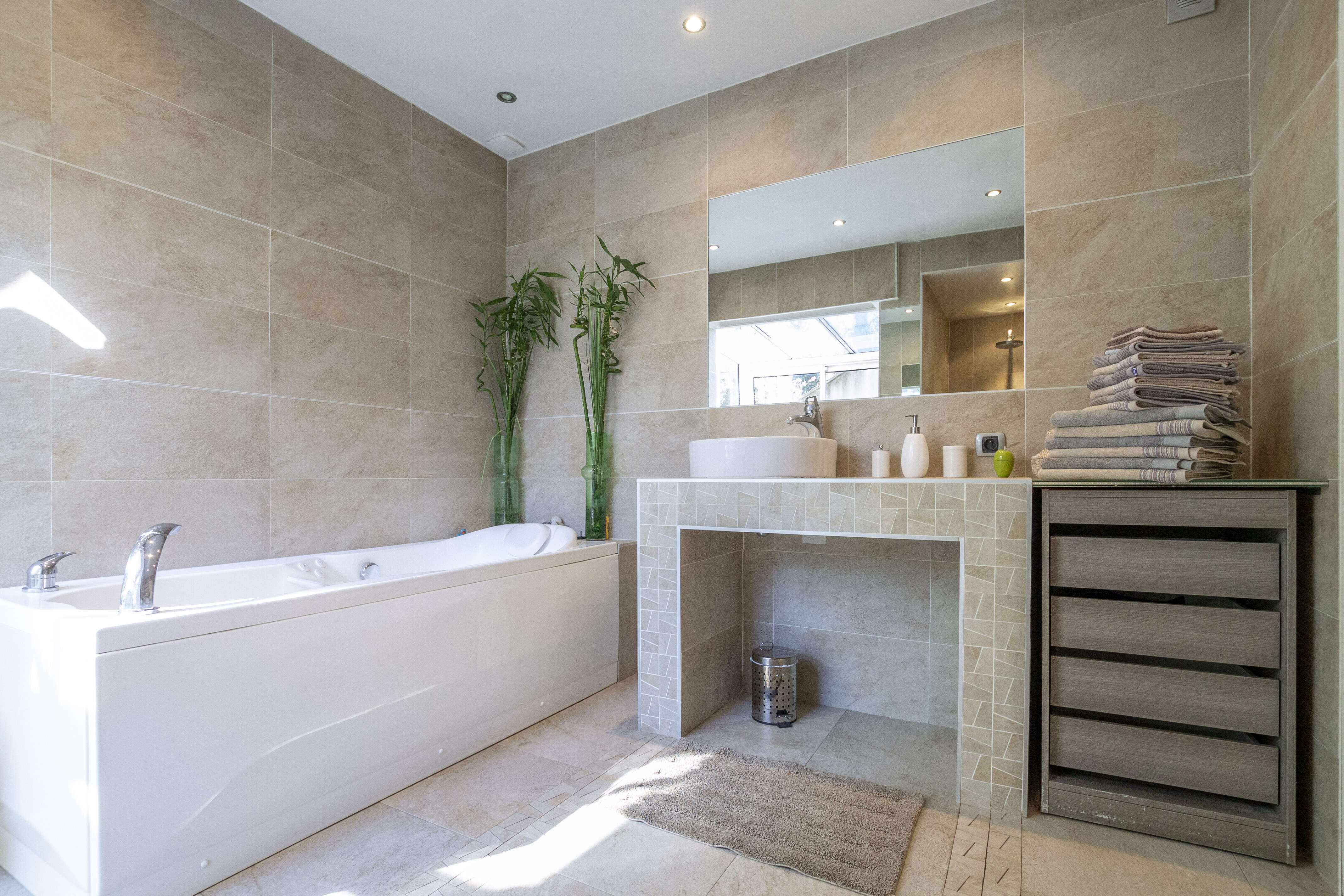 The garden is beautiful and well-tended. The garden furniture is lovely, the dining table and chairs on the terrace with its TV, grill and barbecue, as well as the long chairs by the swimming pool (10x5m - depth from 1metres to 2metres) are beautiful and decorative. The garden is well planted with many flowers making it all the more attractive.