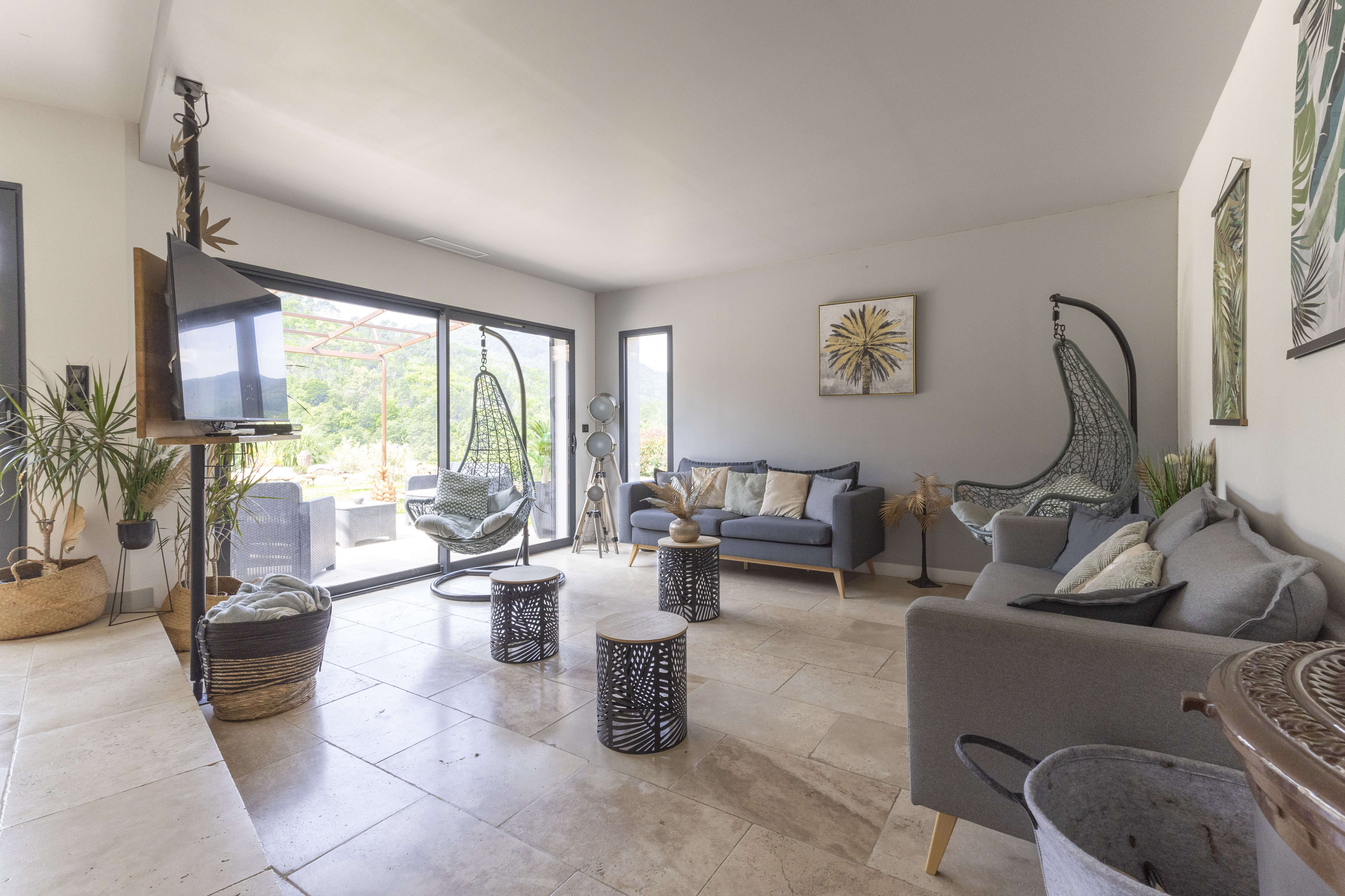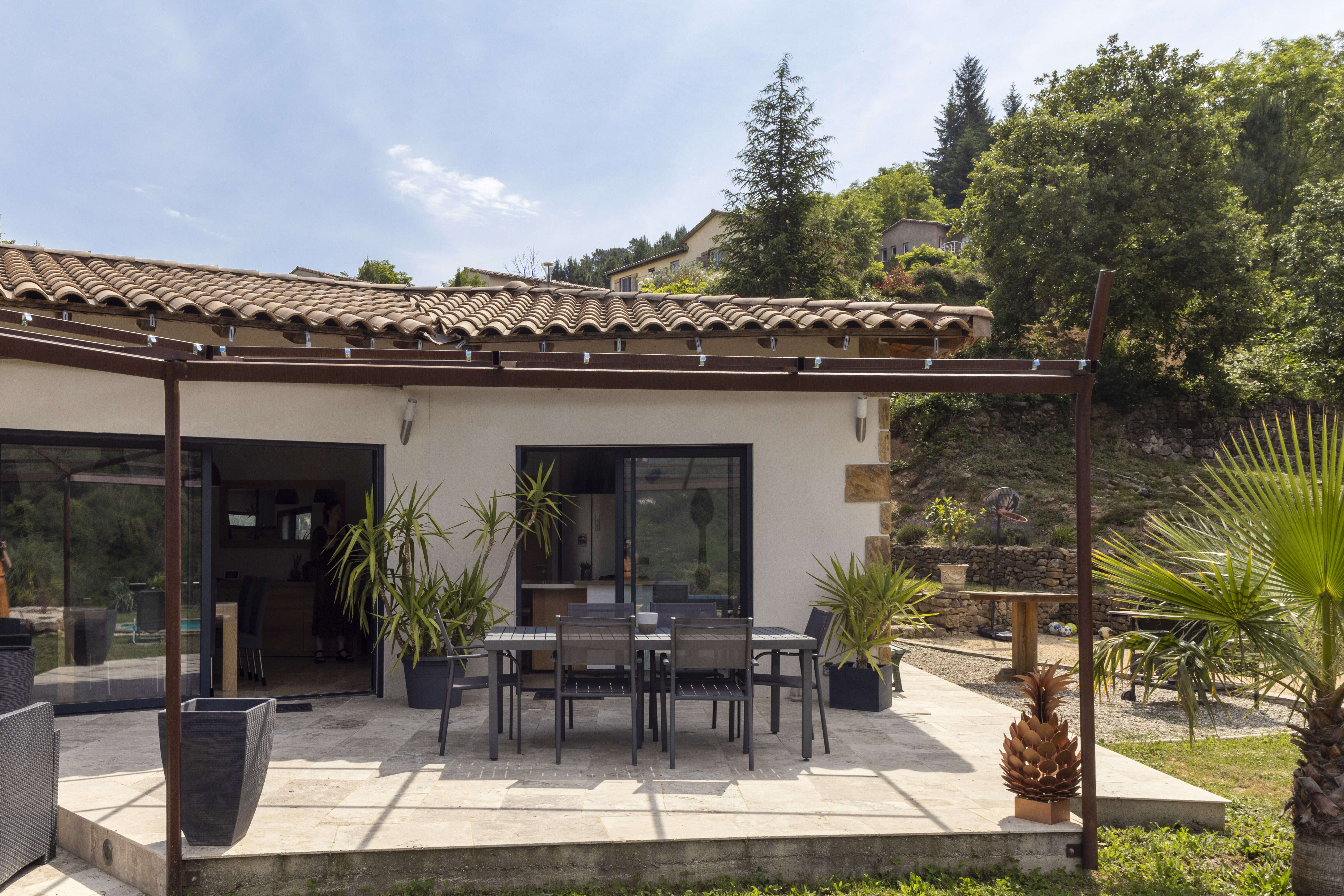 Das Ferienhaus bietet allen Komfort und die Modernität eines Neubaus. Mit seinem üppigen Garten von 4600m2 und dem atemberaubenden Blick auf die Cevennen-Berge ist das Haus ein wahres Friedensparadies.