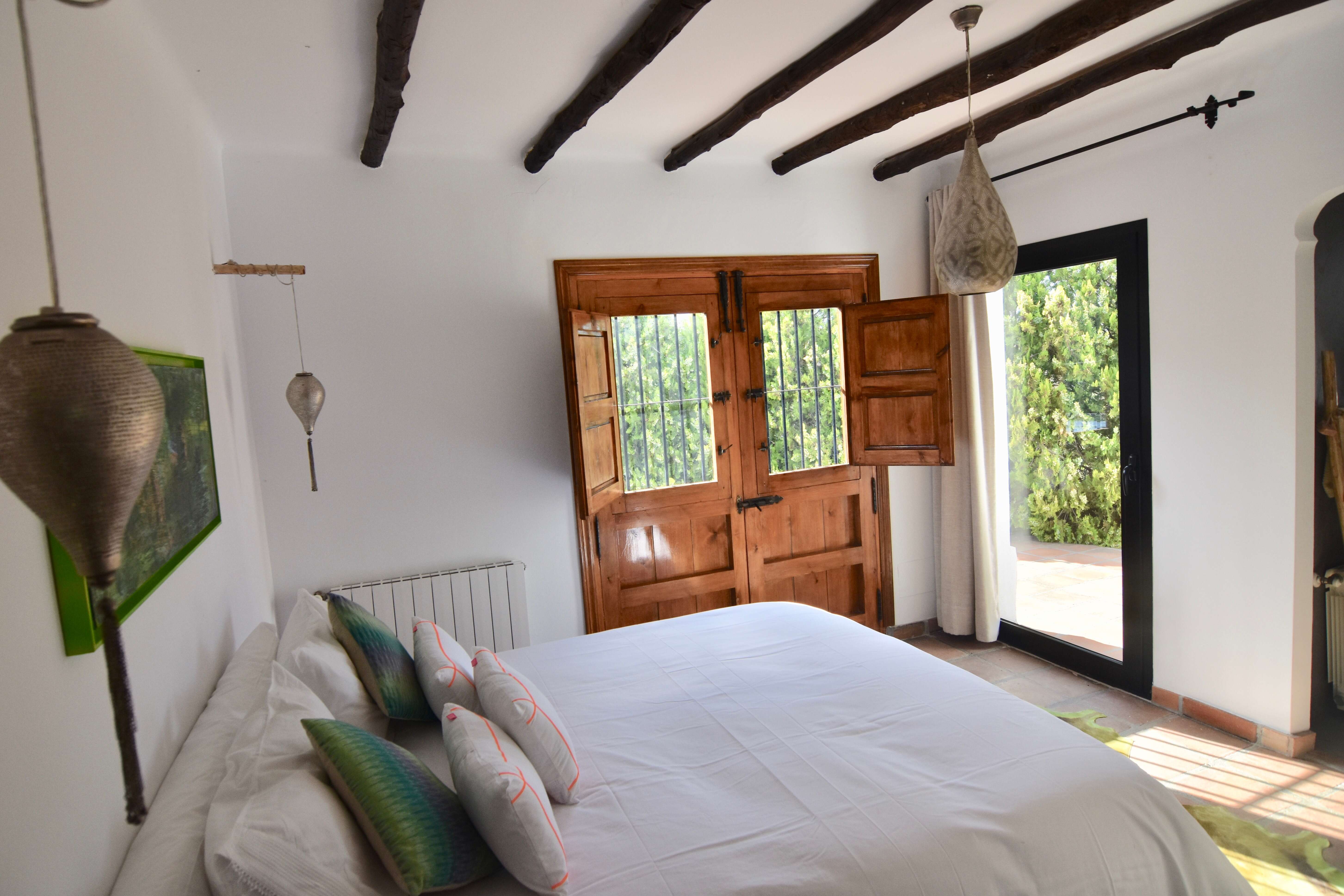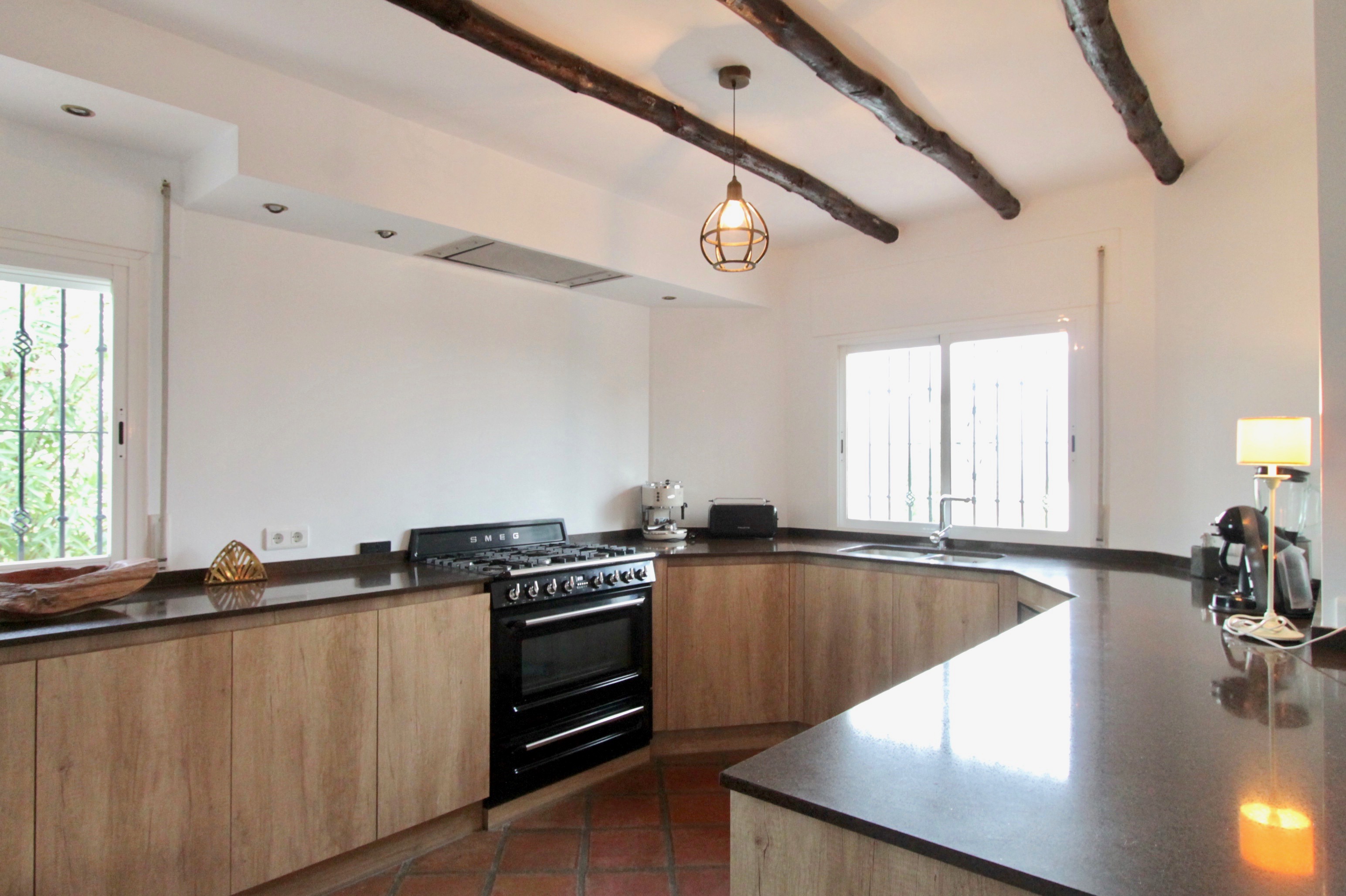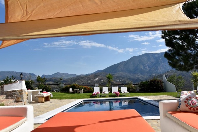 La Corale is a true jewel of a holiday house, located in the village of Vinuela (Costa del Sol) and overlooking the spectacular mountain chain of La Maroma. Here, the Sierra Nevada is on display in front of you. The villa is situated above an olive orchard. Below is a dam, turquoise in summer, emerald in winter. Outdoors is like a Wonderland: the delightful heated swimming pool (8x4m), the flower-filled garden, the trendy lounge, the lovely deck chairs, the tree-house and play area (football field, sandbox,…). The view of the sierra is all around, without a neighbour in sight. Sun terraces all around the house. The garden has a “tree-house”, which is a great adventure for children where they can run and play. But it also a place where you can meditate or enjoy a chat or a lovely glass of wine. The interior is fitted as a dressed-up diva with all the luxury facilities, thanks to a very recent renovation. However, the owners have managed to keep its authentic character and the decoration is lovely, with a mix of trendy and Andalusian-Moorish style. La Corale is a fantastic holiday house in the Axarquia area, in the deep greenery of the Andalusian mountains, with the sea so close you can smell its scent. Very luxurious, in a world of its own and tastefully fitted.