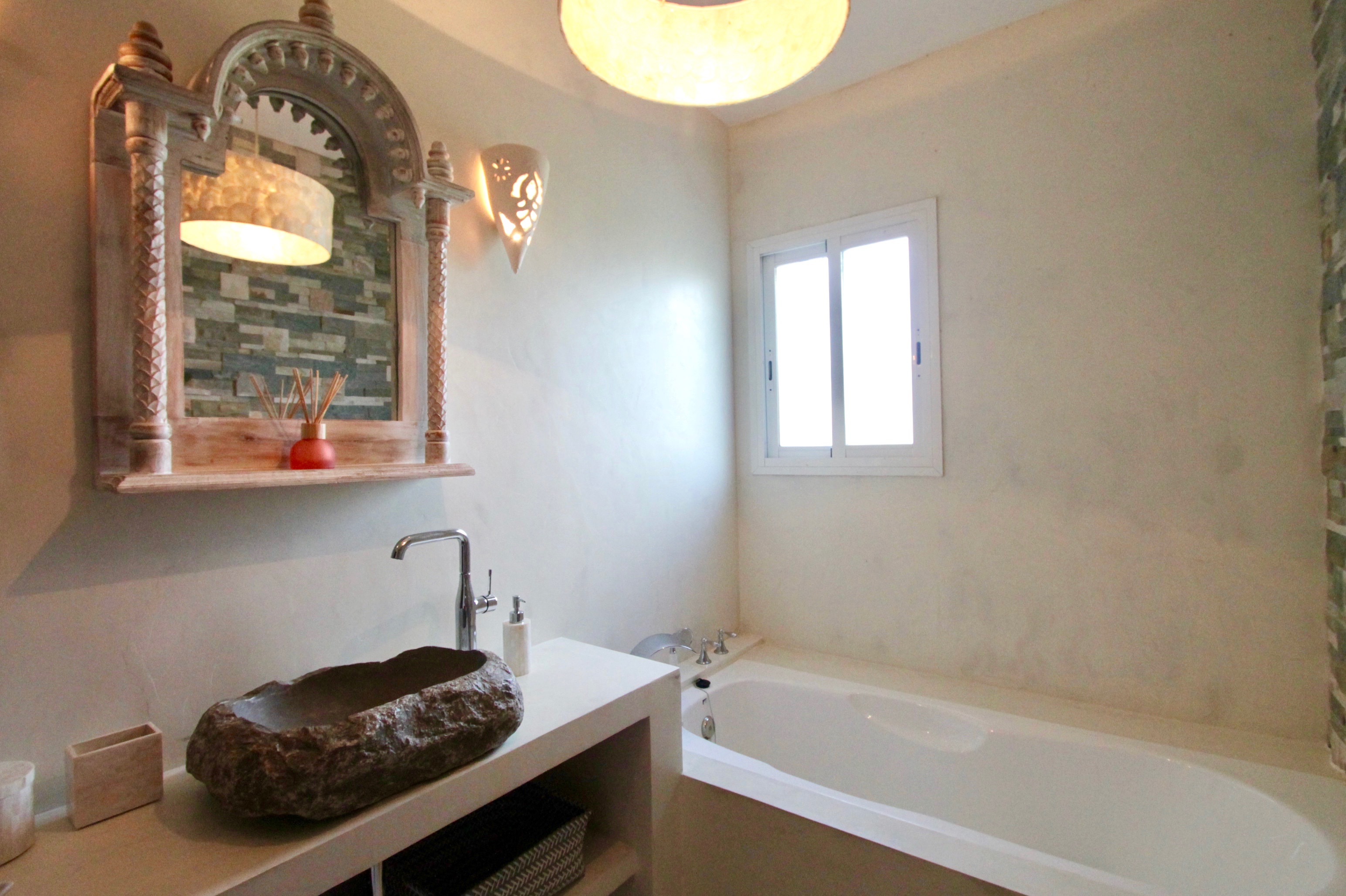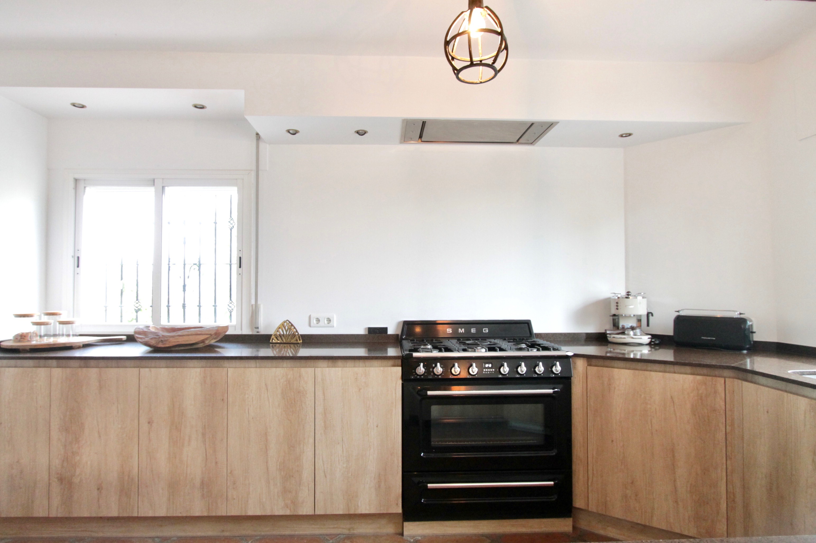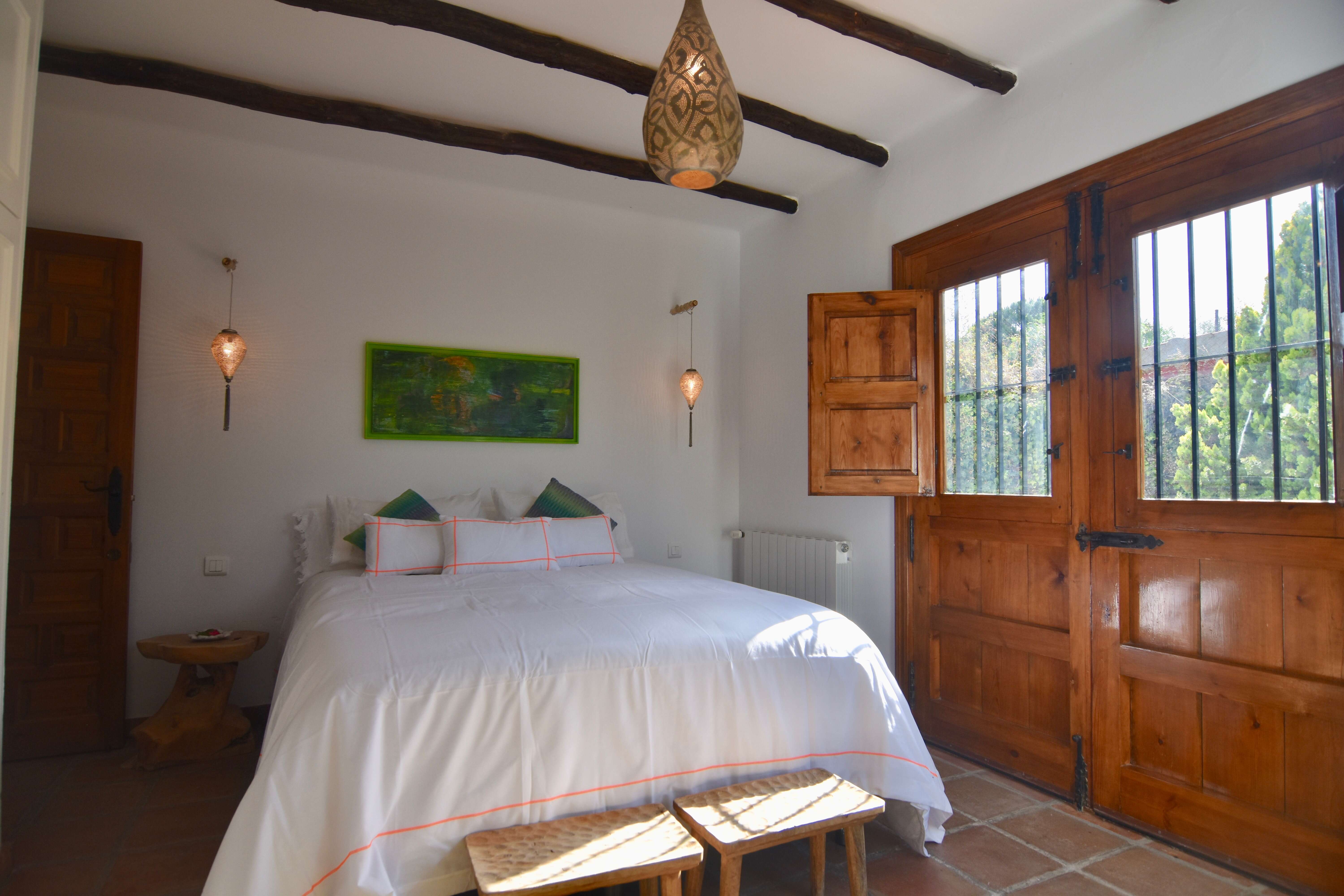 La Corale is a true jewel of a holiday house, located in the village of Vinuela (Costa del Sol) and overlooking the spectacular mountain chain of La Maroma. Here, the Sierra Nevada is on display in front of you. The villa is situated above an olive orchard. Below is a dam, turquoise in summer, emerald in winter. Outdoors is like a Wonderland: the delightful heated swimming pool (8x4m), the flower-filled garden, the trendy lounge, the lovely deck chairs, the tree-house and play area (football field, sandbox,…). The view of the sierra is all around, without a neighbour in sight. Sun terraces all around the house. The garden has a “tree-house”, which is a great adventure for children where they can run and play. But it also a place where you can meditate or enjoy a chat or a lovely glass of wine. The interior is fitted as a dressed-up diva with all the luxury facilities, thanks to a very recent renovation. However, the owners have managed to keep its authentic character and the decoration is lovely, with a mix of trendy and Andalusian-Moorish style. La Corale is a fantastic holiday house in the Axarquia area, in the deep greenery of the Andalusian mountains, with the sea so close you can smell its scent. Very luxurious, in a world of its own and tastefully fitted.