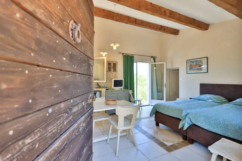 Das weitläufige 4.000 m² große Grundstück umfasst einen großen privaten Pool (6x13m), der beheizt werden kann, einen schönen Garten mit einem Olivenhain, ein Boulefeld, einen Kinderspielplatz (Trampolin, Schaukeln, Rutsche) und eine Tischtennisplatte.