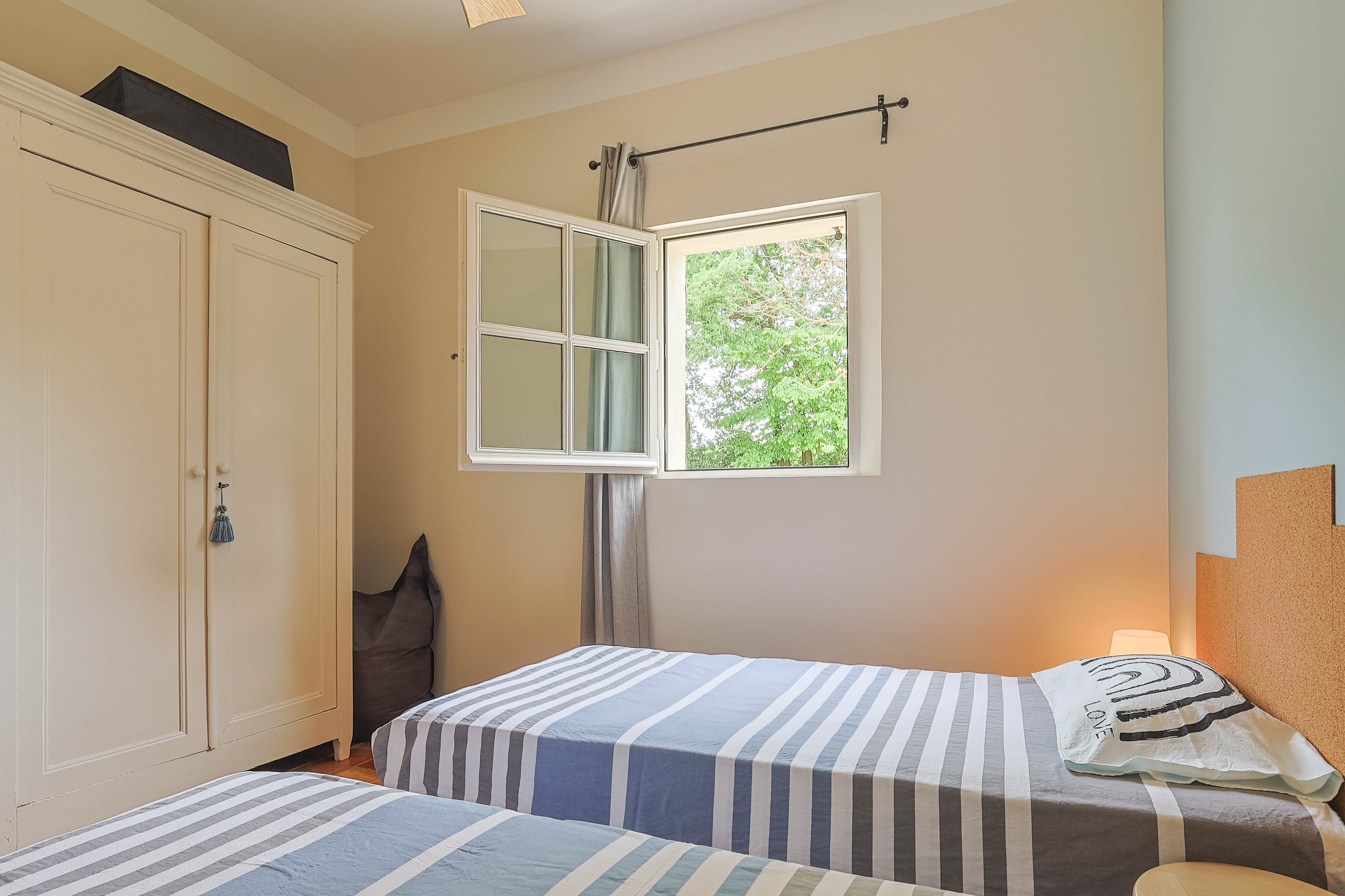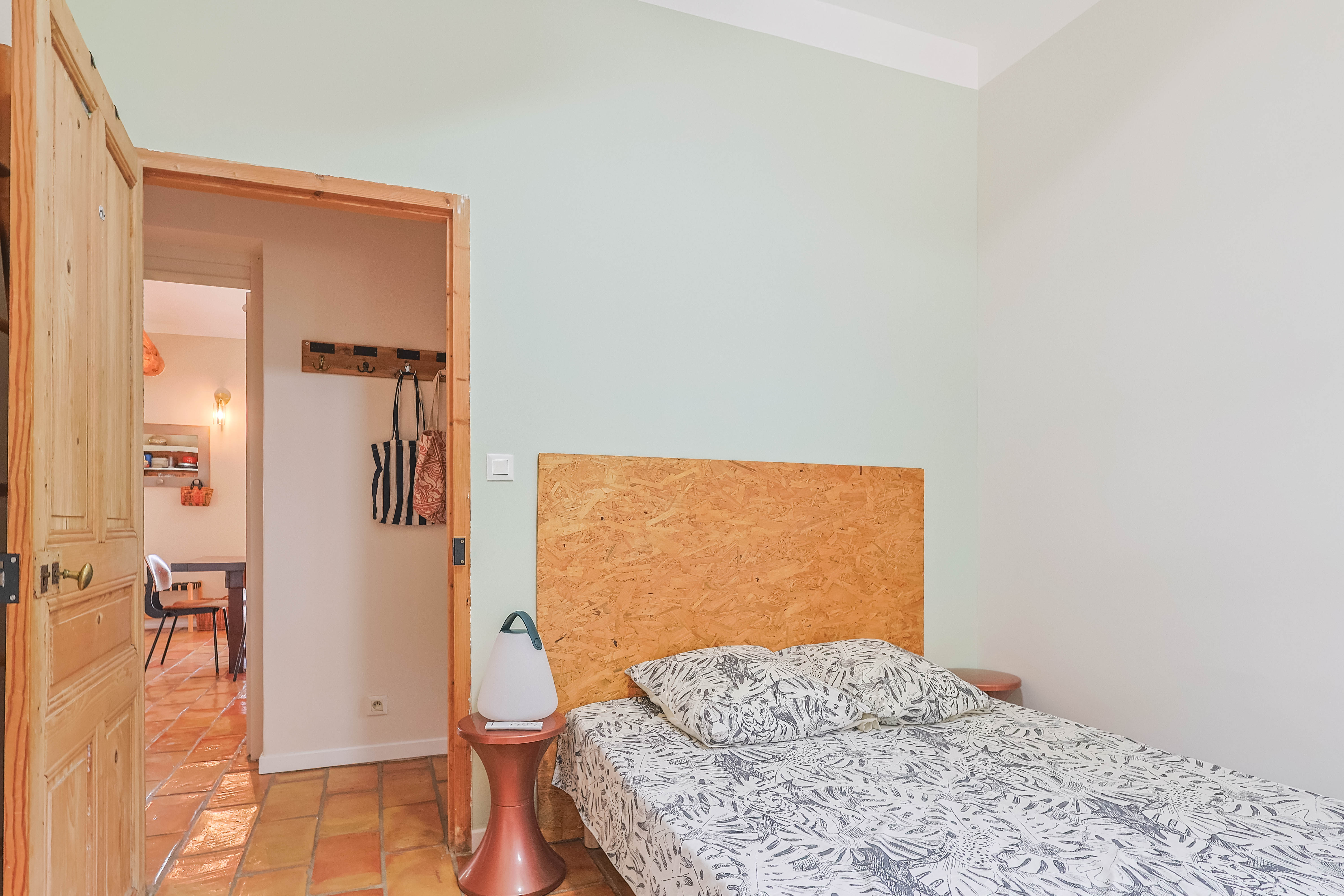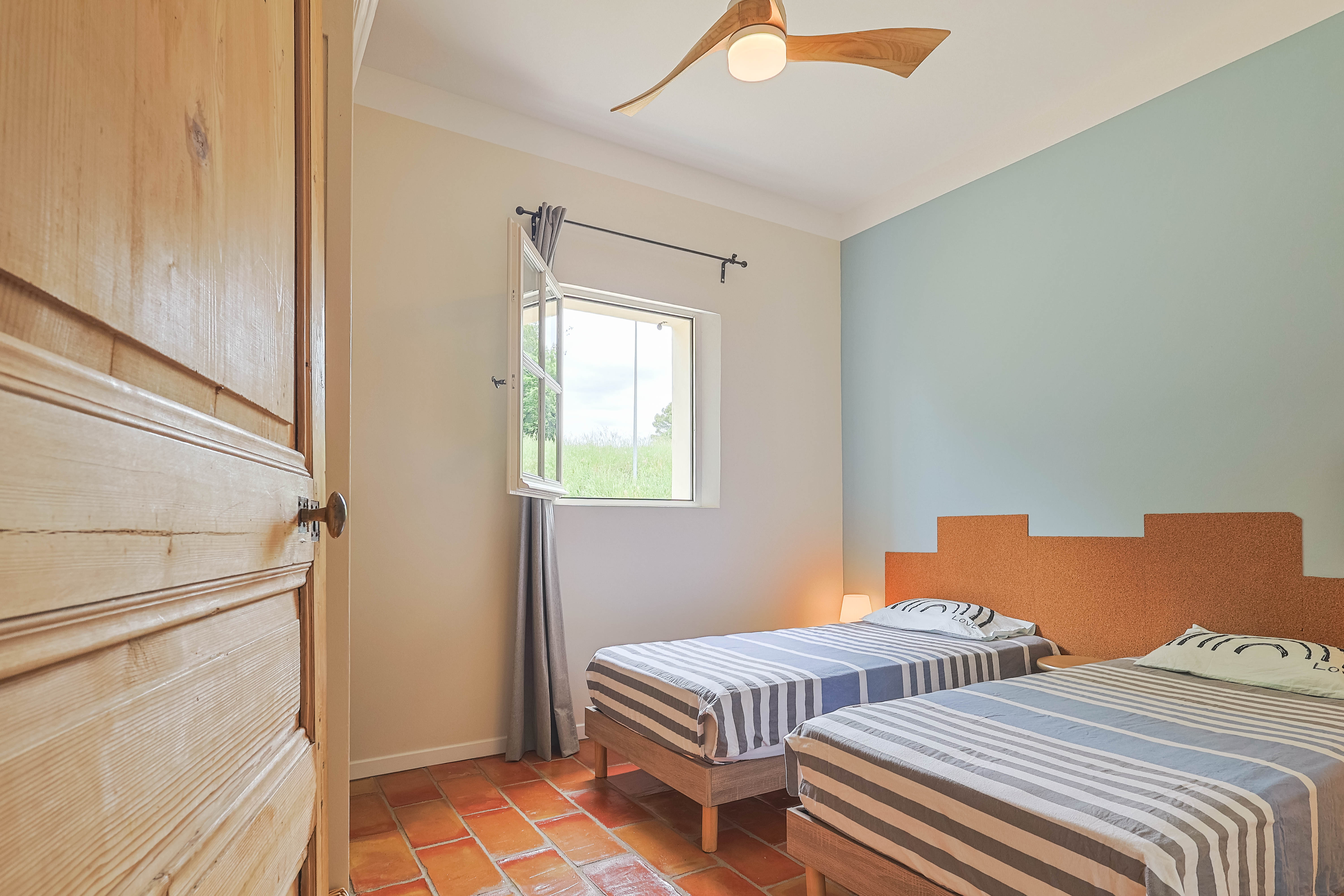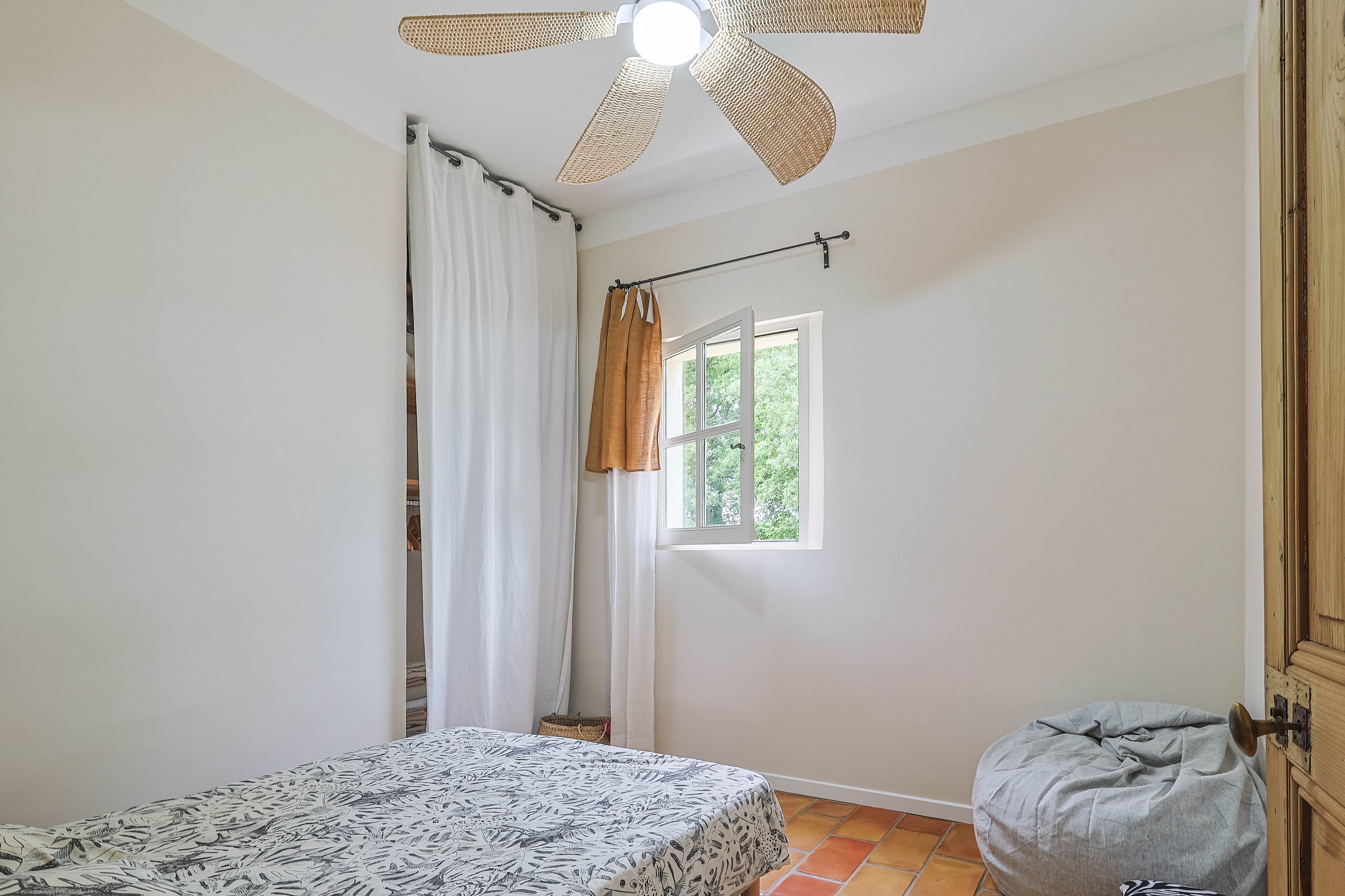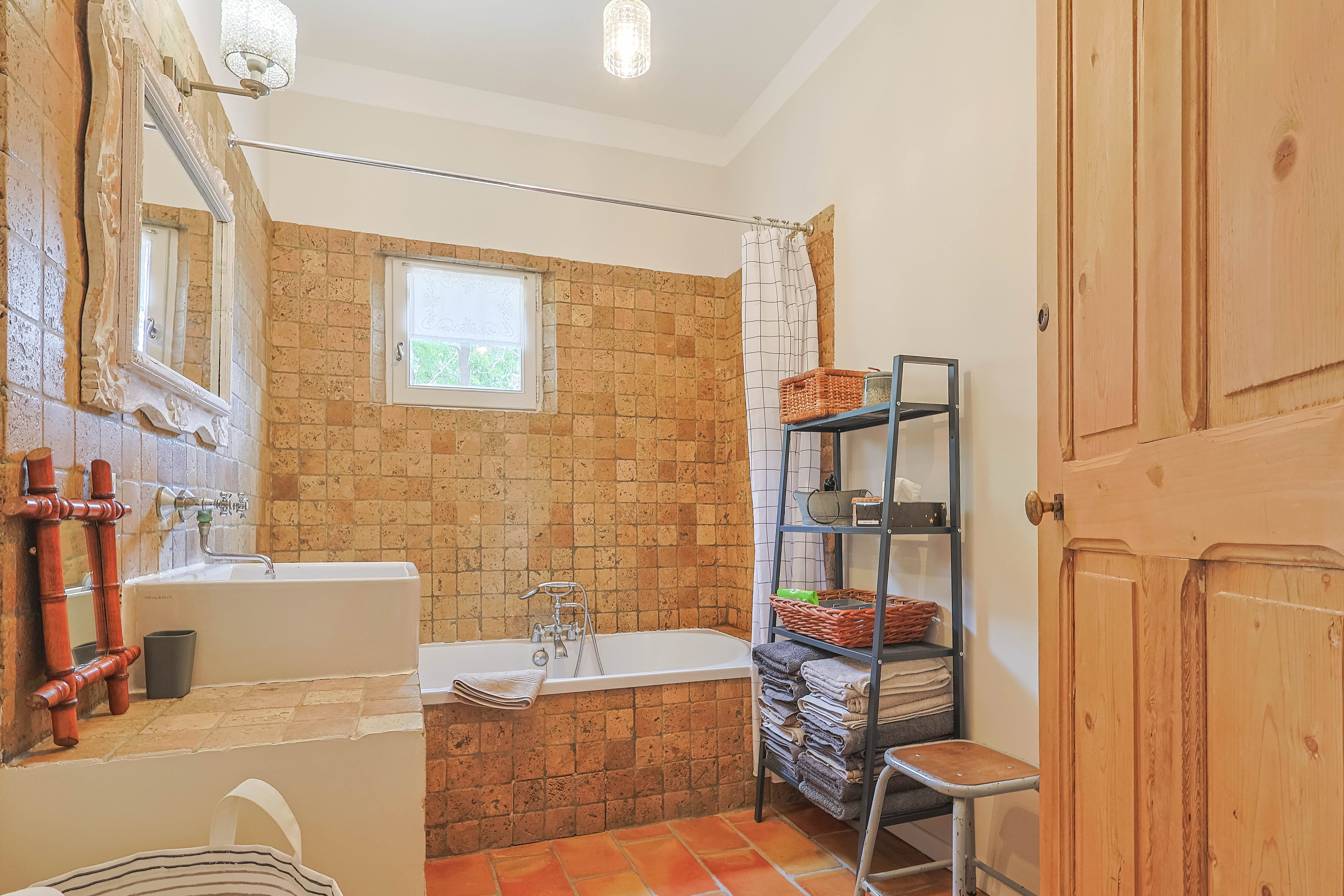 Interieur: Sehr schöner Vintage-Stil Dieses Ferienhaus im Süden Frankreichs verfügt über drei komfortable Schlafzimmer, darunter ein Master-Bedroom mit eigener Dusche. Außerdem gibt es ein zweites Badezimmer, das von den anderen beiden Schlafzimmern geteilt wird. Der Wohnbereich besteht aus einem gemütlichen Wohnzimmer, einem großen Esstisch und einer offenen, voll ausgestatteten Küche. Das Haus wurde mit authentischem Naturstein gebaut und besitzt wunderschöne Holzbalken, die für typisch provenzalischen Charme und eine warme Atmosphäre sorgen. Zudem hält der kühle Steinboden das Haus auch an heißen Sommertagen angenehm frisch.