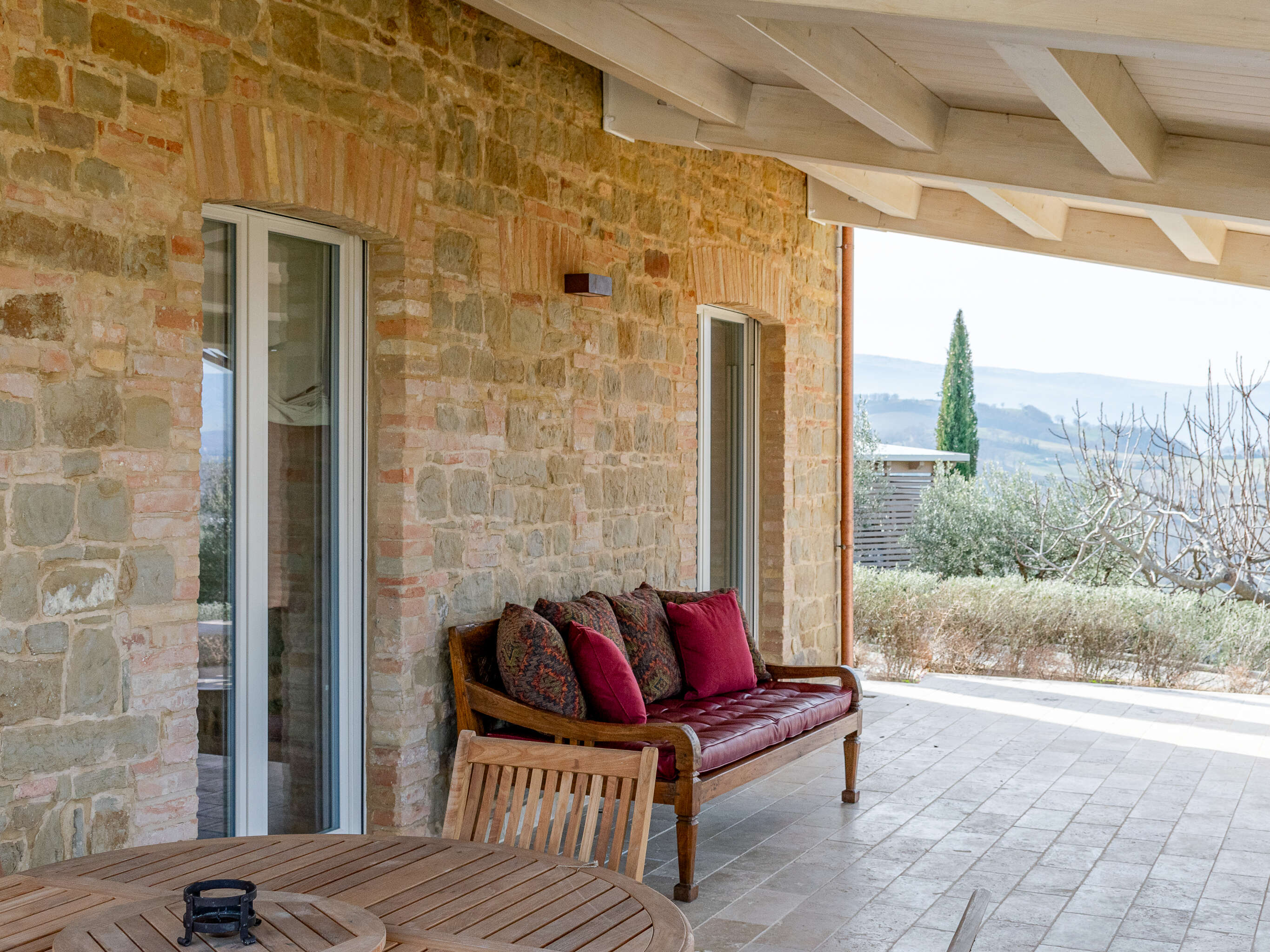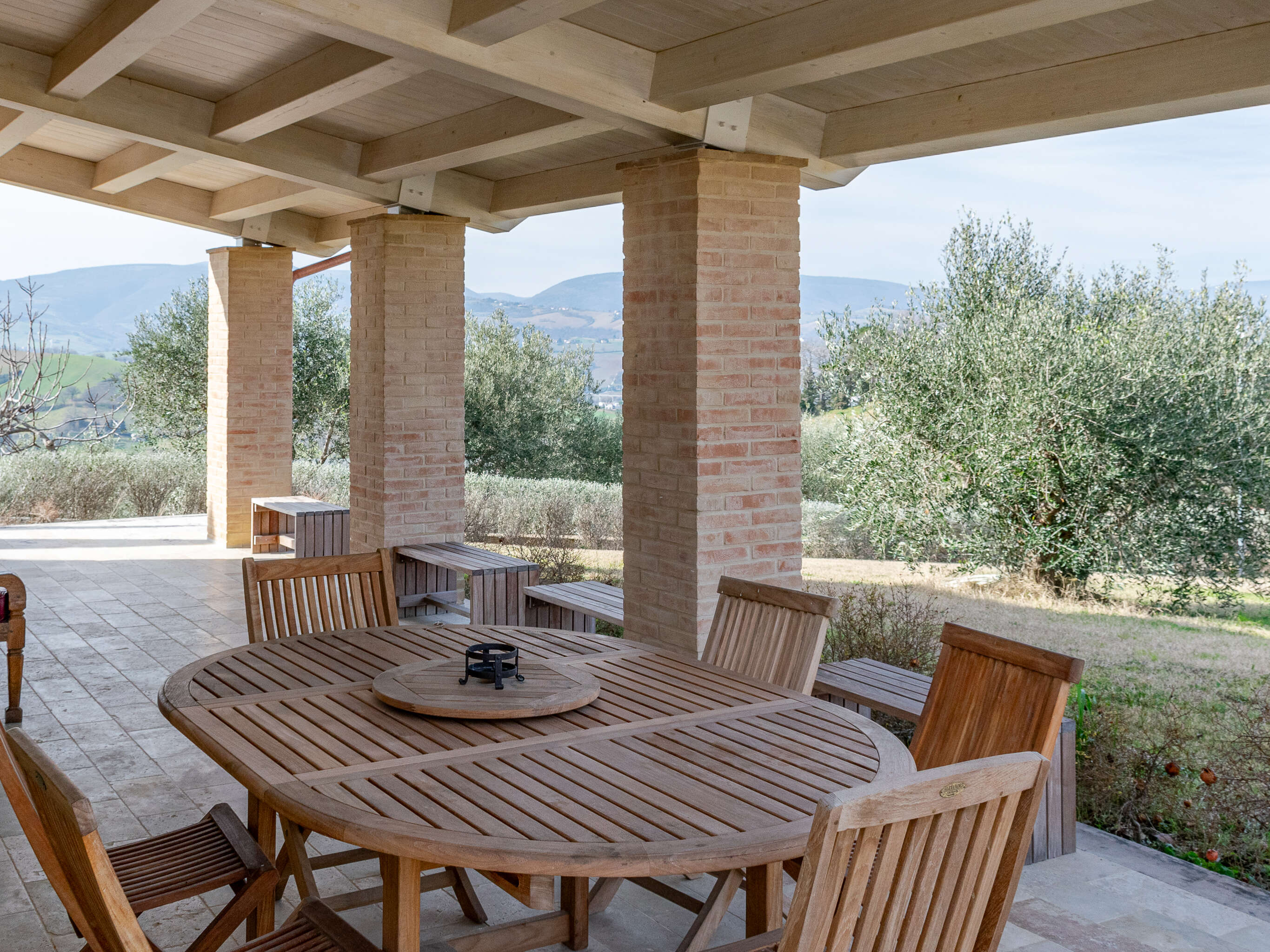 Außenbereich: Wunderschönes Leben im Freien Dieses Ferienhaus in Italien liegt inmitten eines atemberaubenden Panoramablicks auf die sanften Hügel der Marken. Der großzügige Garten bietet eine idyllische Umgebung zur Entspannung, während die üppige Terrasse perfekt für lange Abende im Freien ist. Der Infinity-Pool ist der ideale Ort, um die Umgebung zu genießen und vollkommen abzuschalten.