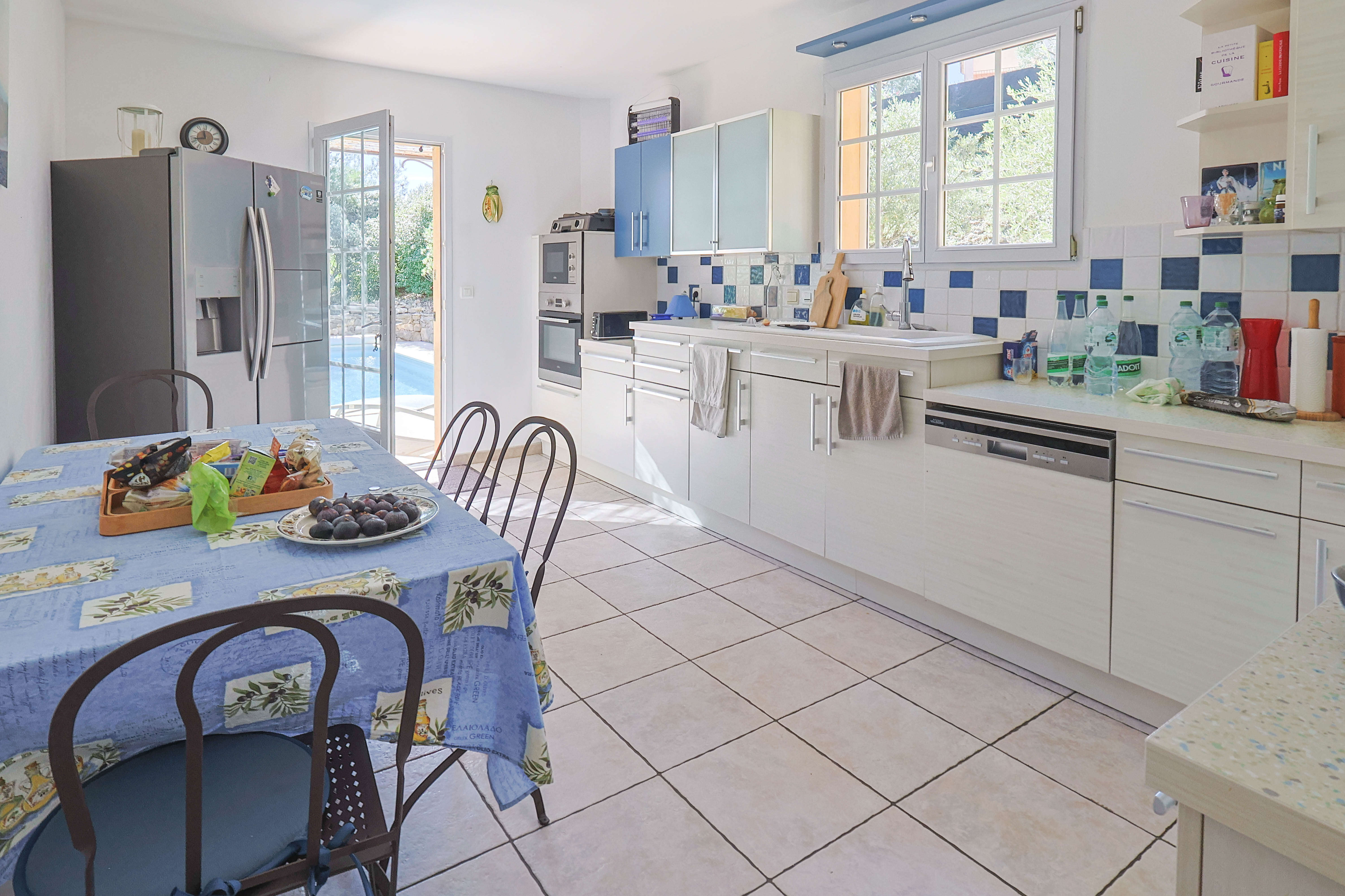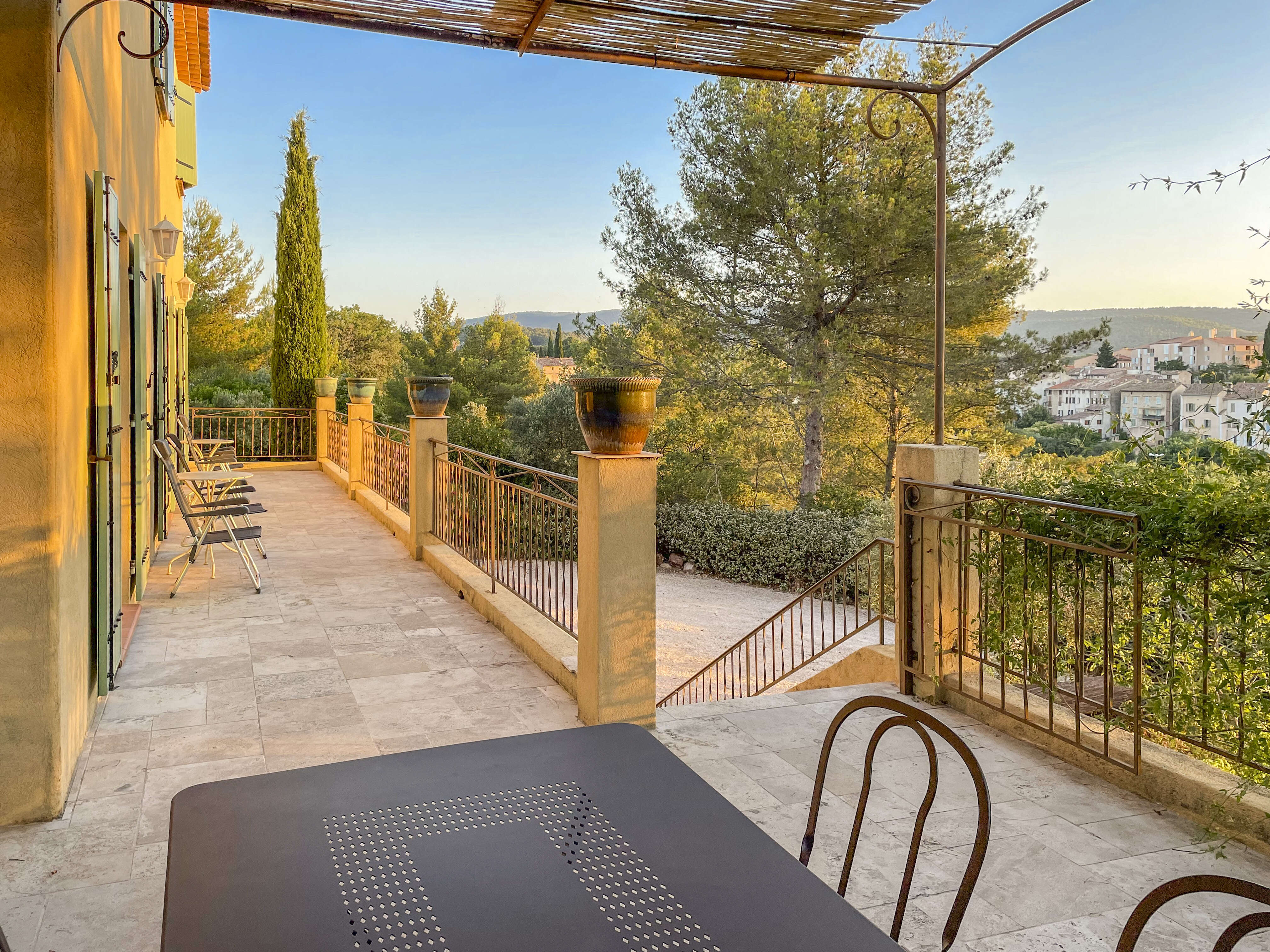 Zugang zum Ferienhaus und zum Pool erfolgt über die großzügige Außentreppe oder durch die Garage. Vendange Tardive ist geschmackvoll eingerichtet und bietet allen notwendigen Komfort. Das Interieur strahlt typisch provenzalischen Charme aus und ist geschickt mit modernen und leichten Möbeln kombiniert. Jedes Material im Haus ist von erstklassiger Qualität. Zwei strategisch platzierte Kühlgeräte in den Fluren sorgen für eine erfrischende Brise, wenn Sie die Schlafzimmertüren öffnen. Das großzügige Wohnzimmer bietet direkten Zugang zur Terrasse mit Blick auf den Pool. Der Schlafzimmer im Erdgeschoss verfgüt über Balkone mit Blick auf den wunderschönen Glockenturm von Flayosc, was einen wirklich einzigartigen Anblick beim Aufwachen bietet.