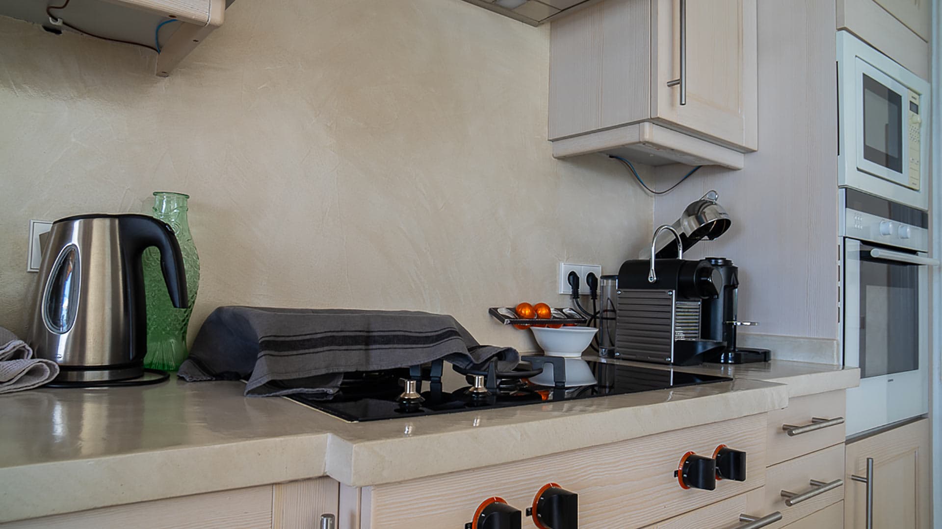 Interiors Villa Arizona is spread over three floors. On the lower level, you’ll find the private parking area with an automatic gate. The ground floor hosts the main living area of the villa, including a stylish living room with a designer fireplace, a dining area, and a fully equipped modern kitchen. Also on the ground floor are two bedrooms that share a bathroom. The first floor is dedicated to the master bedroom, which features a private terrace and an en-suite bathroom. All bedrooms enjoy stunning sea views and are equipped with air conditioning.
