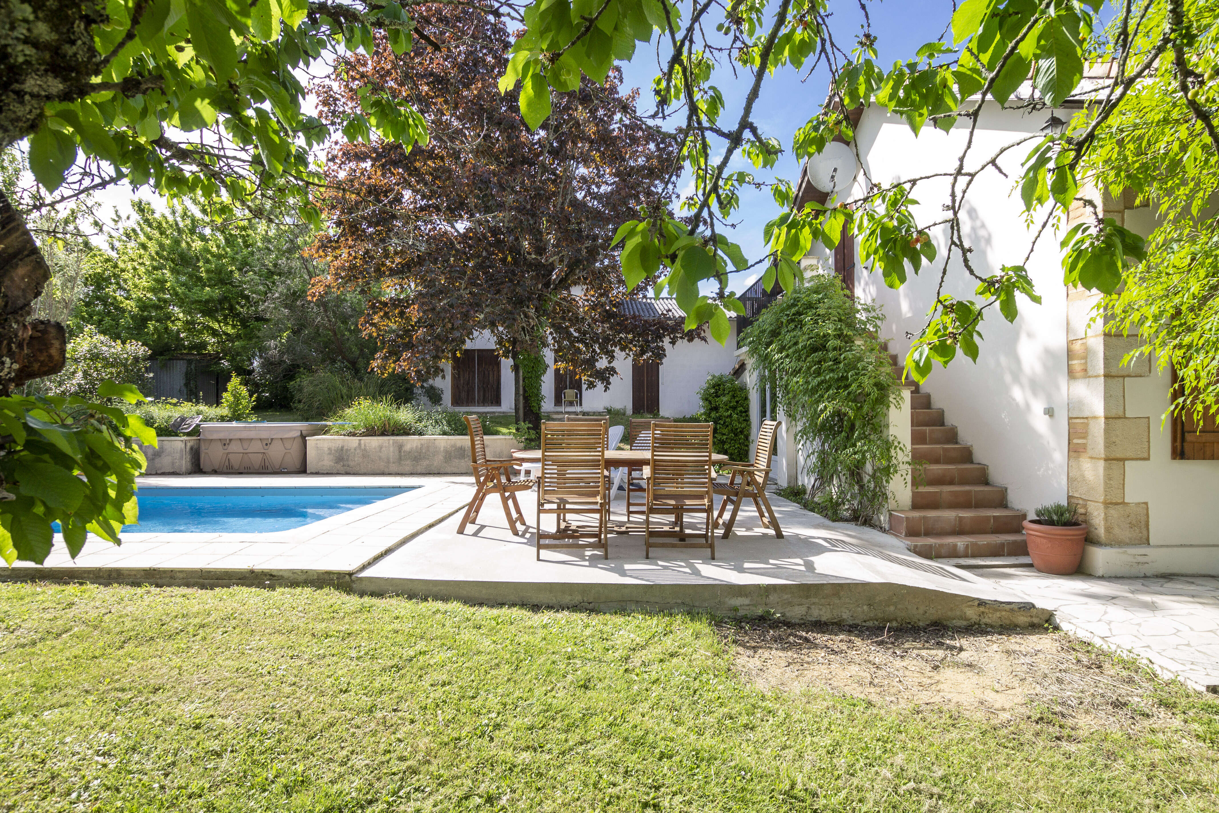 Miramont-De-Guyenne ist eine charmante, typisch französische Stadt mit einem großen Markt am Montagmorgen und einer sehr schönen Auswahl an Cafés, Bars und Bäckereien. Das Ferienhaus Villa Miramont mit privatem Pool in Lot-et-Garonne ist nur 2 Minuten zu Fuß von der Stadt entfernt, genießt aber dennoch eine ruhige und private Umgebung!