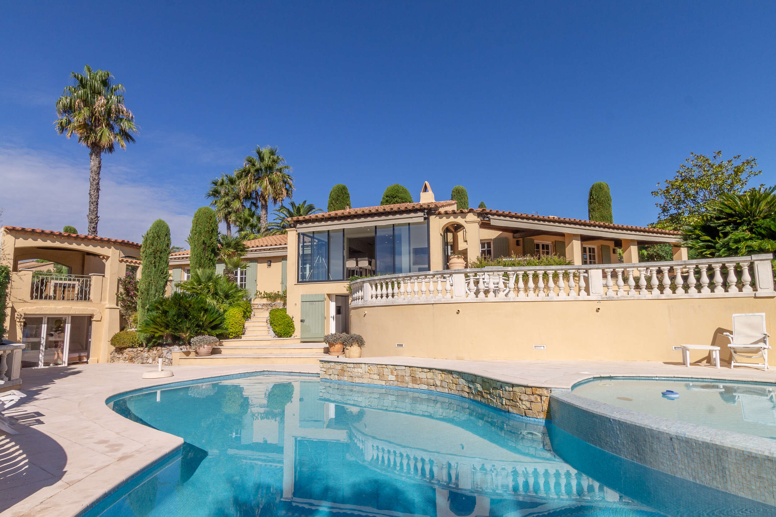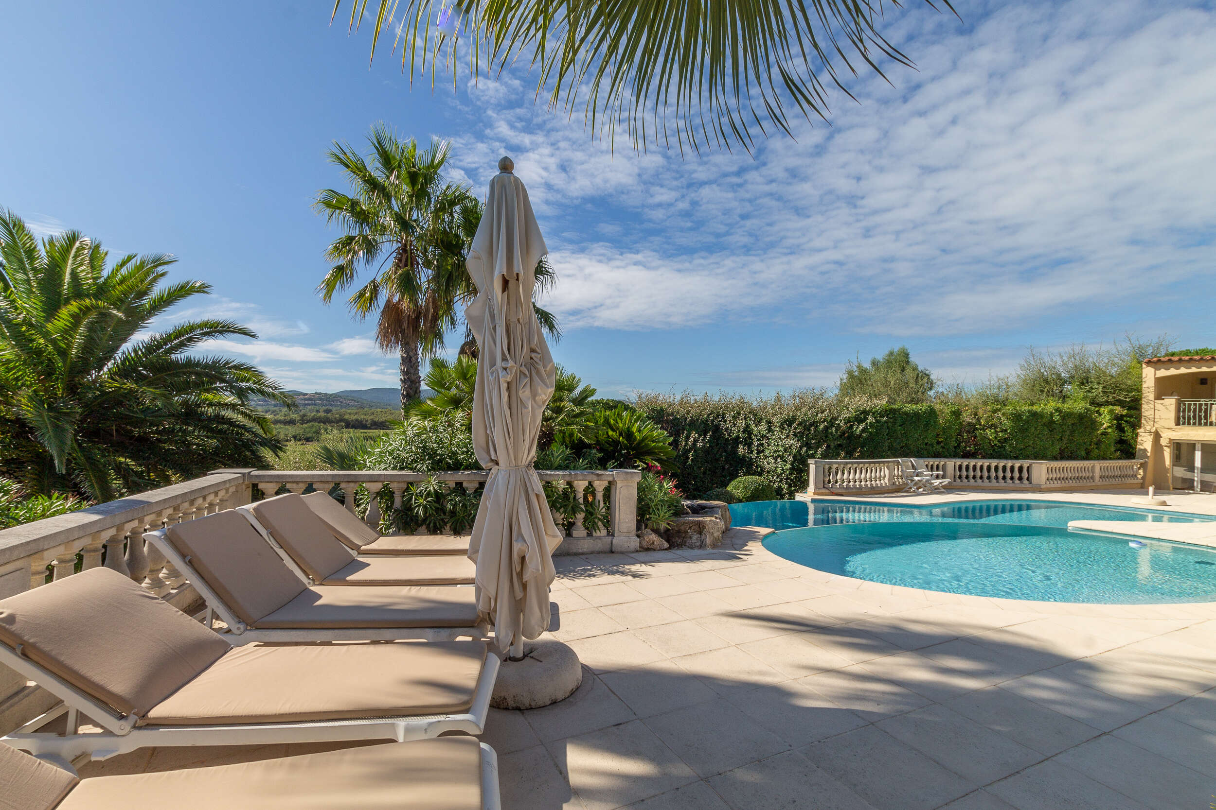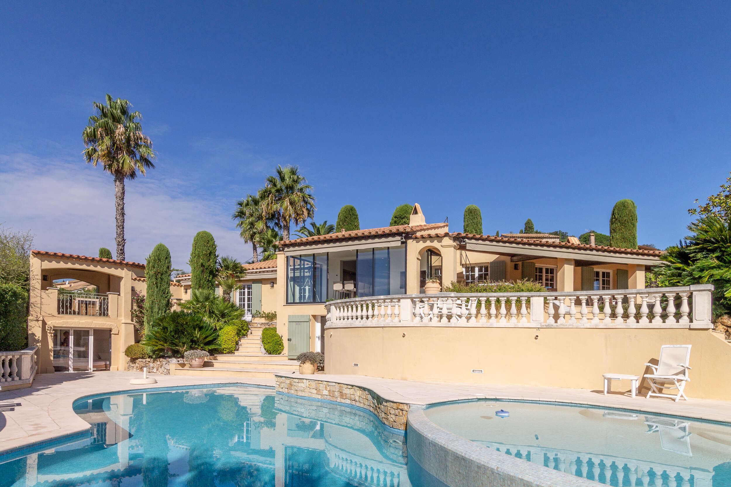 Villa Plein sud is a fantastic, luxurious holiday villa with double private pool situated on a private domain of the residential Beauvallon (beautiful valley) in Grimaud between Sainte-Maxime and Saint-Tropez (Provence-Alpes-Côte d'Azur).
