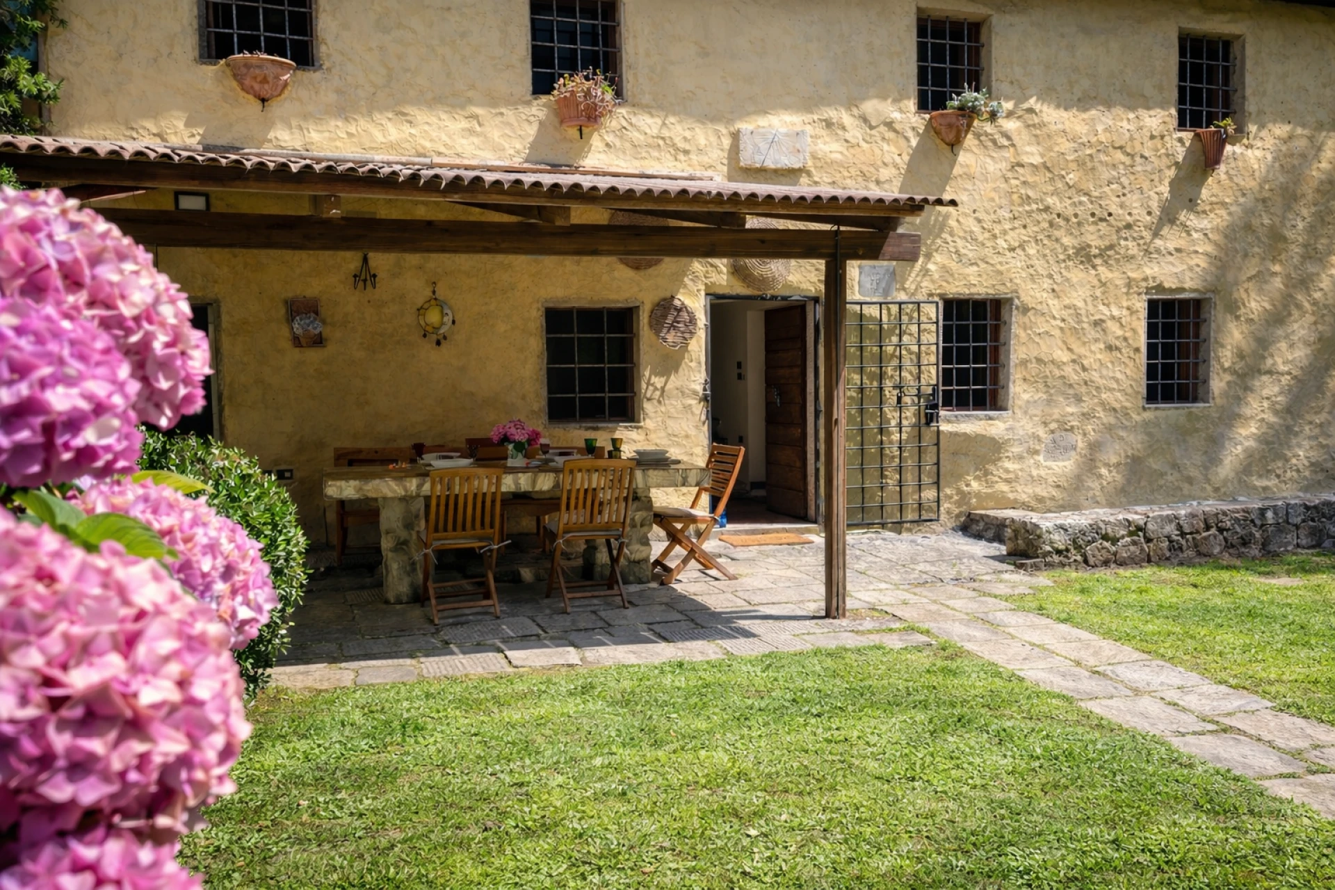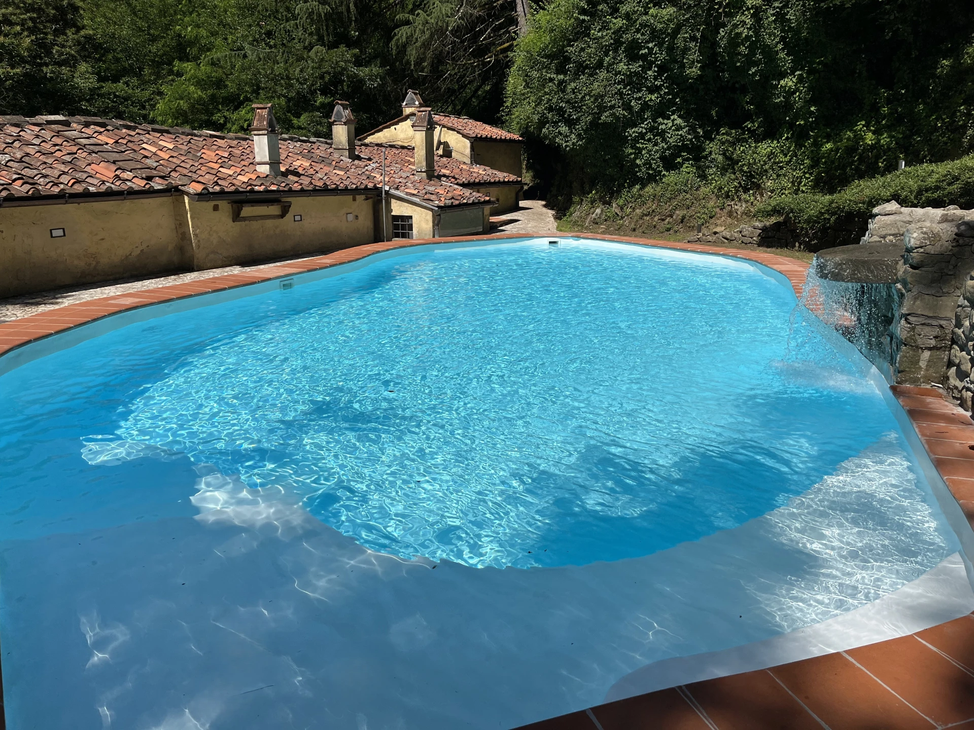 Buiten wacht een waar vakantieparadijs met een prachtig aangelegde tuin en een ruim privézwembad waar men heerlijk kan afkoelen tijdens warme zomerdagen. Rond het zwembad staan ligstoelen en parasols klaar om volop te genieten van de Toscaanse zon.