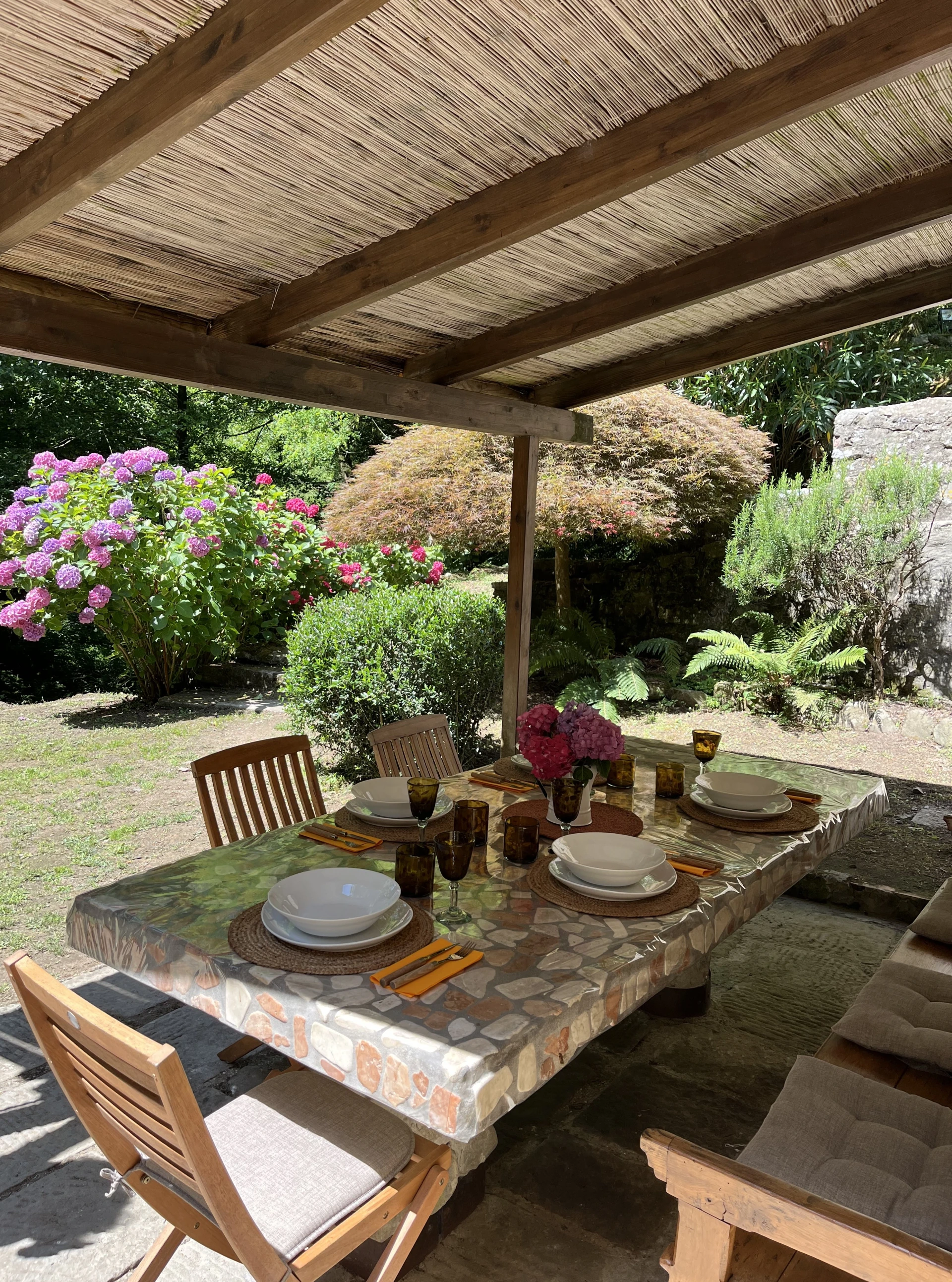 Het zonnig terras en de gemeubileerde veranda zijn ideaal voor lange, gezellige maaltijden in open lucht. Daarnaast is er een stenen barbecue aanwezig voor sfeervolle avonden met familie of vrienden.