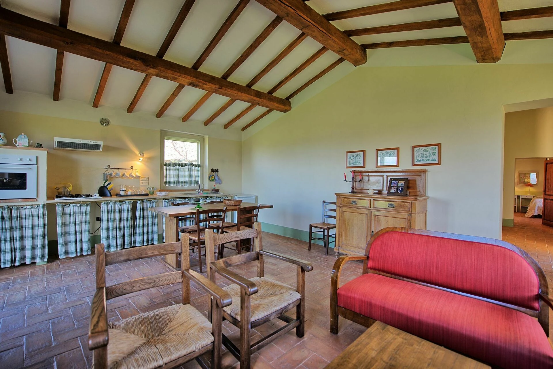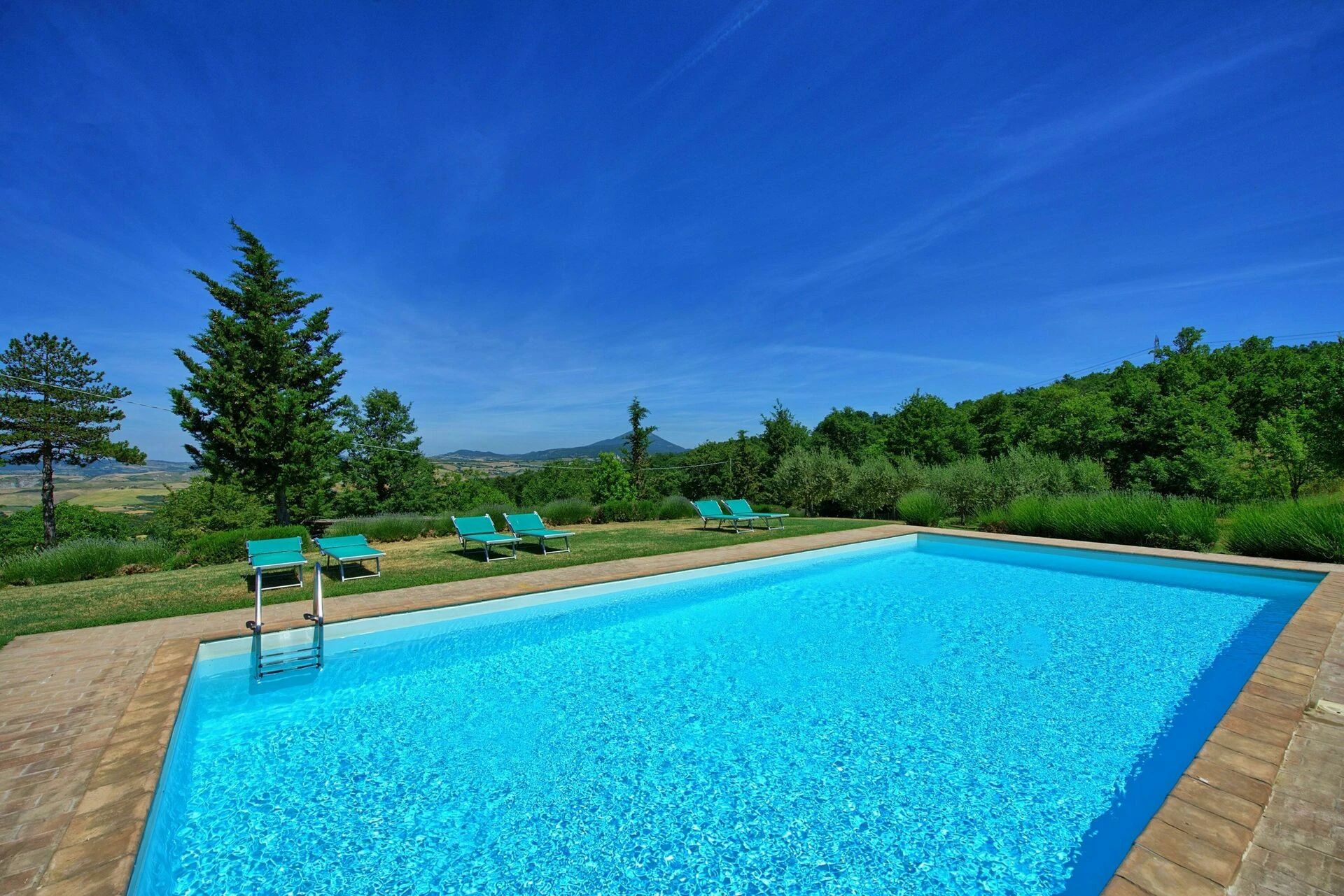 Beide sind eine gute Lösung für eine große Gruppe, dank der Möglichkeit, das Wohnzimmer und das Esszimmer des Hauptgebäudes als Gemeinschaftsbereich zu nutzen. Von hier aus können Sie ein wunderschönes Panorama mit einem bezaubernden Blick auf den Monte Amiata genießen. Im Hauptgebäude gibt es eine kleine, vollständig unabhängige Wohnung, in der die Hausmeister wohnen und Ihre Privatsphäre gewährleisten. Der Pool (6 x 12 m) befindet sich ebenfalls in einer wunderschönen Panoramalage und wird ausschließlich von den Gästen genutzt.