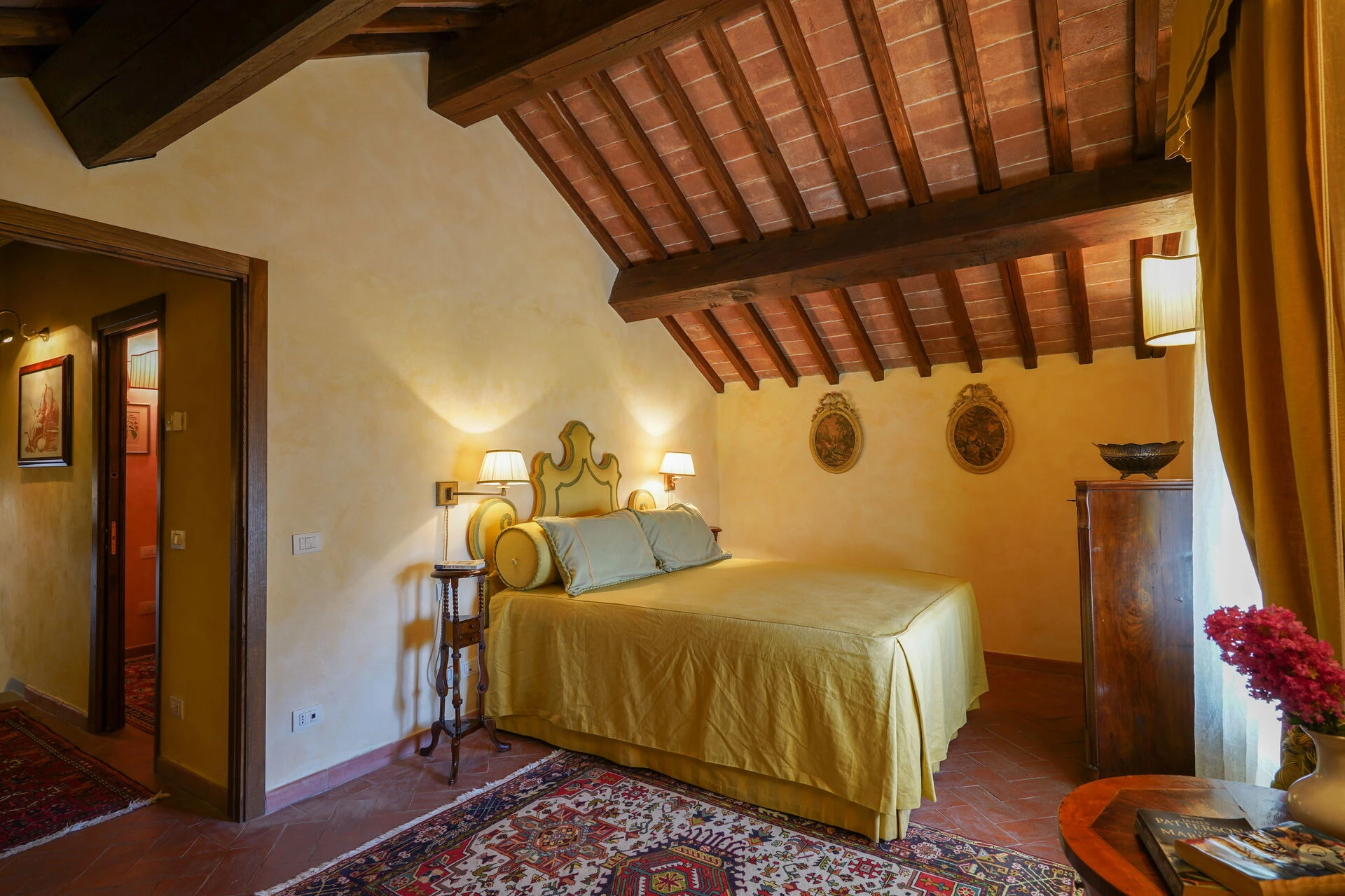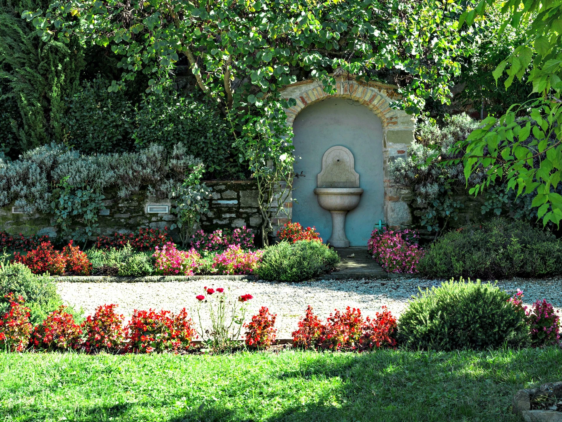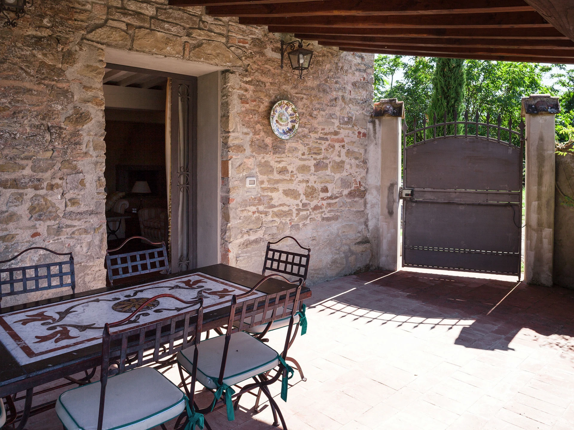Buiten geniet je van een volledig omheinde tuin van 1.500 m², met volop privacy en uitzicht over het Toscaanse landschap. Het privézwembad (9 x 4 m, diepte 1,40 m), exclusief voor gasten, nodigt uit tot verkoeling en ontspanning.