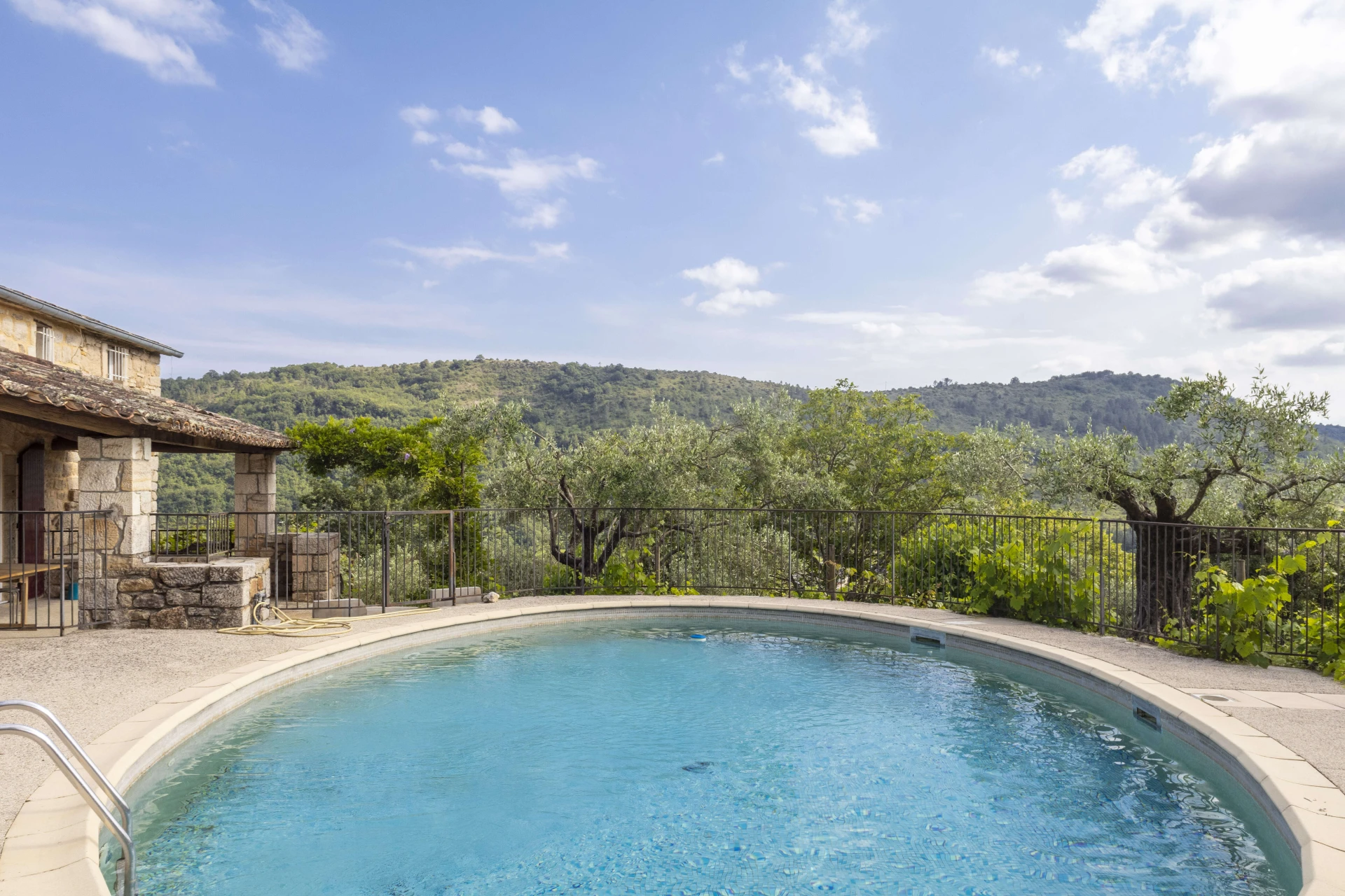 Upon arrival, you'll be charmed by the large fenced swimming pool (7x10m - 1.5m deep), offering safe refreshment for both young and old. A covered terrace invites you to alfresco dining, while the petanque court and barbecue promise memorable moments of conviviality under the gentle Ardèche sun.