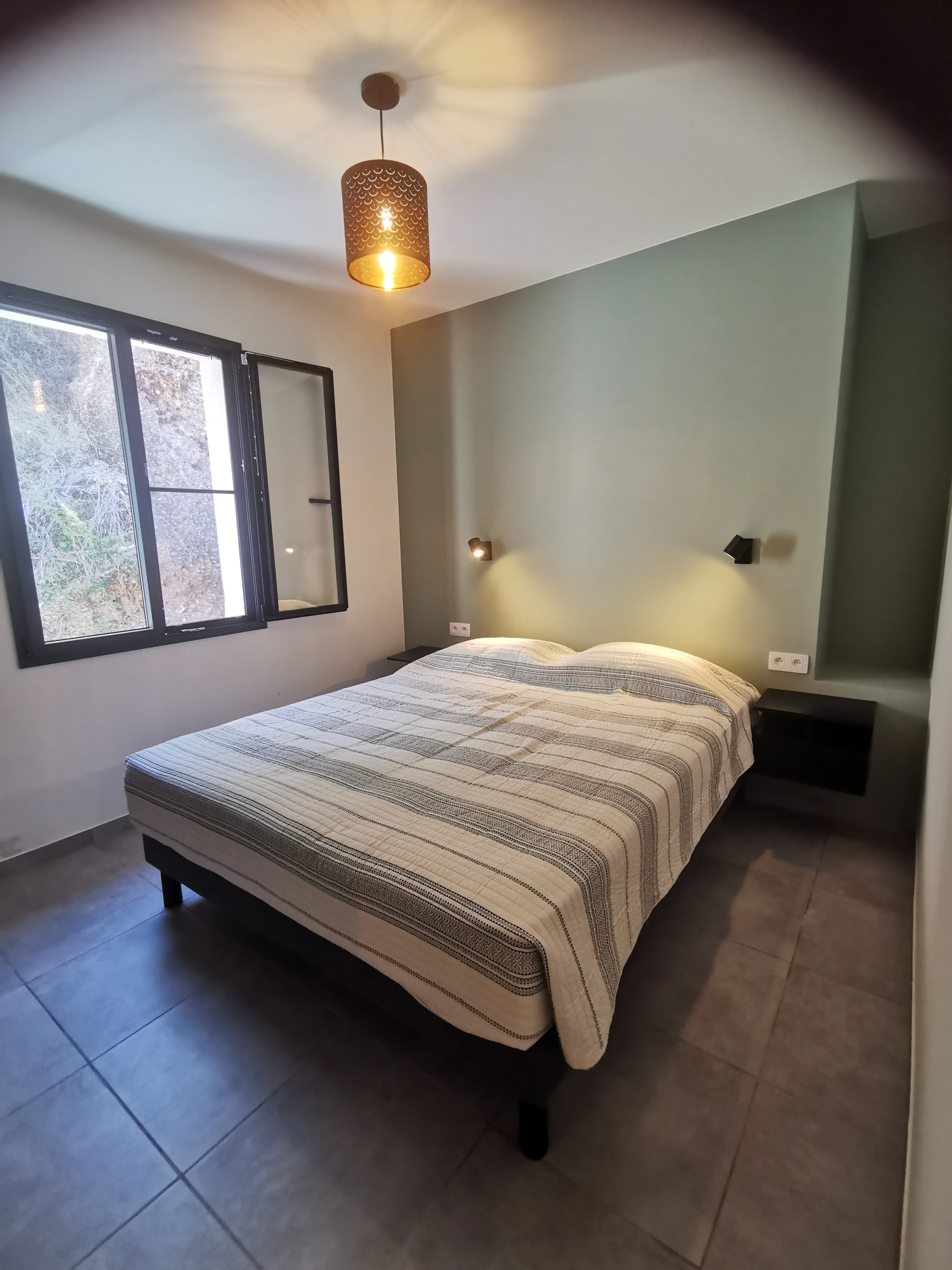 This holiday home in Ardèche features 5 bedrooms with double beds. All bedrooms are equipped with mosquito screens and air conditioning for optimal comfort. There are also 3 modern shower rooms and 2 separate toilets. The kitchen is fully equipped, allowing you to cook just like at home. The living and dining areas open directly onto the outdoor terraces, creating a seamless flow between indoors and outdoors.