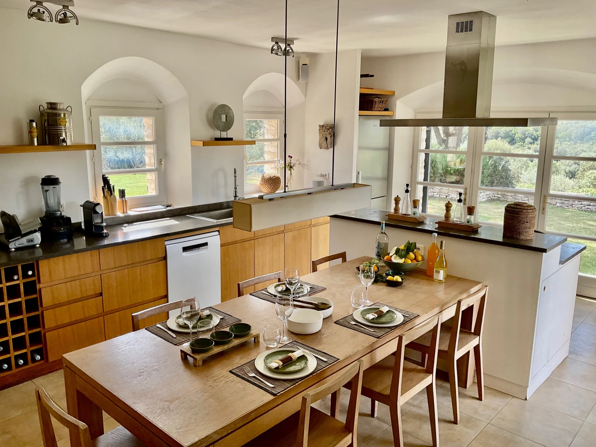 Outside, a magnificent lush garden surrounds the villa. An open terrace with outdoor seating, a plancha, and a masonry barbecue, but above all, a large private pool (13x4.5m) equipped with lighting and an electric cover, allow you to fully enjoy the Mediterranean climate.