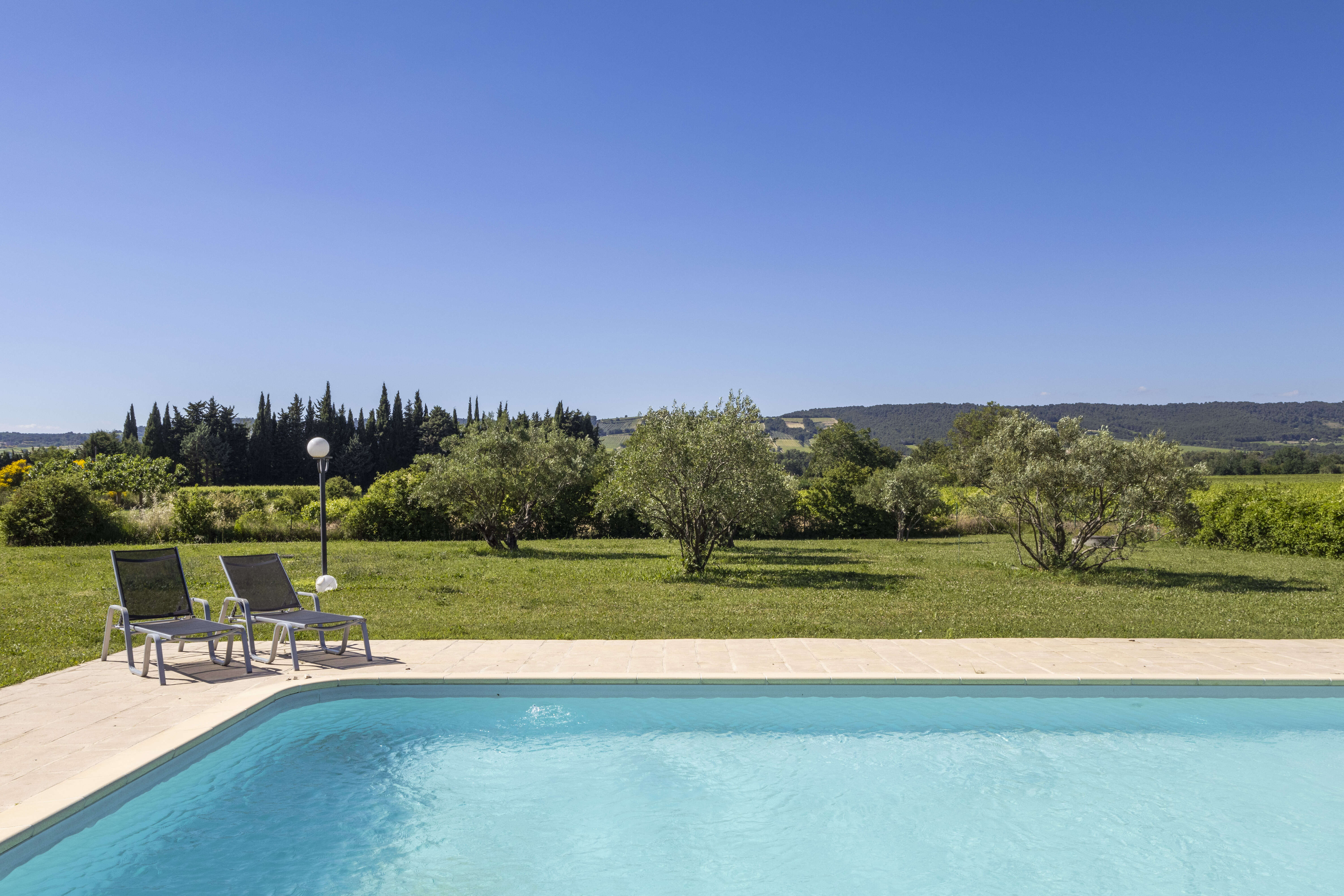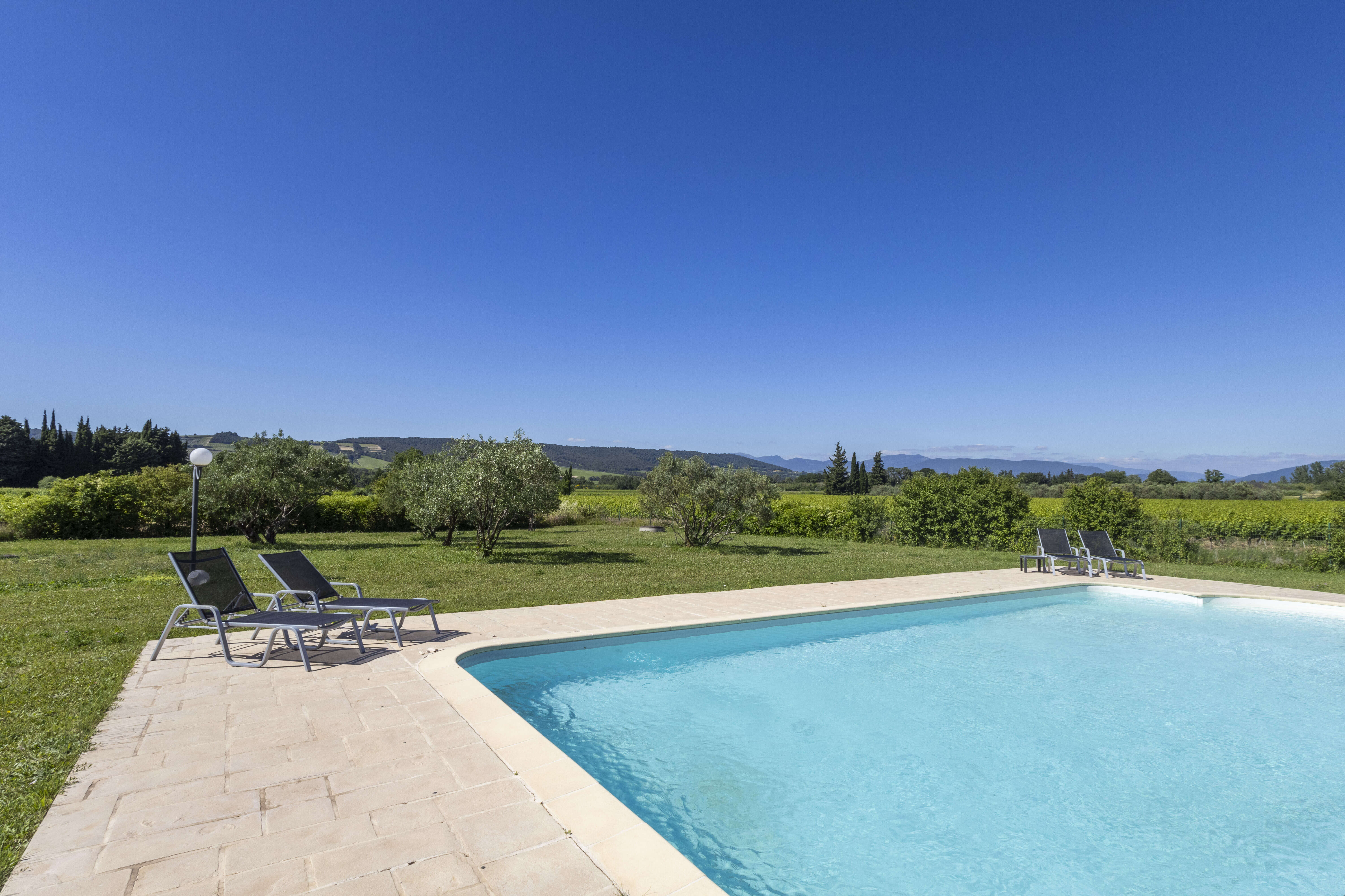 Lou Pavoun (4000m²) is a holiday domain set in a quiet location in the typical village of Villedieu in the area of the well-known Mont Ventoux (Vaucluse) not far from the river. There is an astoundingly beautiful view of the vineyards and the surrounding nature. In the large fenced garden with many trees, bushes and plants, there is a large common swimming pool (12x6m -160cm deep – heated – open from 15/05 till 30/09) and has a most relaxing sports activity: a petanque alley. There is a closed shower-room near the swimming pool, accessible for everyone with a toilet, sink and shower, as well as a washing machine. Outside around the swimming pool there is another shower that works on solar energy: you need a shower to go into the swimming pool. It is a lovely area with a great deal of visits to be made, such as: Avignon, Pont du Gard, Châteauneuf du Pape, Arles, Les Baux, de Camargue, de Lubéron, Marseille