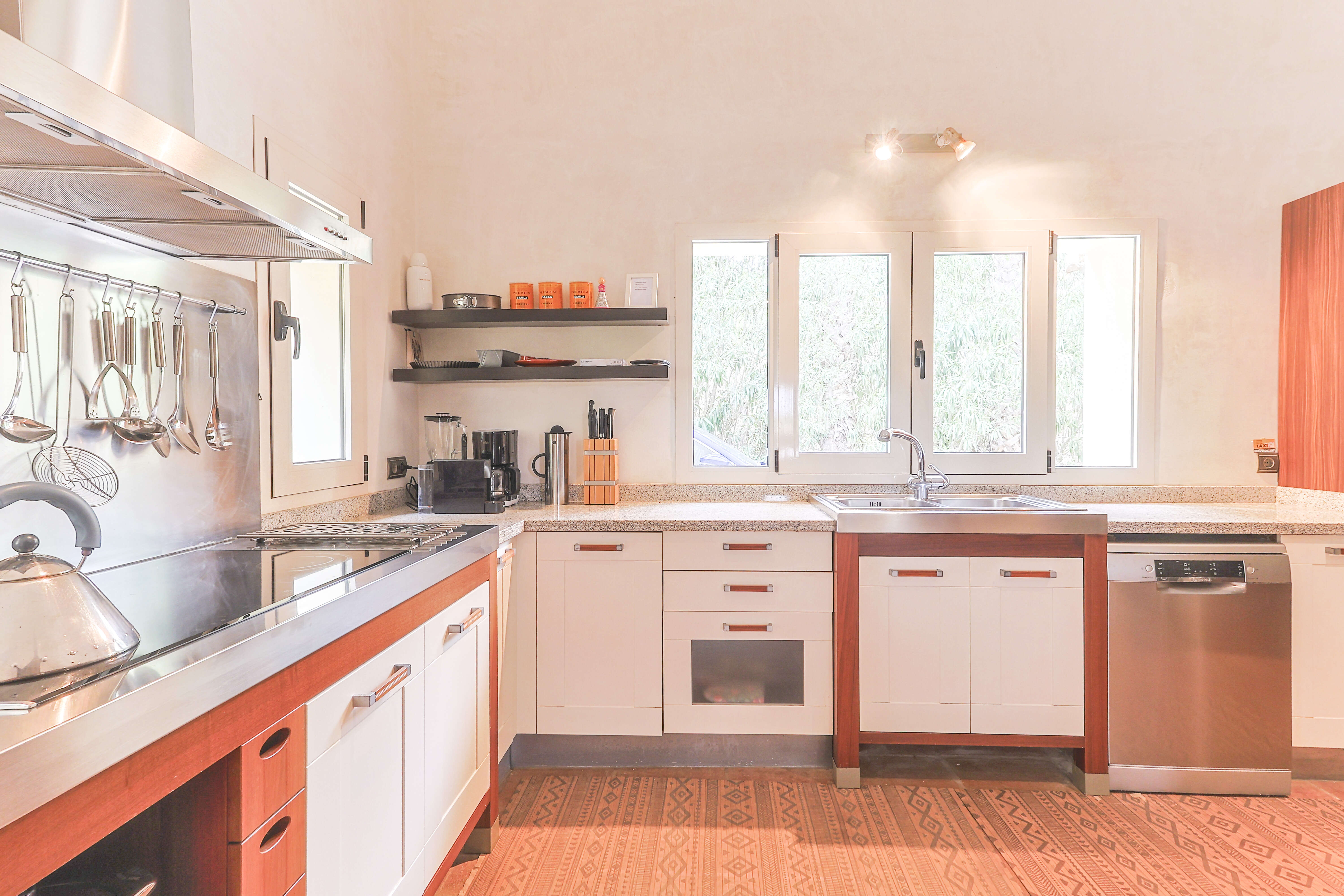 Interesting info: In the living/dining room there is a powerful air conditioner, which is designed to make the corridor to the 3 bedrooms cooler as well. If desired, in the evening/at night, the windows can be tilted to let in the night-time coolness. Because the ground floor, at the level of the swimming pool, is underground on one side and all windows can be tilted, there is always a pleasant coolness. Since the electricity meter has been digital for more than 10 years, we see from the consumption per hour each year that the majority does not use the air conditioning.
