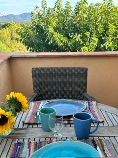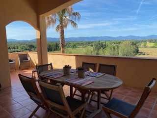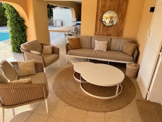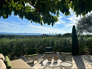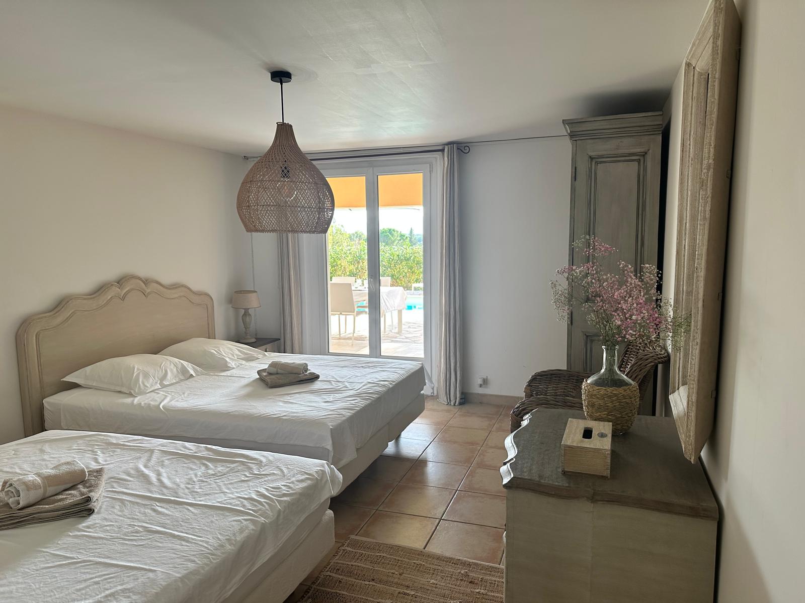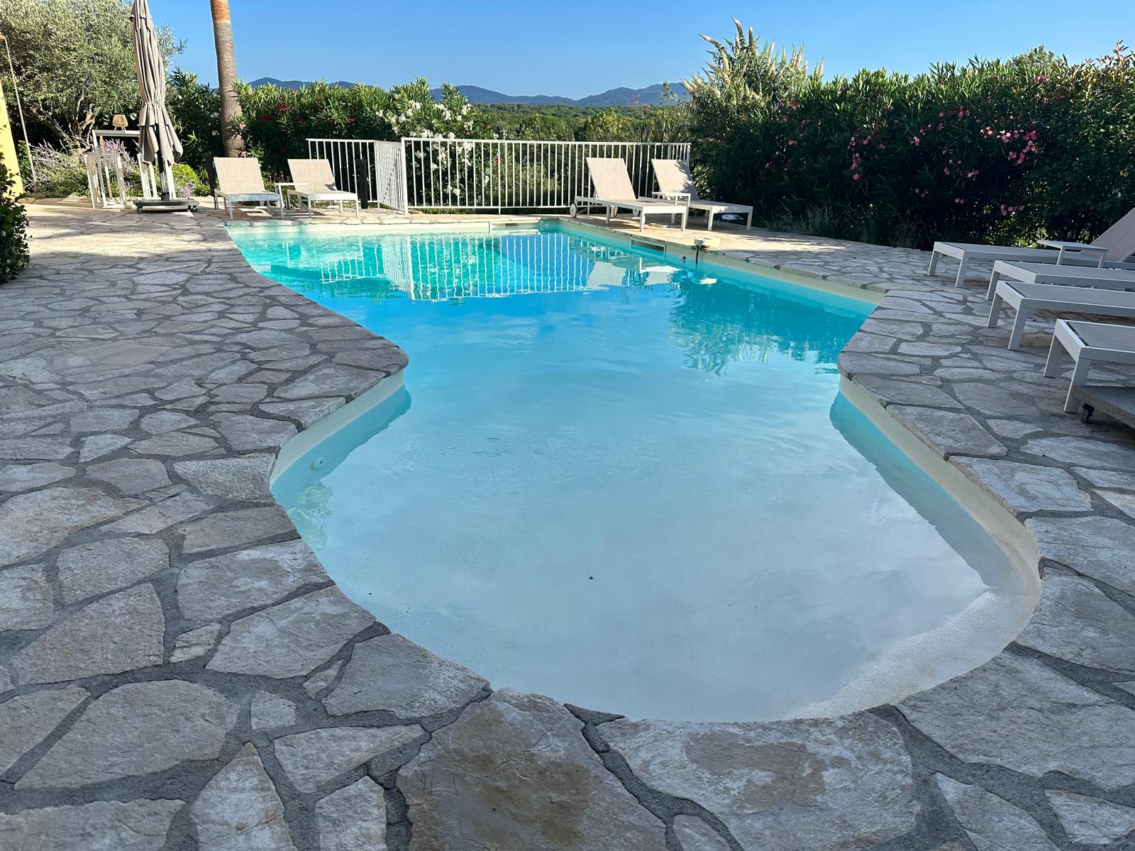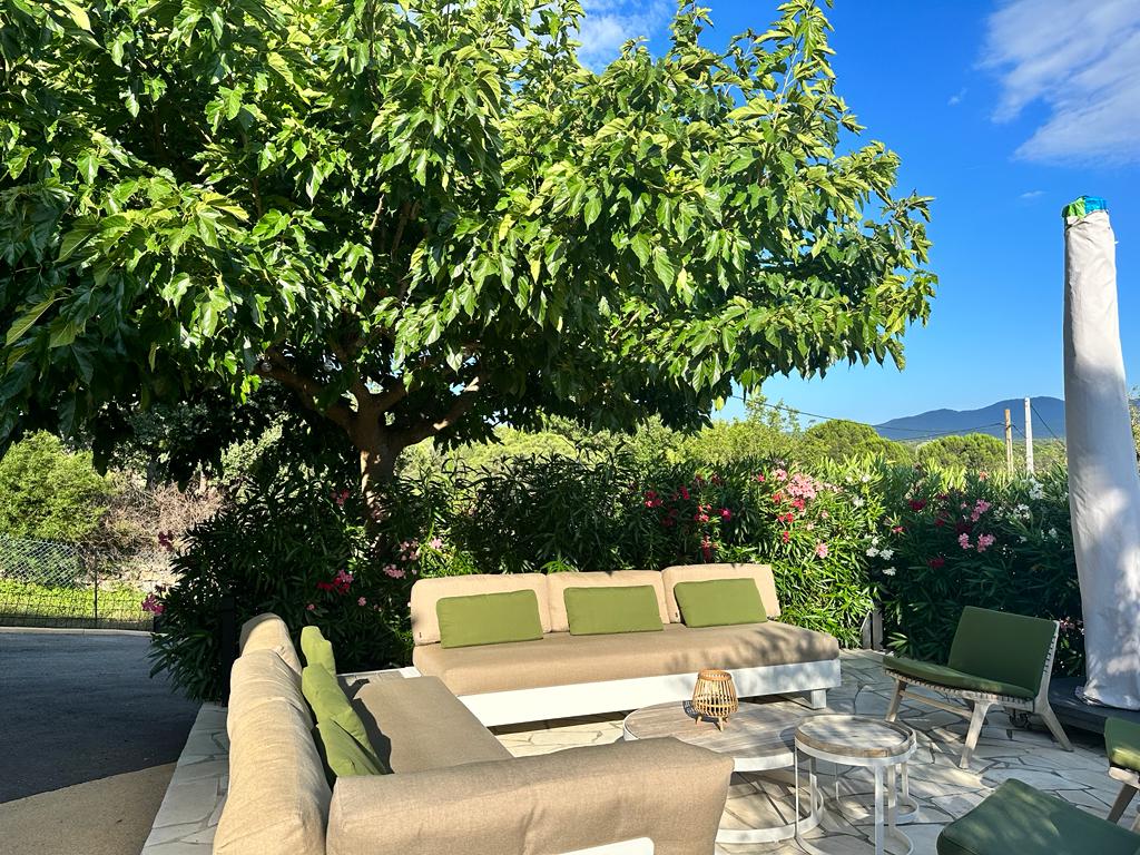 Exterieur – Privézwembad en panoramische uitzichten Buiten wacht het echte vakantiegevoel. De villa beschikt over een verwarmd privézwembad (6x3 m, 1,70 m diep), beschikbaar van begin april tot eind november. Rondom het zwembad vind je comfortabele ligstoelen en gezellige hoekjes om te genieten van de zon, de rust en het uitzicht. De tuin is een oase van groen en stilte, met adembenemende zichten op de omliggende wijnvelden en het Massif des Maures. Hier ervaar je het beste van het buitenleven in de Provence.