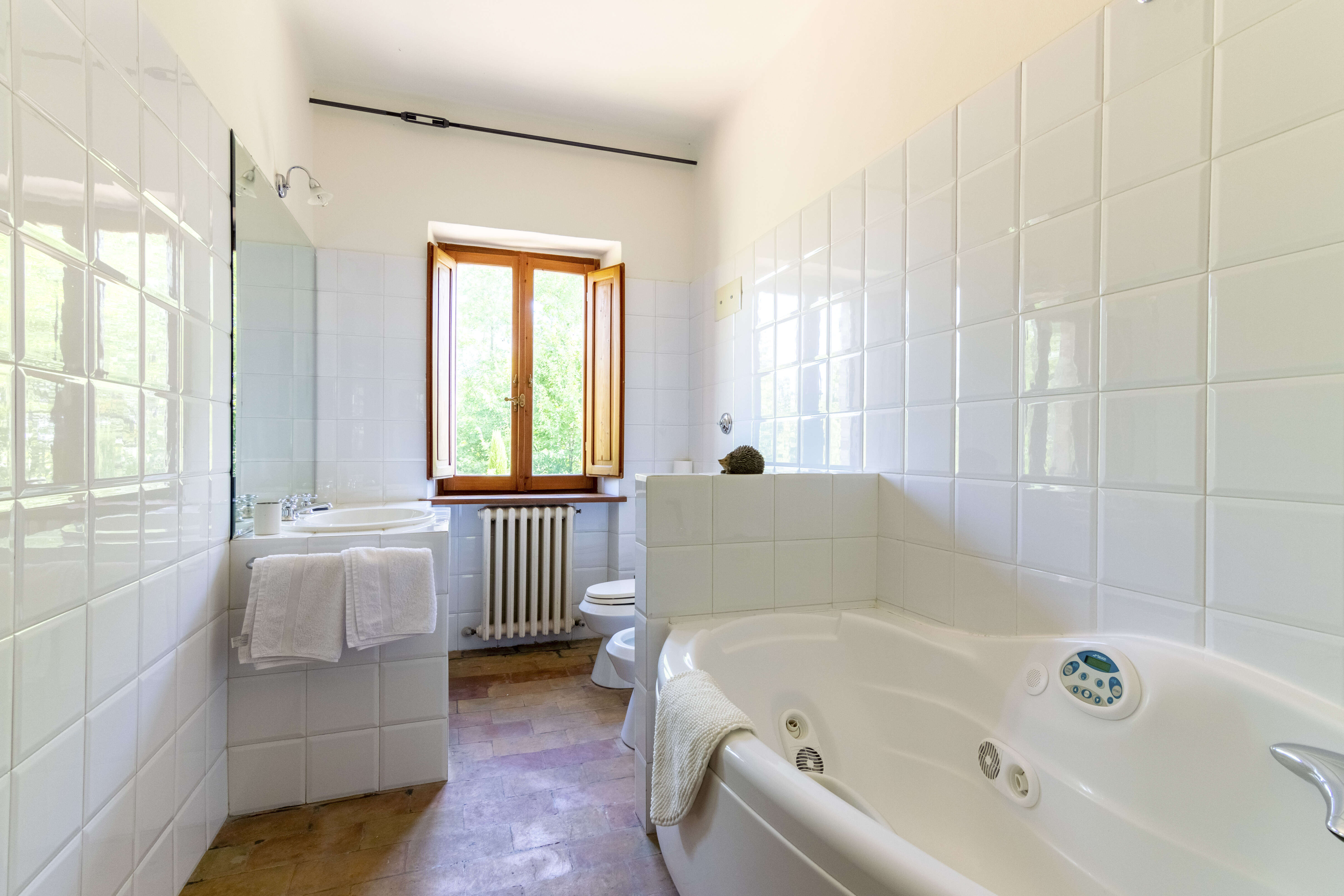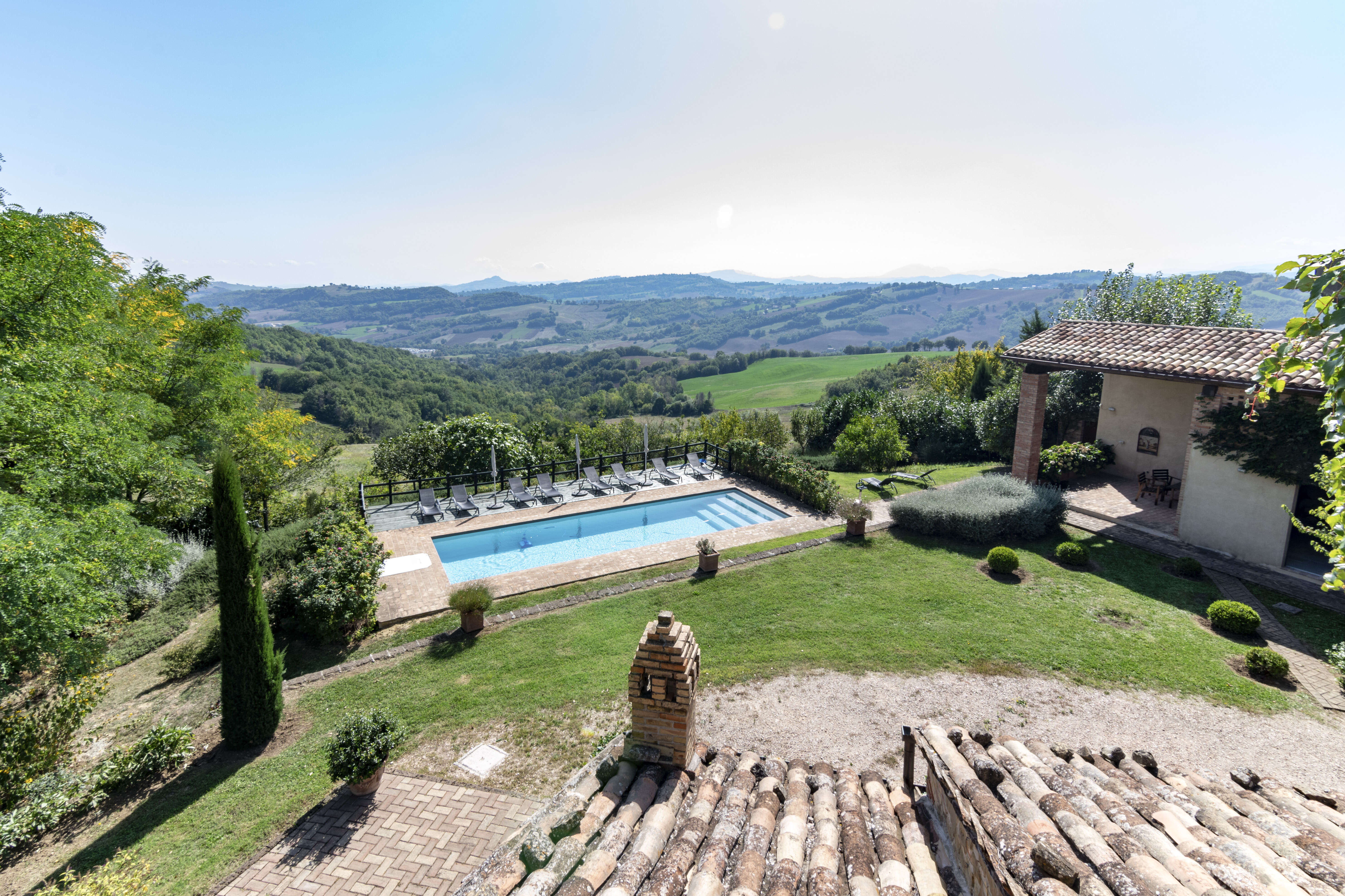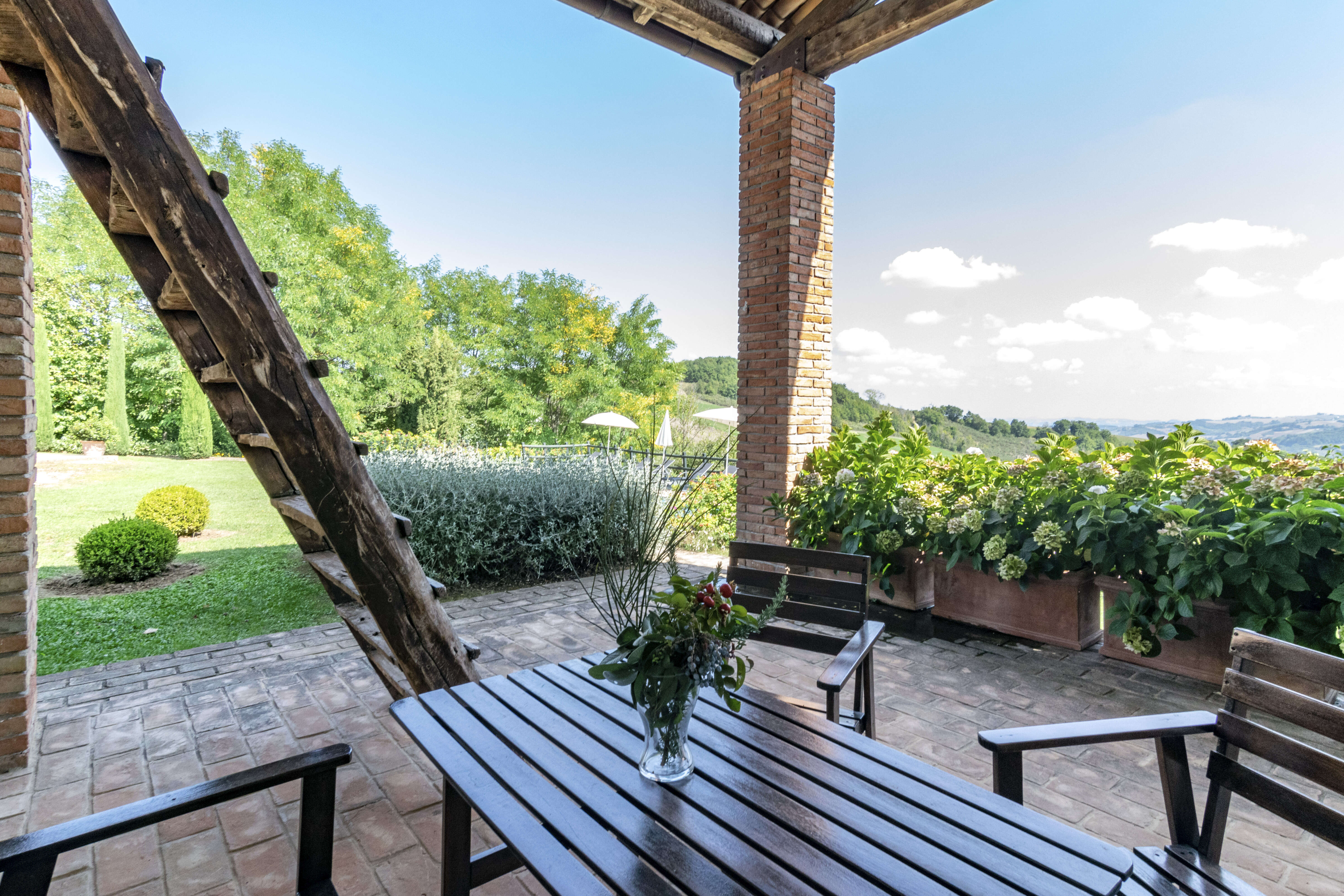 La Fortezza has a perfectly tended garden with a private swimming pool and various large terraces. The spacious covered terrace is a delightful place to have lunch or dinner “al fresco”, while the other terrace is the perfect spot for a barbecue.