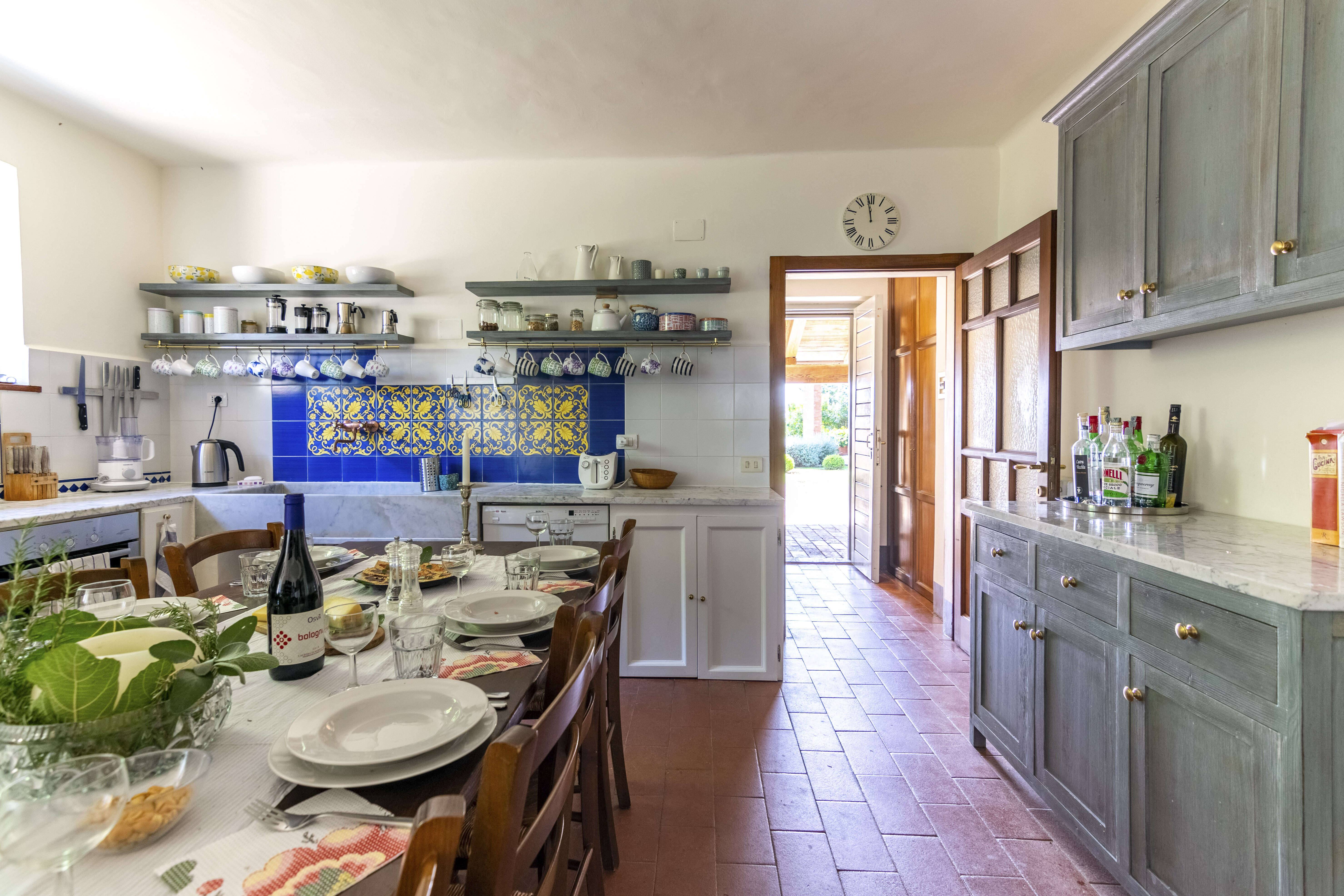 This 250-year old house has been renovated while preserving all the typical elements. The thick walls ensure the house remains cool. It has a warm atmosphere and antique furniture. There are various sitting rooms and a very big and comfortable kitchen. It is an ideal place for family and friends to go on holiday.
