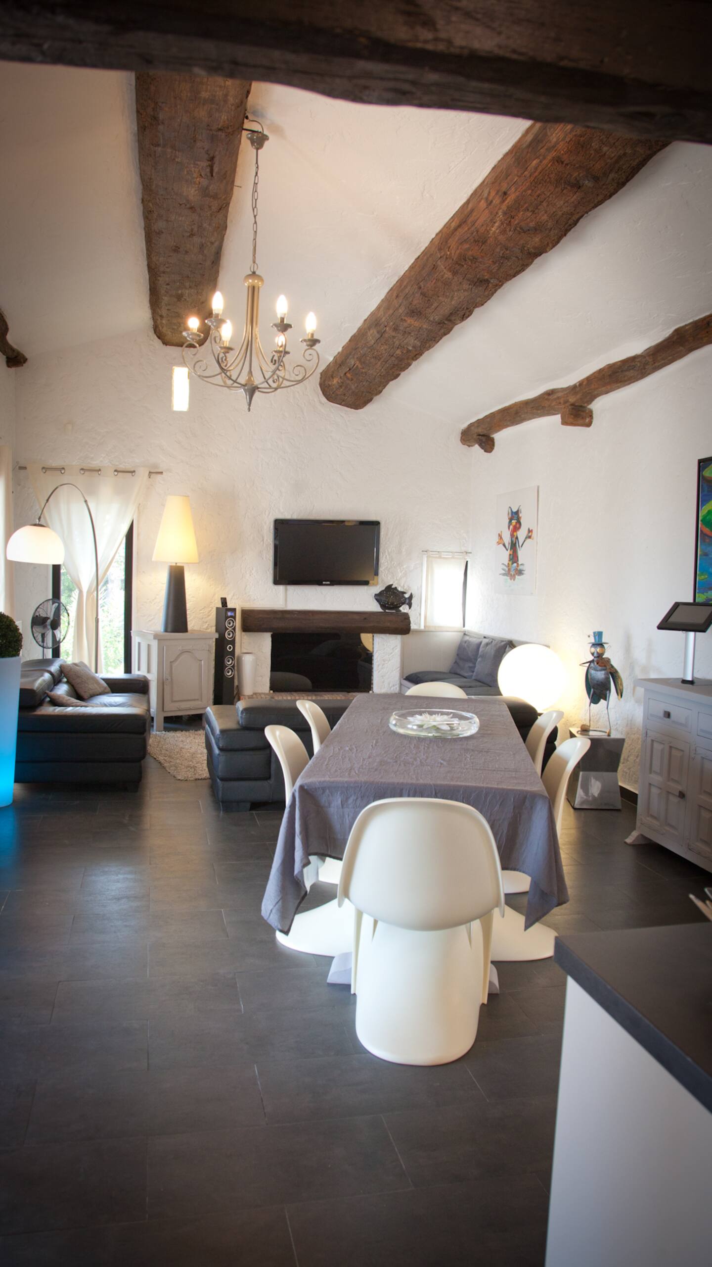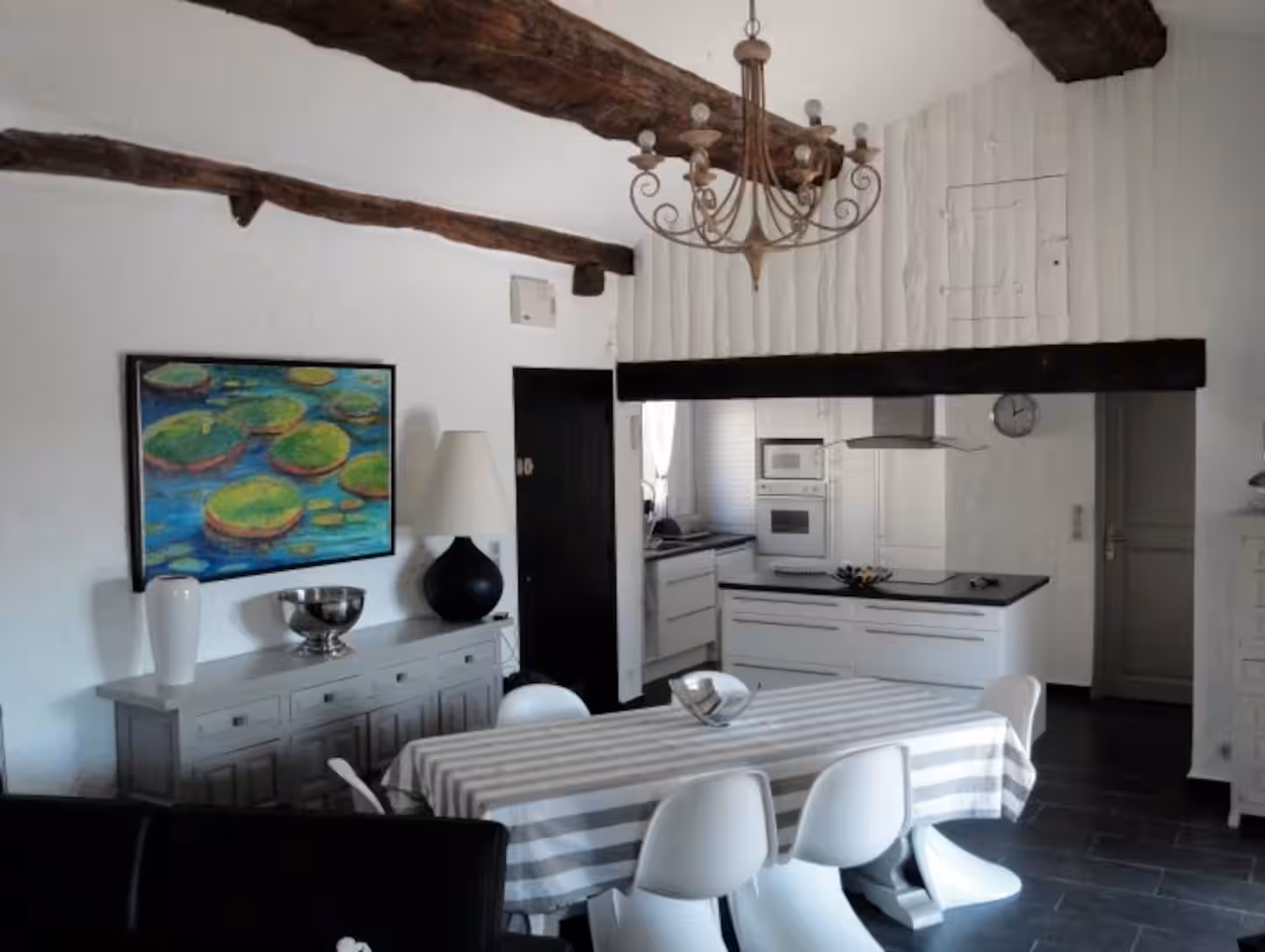 Interior: Authentic charm and refined comfort Blending tradition and comfort, this single-storey holiday home embodies the authenticity of Provençal style. It features 4 air-conditioned bedrooms, including a master suite with an en-suite bathroom. The living areas are warm and inviting, while the numerous terraces and cosy outdoor corners allow you to enjoy the gentle rhythm of southern living, both indoors and out.